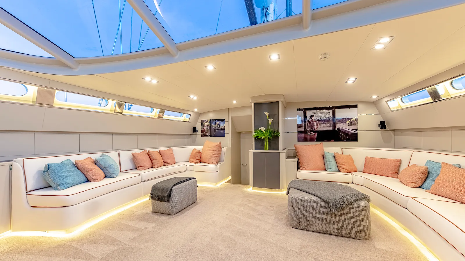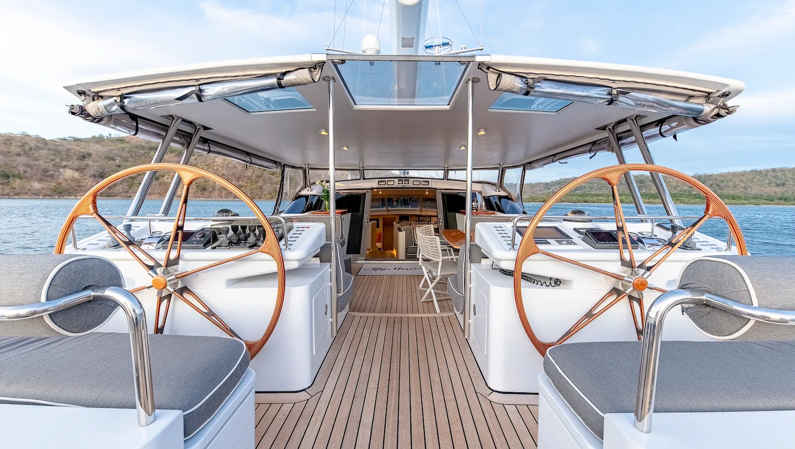 Her large deck allows a lot of space for sun loungers, so that guests can relax on board, enjoying the fresh air and ocean views.