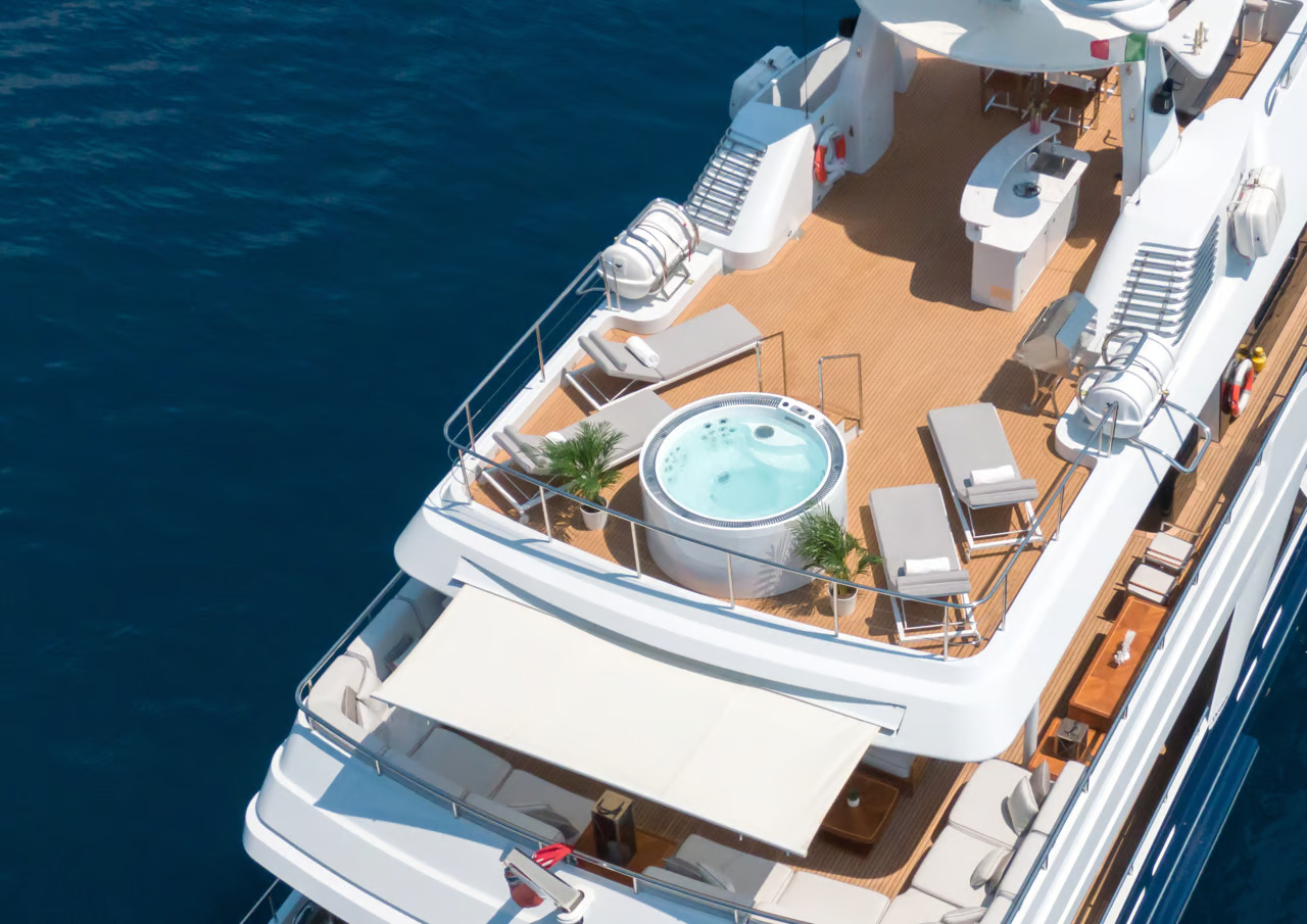 Enjoy an alfresco meal on the sheltered aft deck or sip cocktails on the upper deck as the sun sets over the ocean. Dive into the water from the large swim platform, take a dip in the spa pool or simply relax on the sunpads.