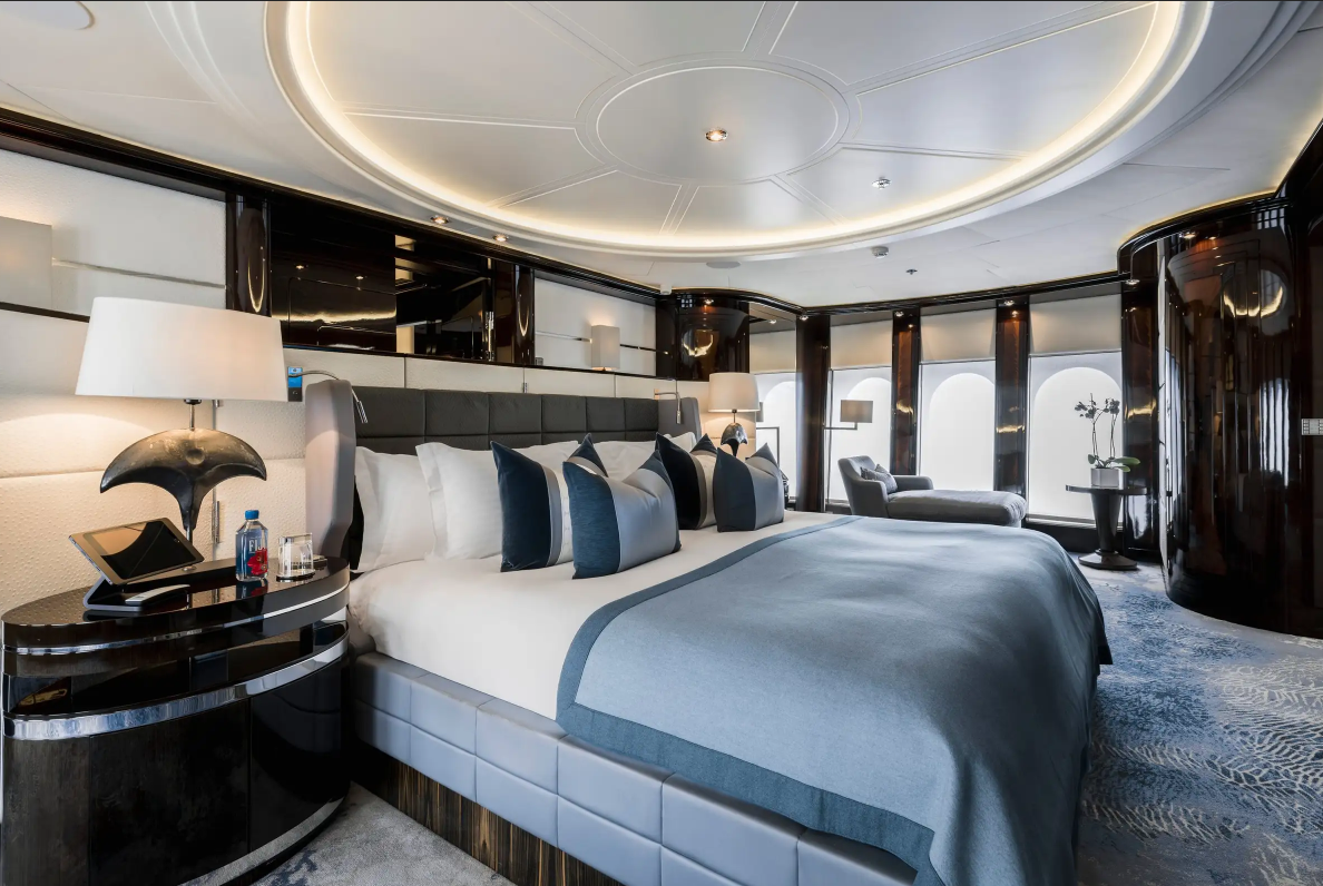 - Flexible accommodation for 12 guests in 7 staterooms; option of 2 x king suites with “across the hall” private lounges