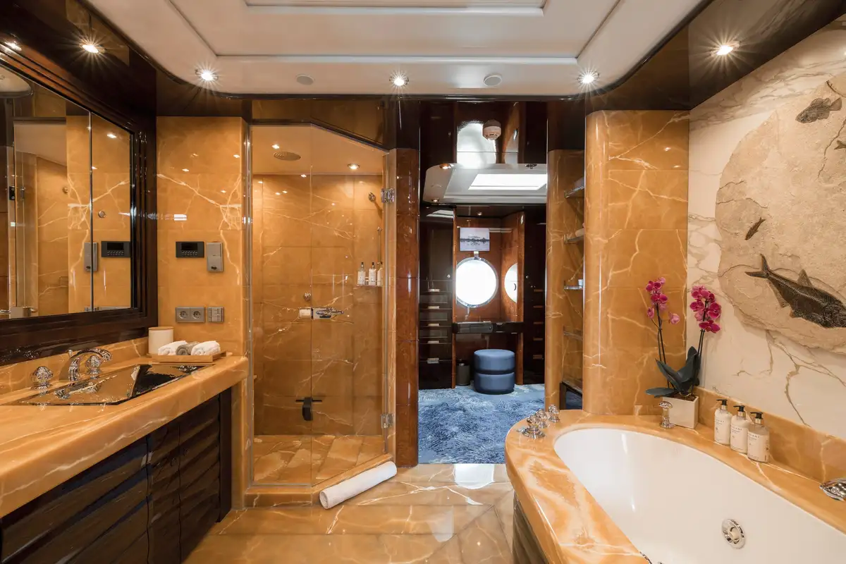 - Magnificent 110 sq m/1200 sq ft main deck Master Suite with office and massage/yoga room, 2 x dressing areas & 3 x en suite bath/shower rooms