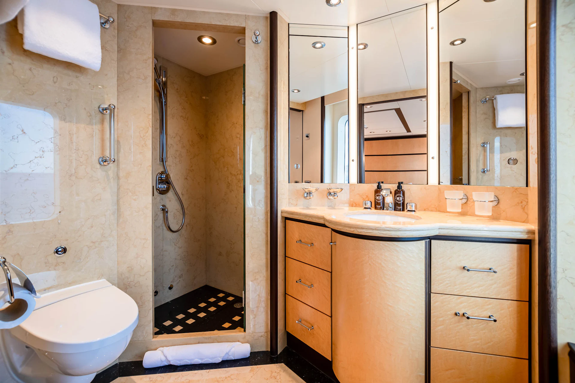 Access the ocean via the lazarette on the lower deck, a multipurpose activity centre. The massive swim platform serves as an extra deck near water level and from here, you can enjoy access to the yacht’s two tenders or indulge in water sports such as waverunners, wakeboards, sailboats or snorkelling.