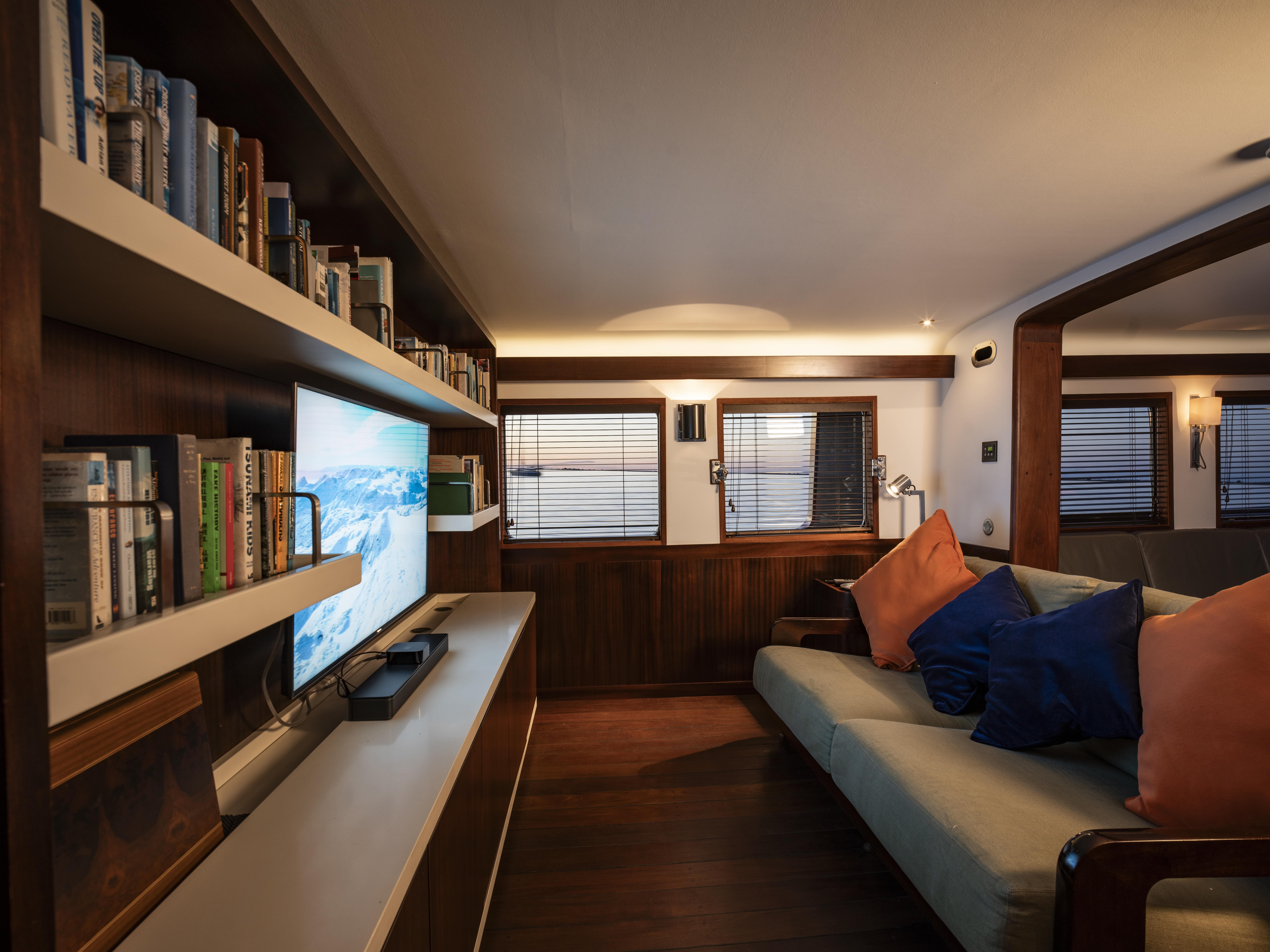 A foyer area with a day head separates the TV lounge from LA FENICE’s main deck aft which features a bar area complete with a Bose sound system plus a second lounge area with built-in seating which is the ideal space for entertaining whilst onboard.