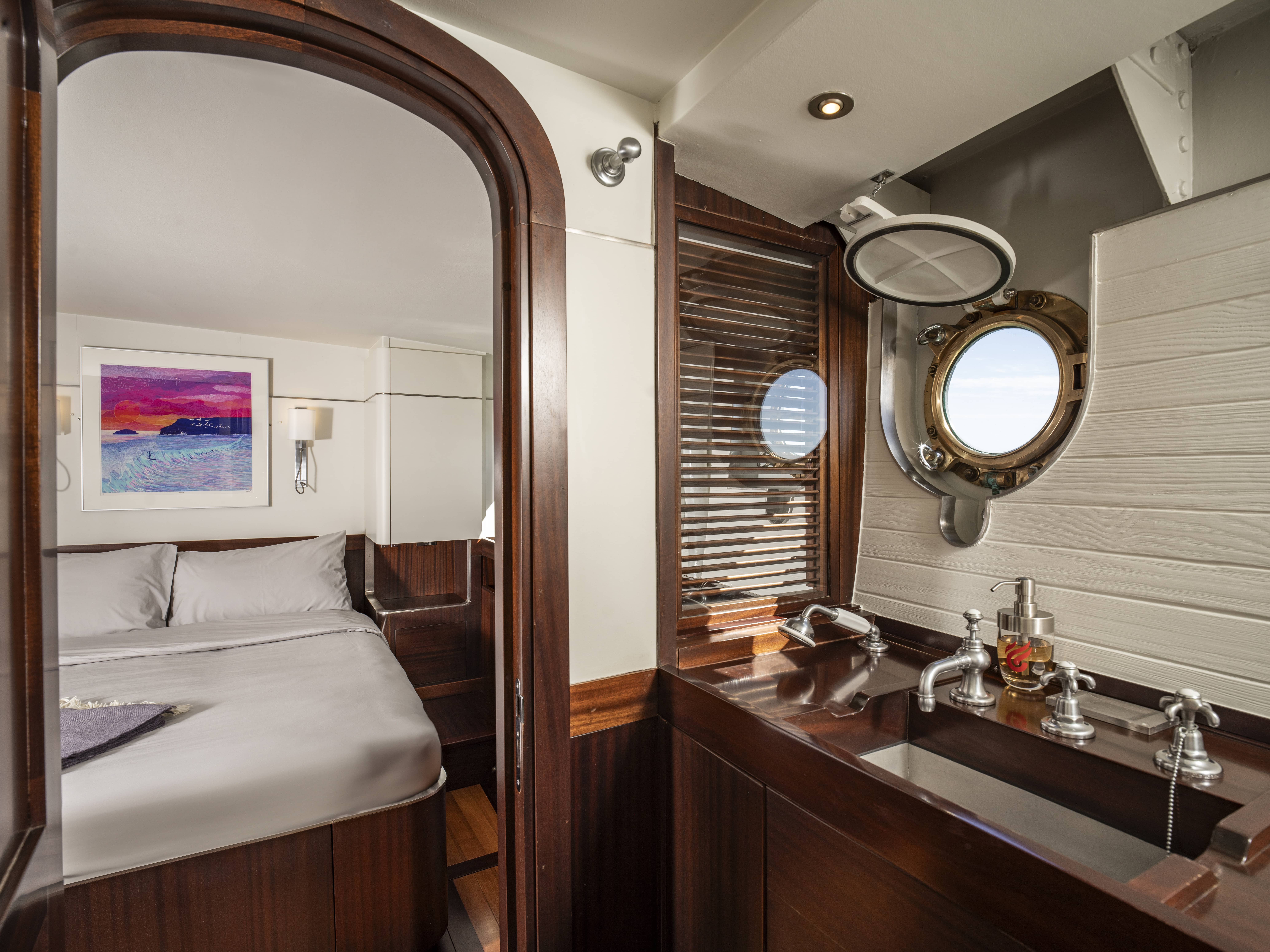 LA FENICE’s guest accommodation comprises three double staterooms plus a triple berth (double bed and a pullman) for younger guests. Styled in a classic fashion, each stateroom exudes elegance and sophistication with a neutral colour palette plus rich wood finishes. From the master suite to the guest cabins, the classic design adds a touch of traditional charm to your charter experience, ensuring a truly memorable stay onboard.