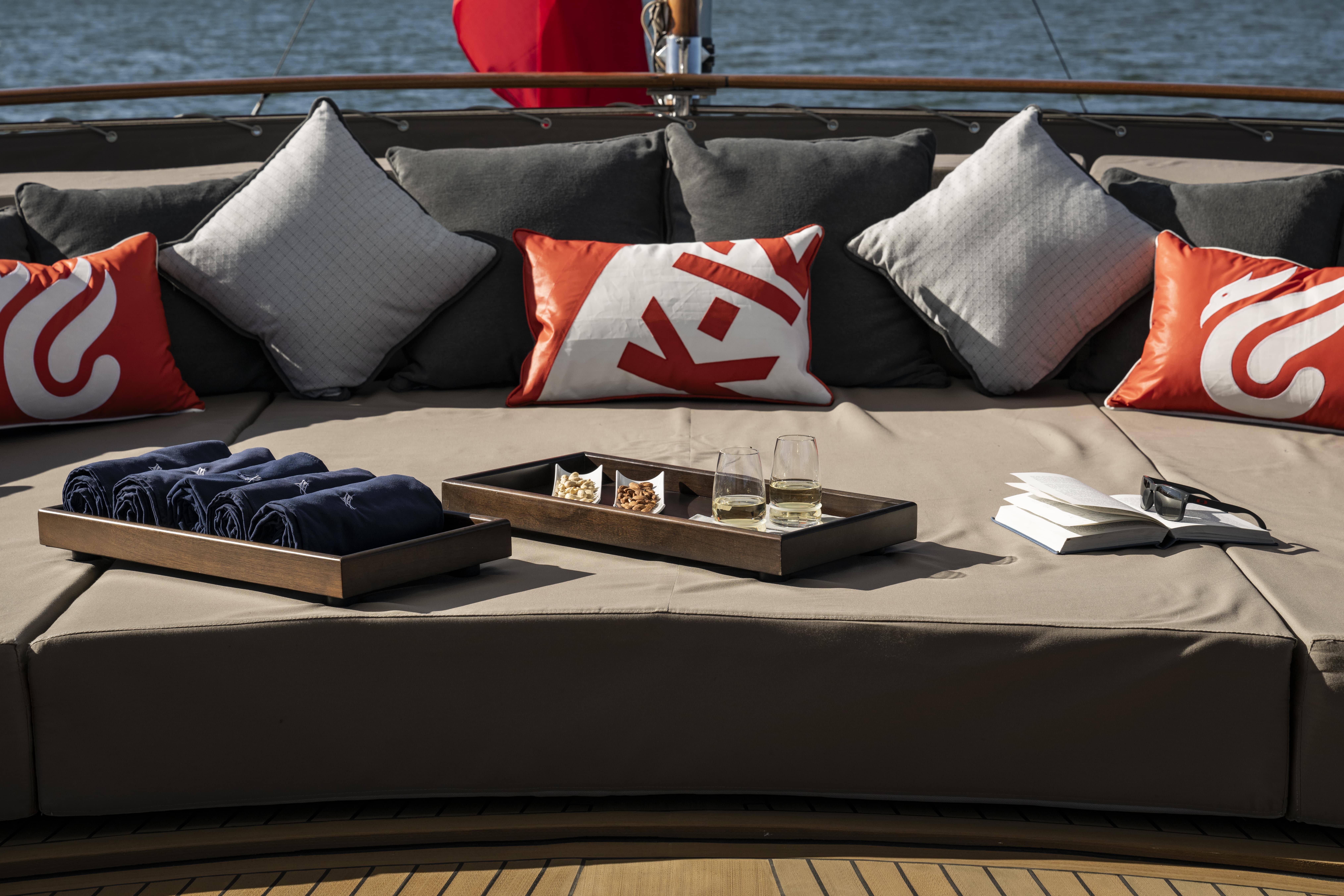 With four ensuite staterooms located on the lower deck aft, LA FENICE can welcome up to nine guests onboard overnight. She also has accommodation for her professional four-person crew who will be on hand throughout your charter to ensure impeccable service for you and your guests.