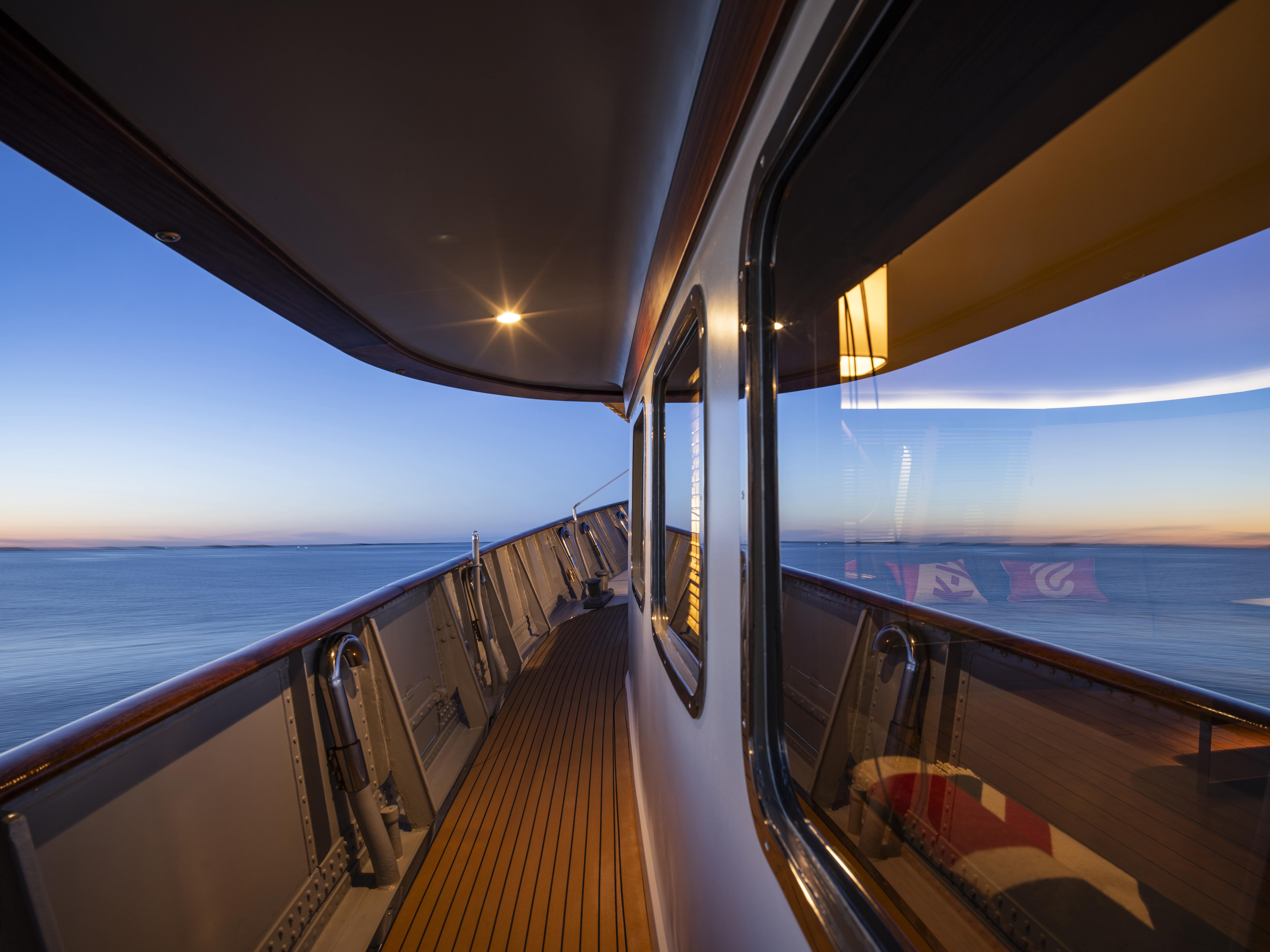 In the mid-80s, LA FENICE was purchased by the French Navy and began a new career as a training vessel for the Customs and Border Force. She was then bought by the photographer Peter Lindbergh in 2001, before returning to the UK in 2020. Fully refitted and refurbished between 2021 and 2023, she is now making her debut on the global charter market and will be exclusively available for charter with SuperYachtsMonaco.