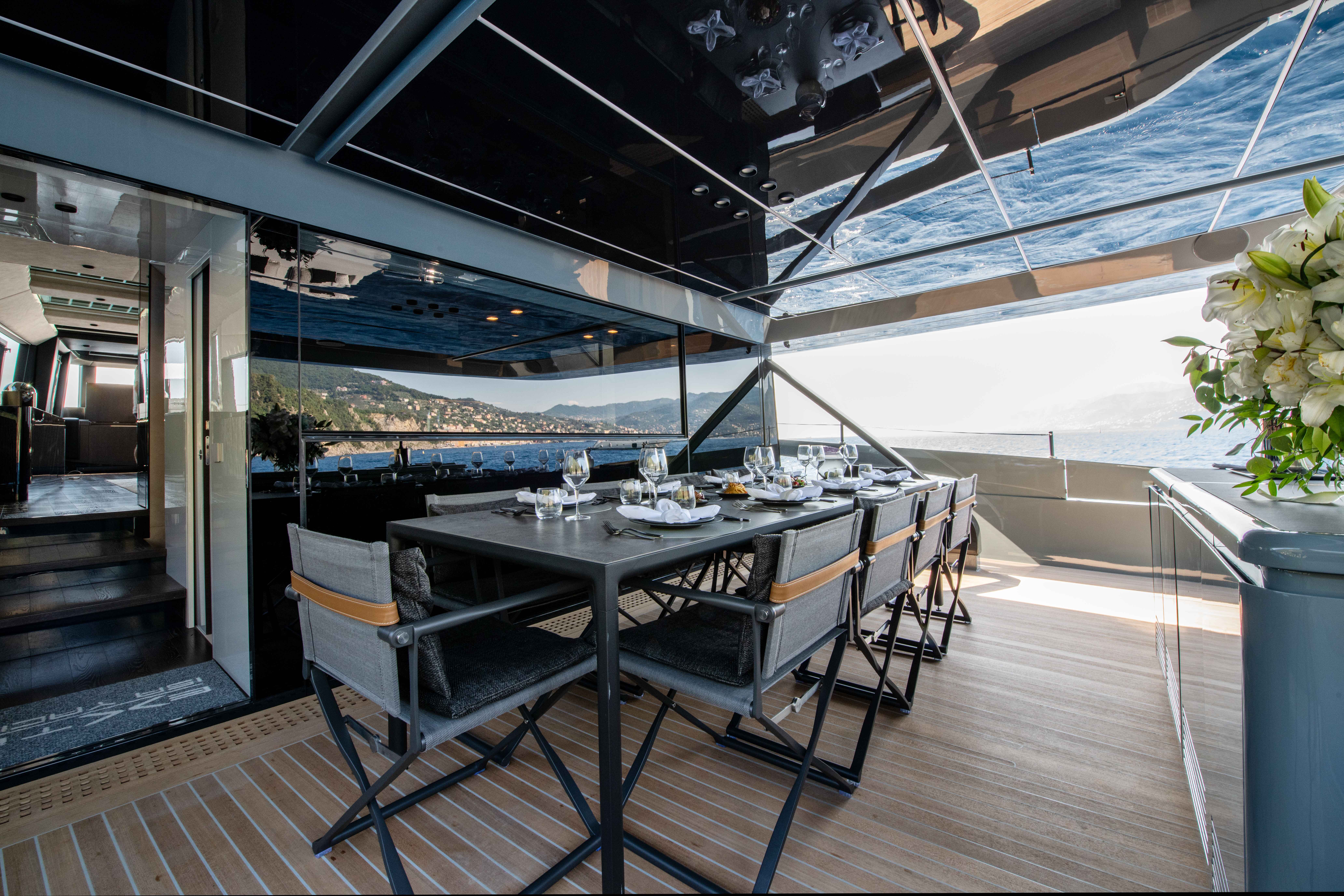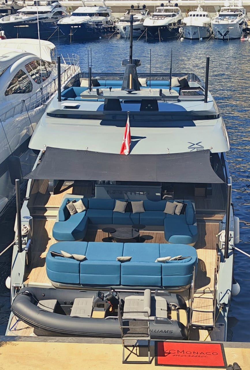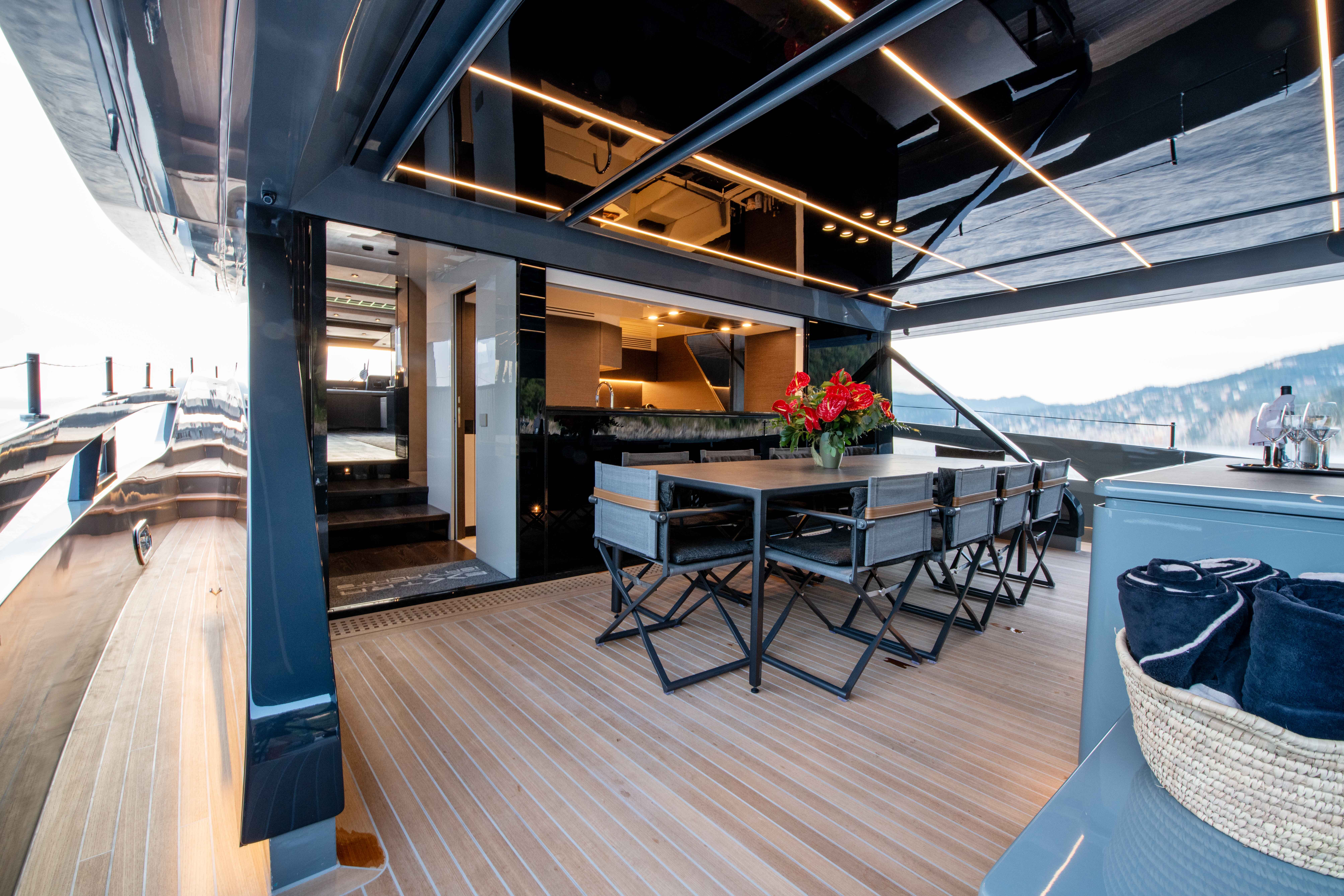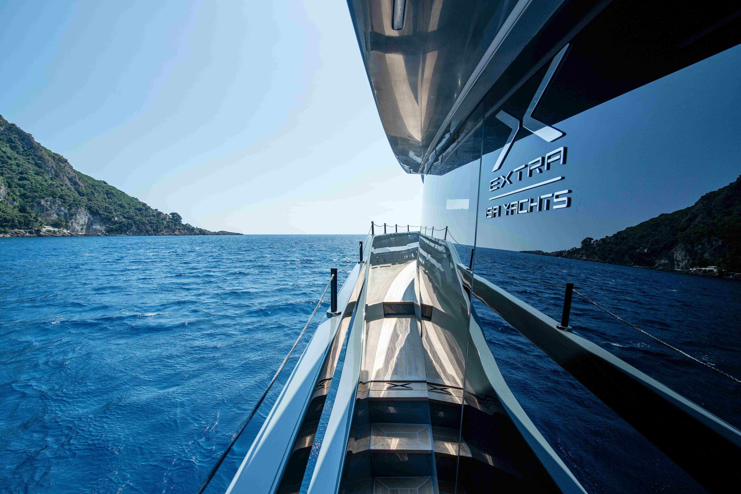 Italian naval architect EXTRA Yachts designed her with a distinguished grey painted hull and superstructure; she is part of the pioneering Extra Yachts Loft line featuring a revolutionising concept fully committed to reducing the environmental impact through exceptional fuel-efficient cruising and a solar panel system. Maximum comfort is provided thanks to the Gyro Seakeeper 22 Stabilizer.
