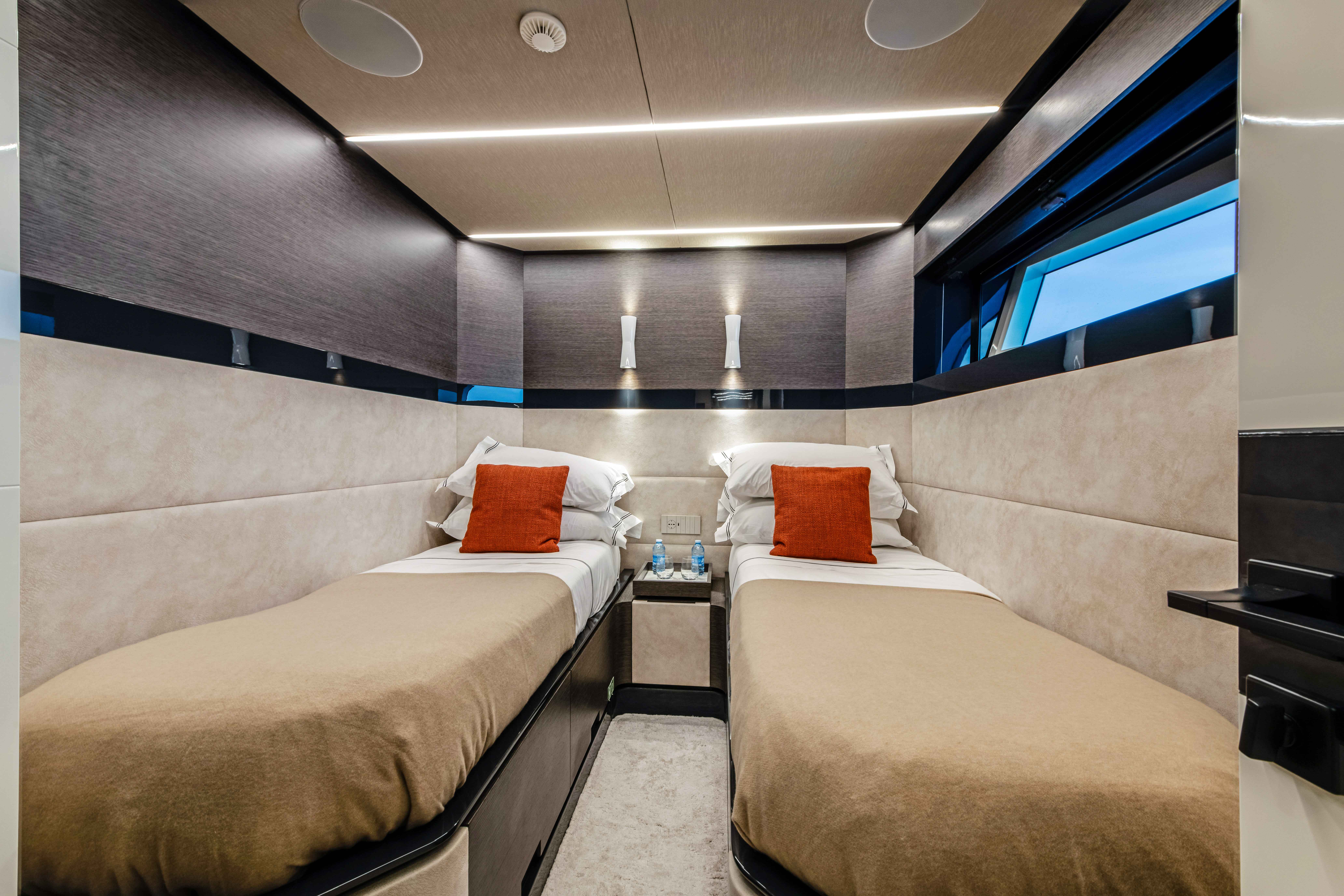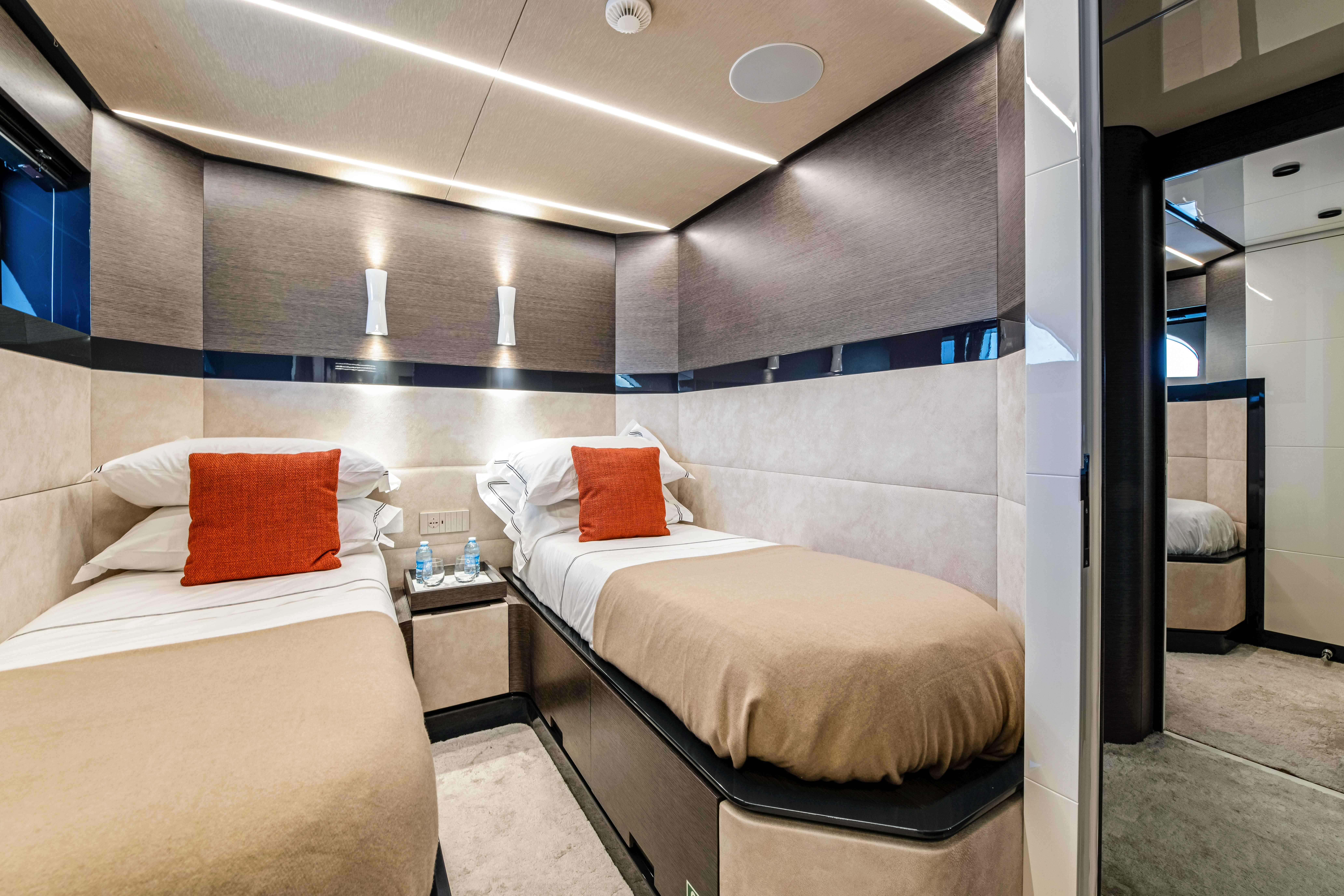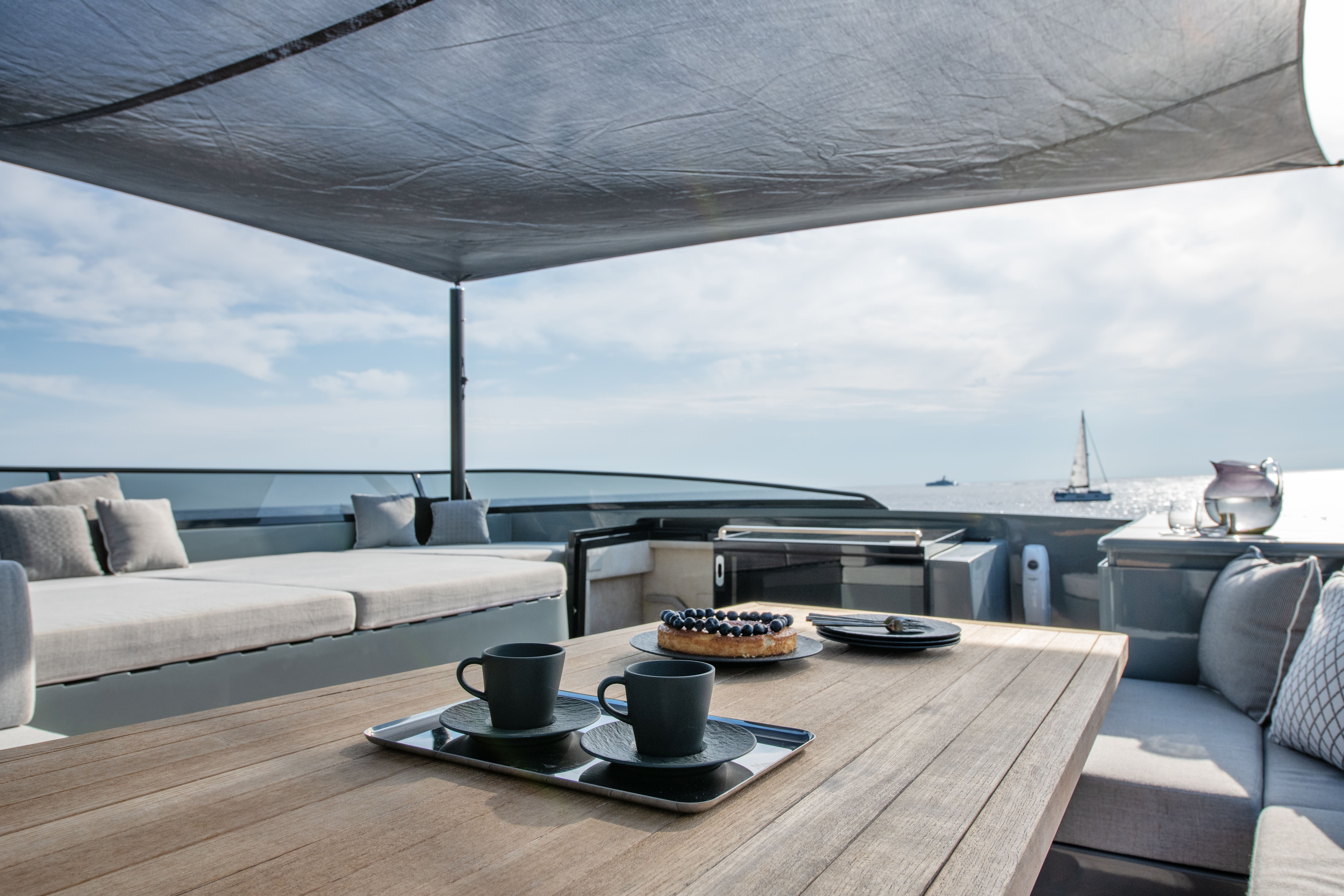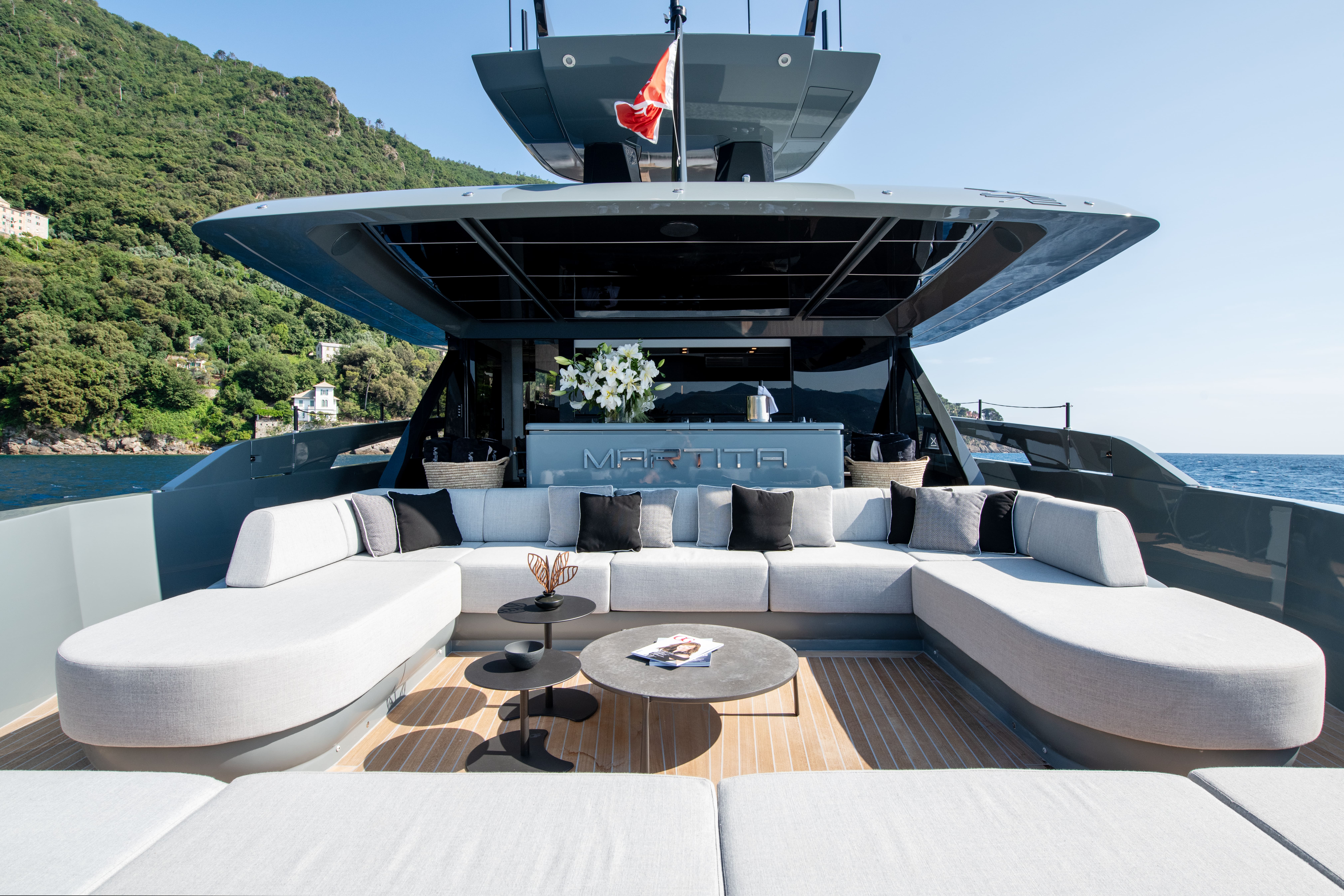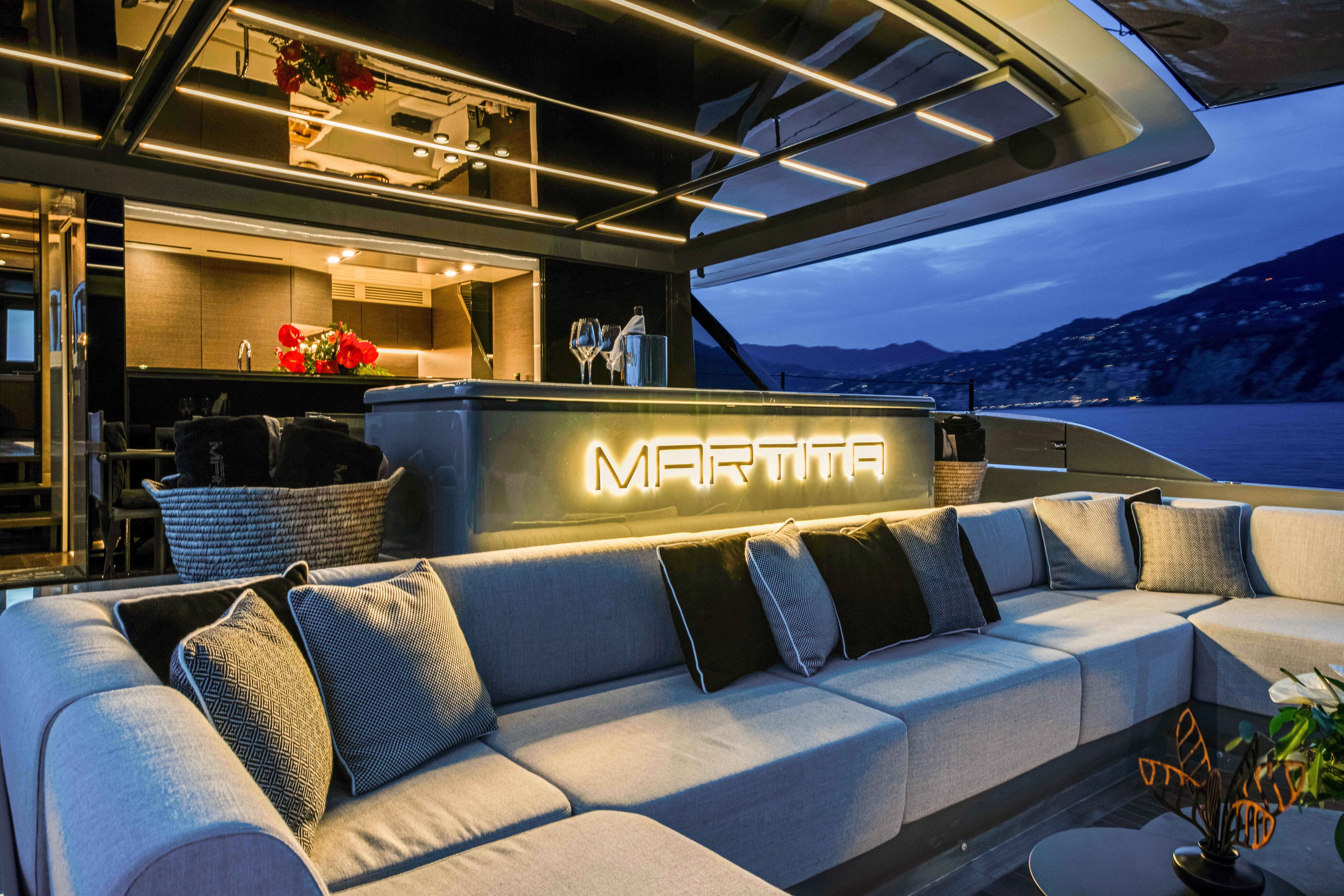 MARTITA features brand-new, sleek contemporary interiors by Hot Lab Yacht & Design. The finest fabrics have been sourced for the interiors, sumptuous to touch, with a wide range of textures including warm woods. Fully air-conditioned throughout for maximum comfort. The luxurious interiors feature a neutral colour-palette of greys, beiges, ivory, and camels providing a light touch of understated elegance with orange accents providing a contemporary Italian aesthetic.