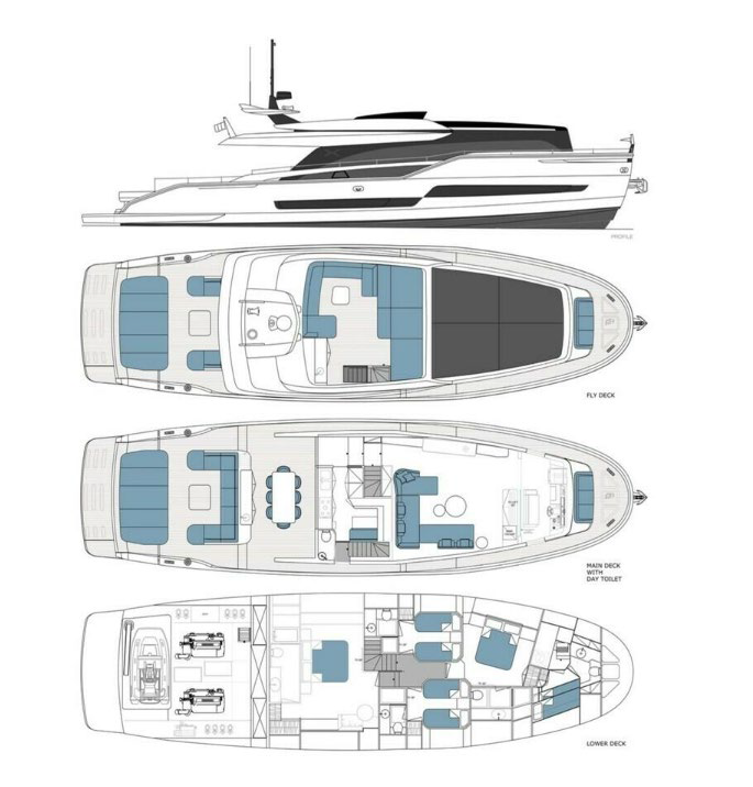 Italian naval architect EXTRA Yachts designed her with a distinguished grey painted hull and superstructure; she is part of the pioneering Extra Yachts Loft line featuring a revolutionising concept fully committed to reducing the environmental impact through exceptional fuel-efficient cruising and a solar panel system. Maximum comfort is provided thanks to the Gyro Seakeeper 22 Stabilizer.