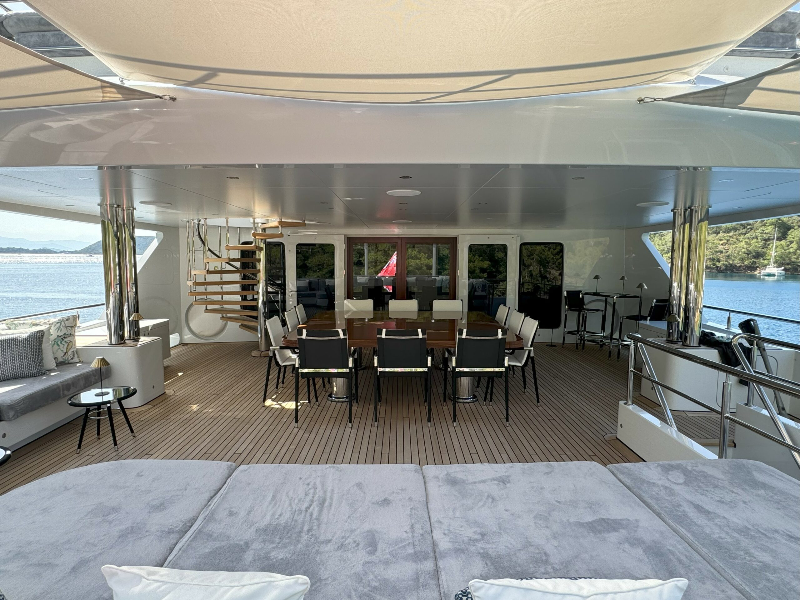 Featuring a minimalist exterior design from the inhouse team at Turquoise, IMMERSIVE is built from Turkish steel. Large windows provide unobstructed views of your destination while her wealth of exterior lounge and dining areas will ensure you can enjoy the outdoor lifestyle.