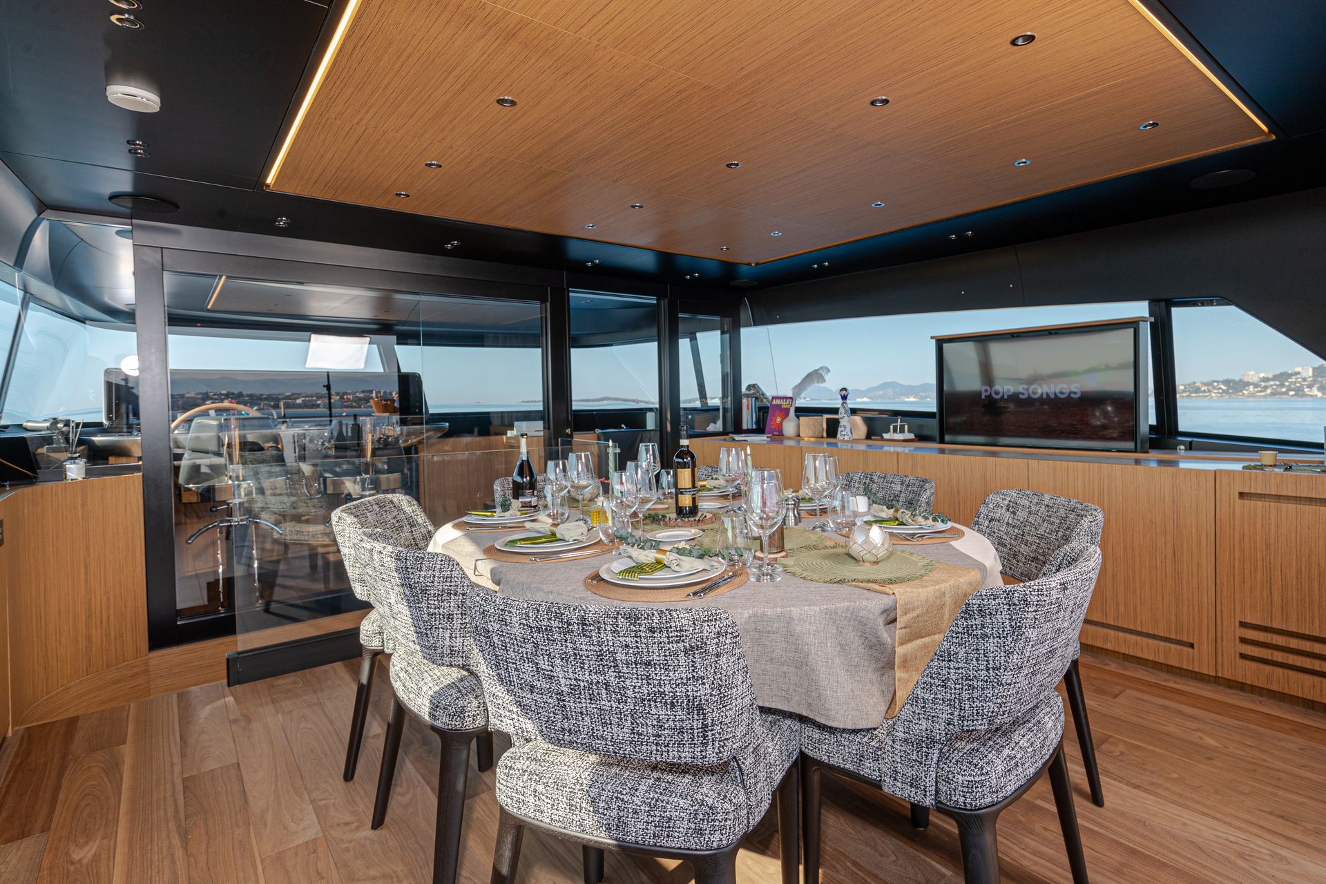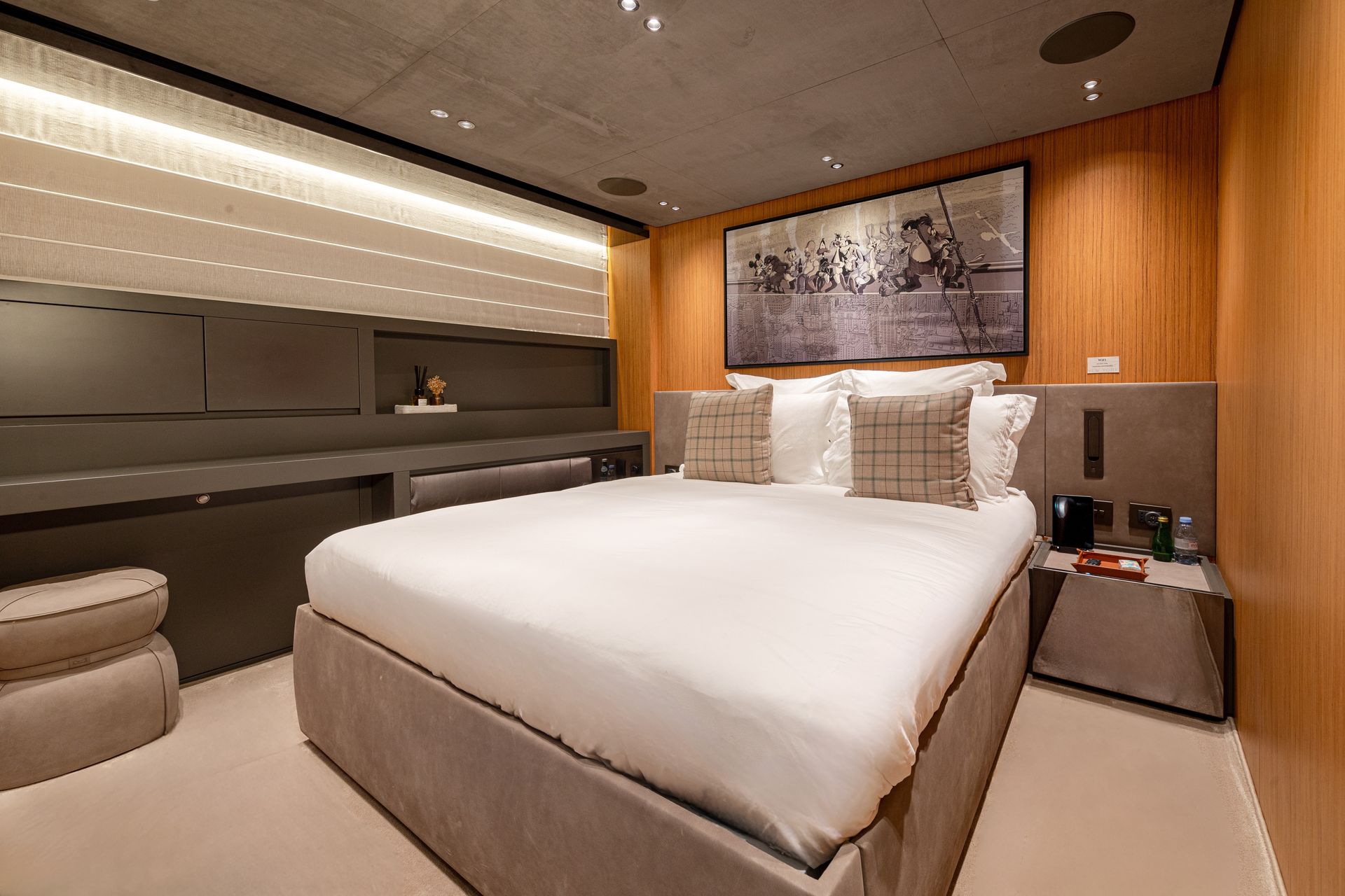 Below deck, NEW YORK features four luxurious cabins, accommodating 8 guests + 1 child. These include three serene double suites and one twin cabin with a Pullman berth. All are equipped with ensuite bathrooms, soft neutral palettes, and refined materials for a calming onboard atmosphere. Whether you’re entertaining close friends or enjoying downtime with family, each cabin offers a private sanctuary with thoughtful details throughout.