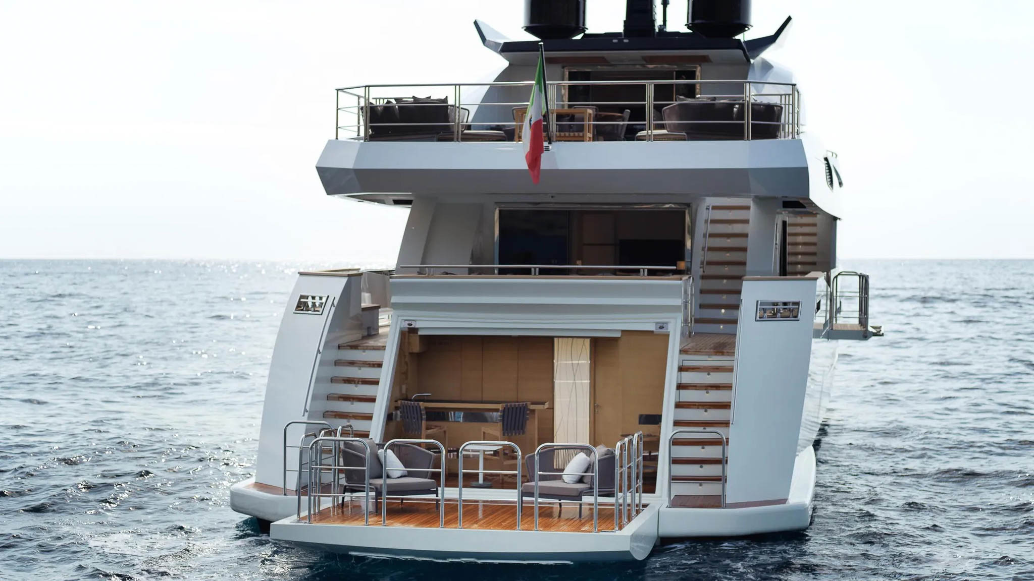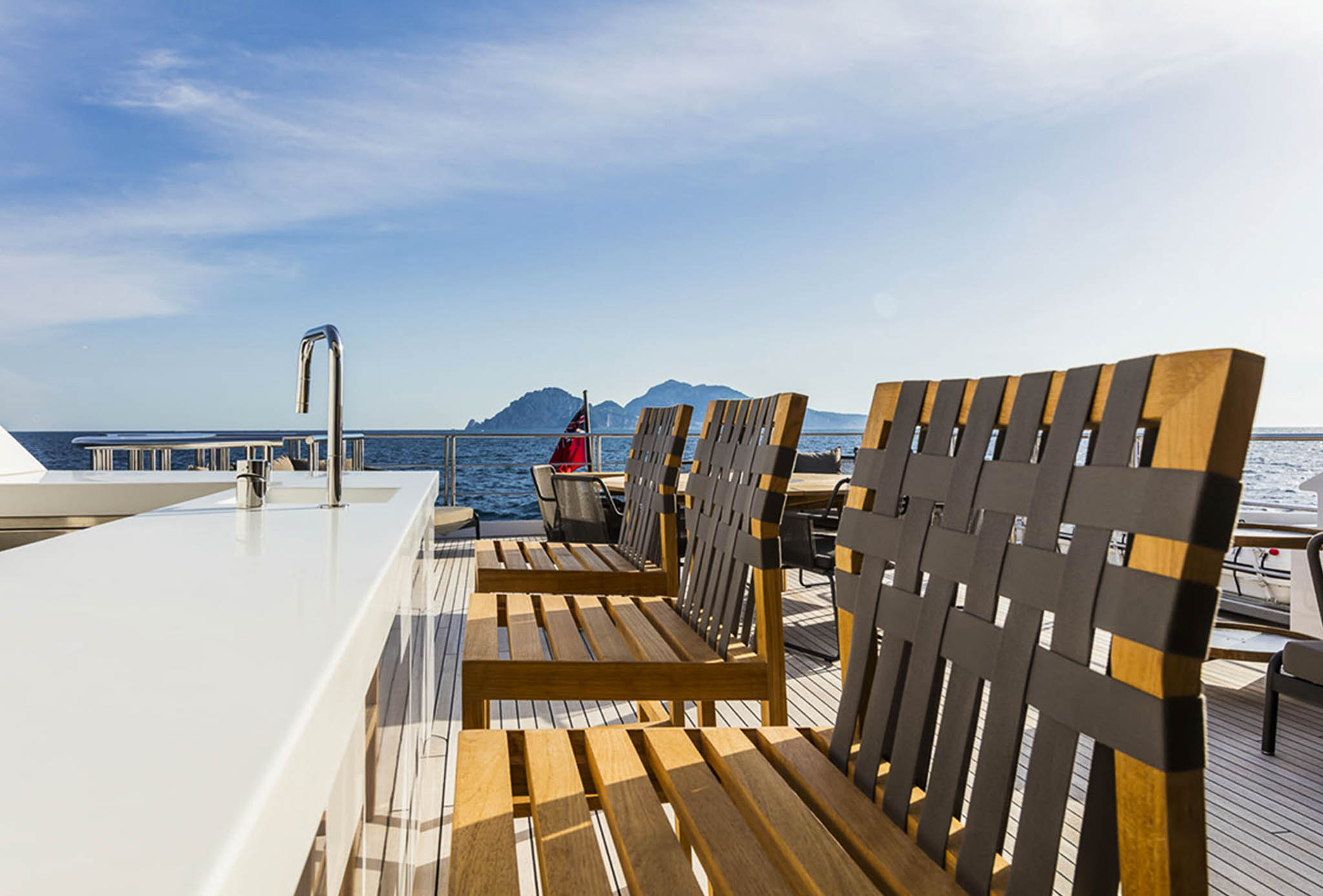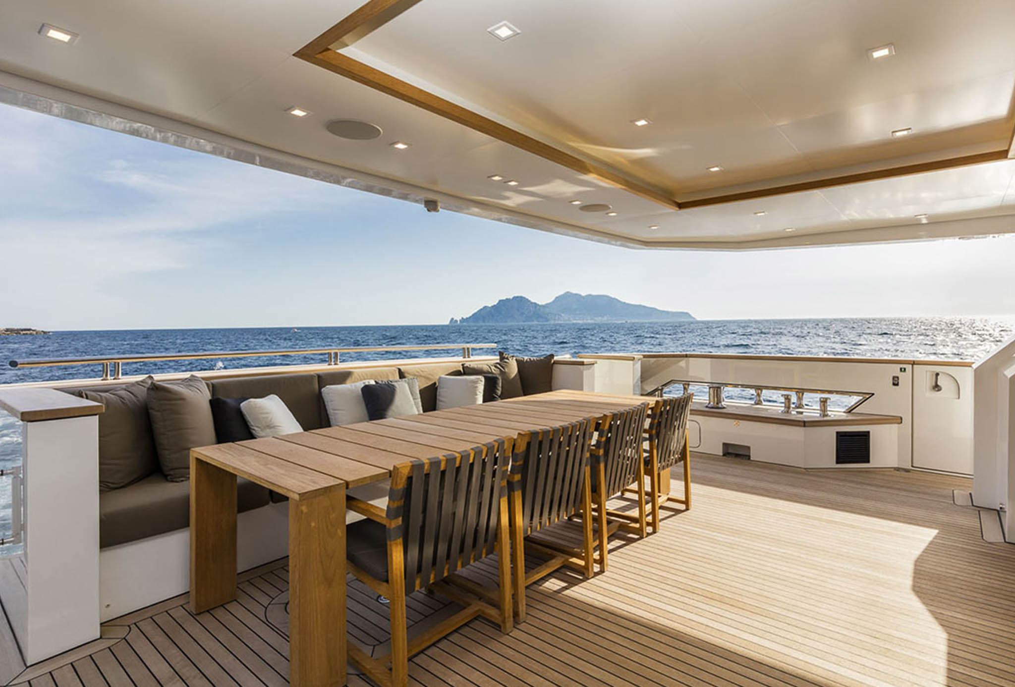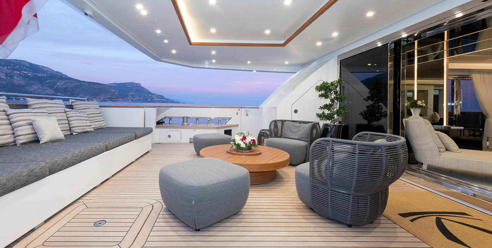 Next, a luxury yacht built in 2015, has magnificent indoor/outdoor living on its nicely designed decks.