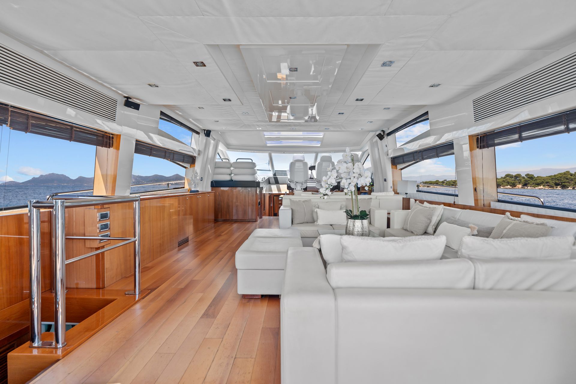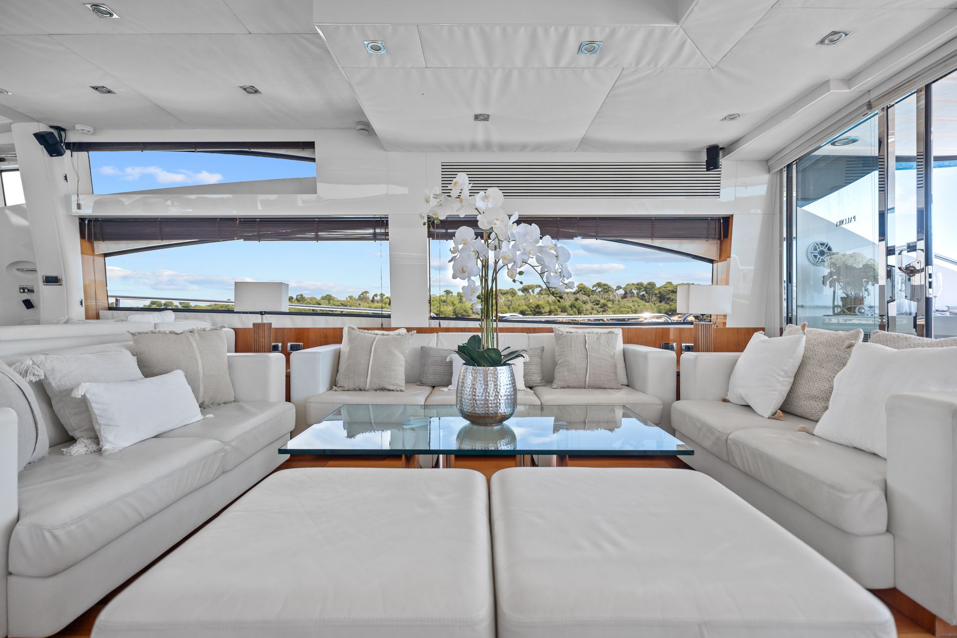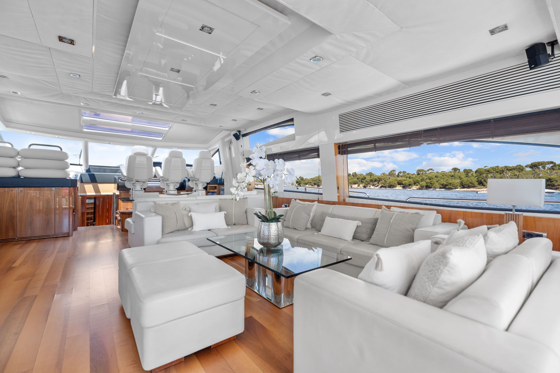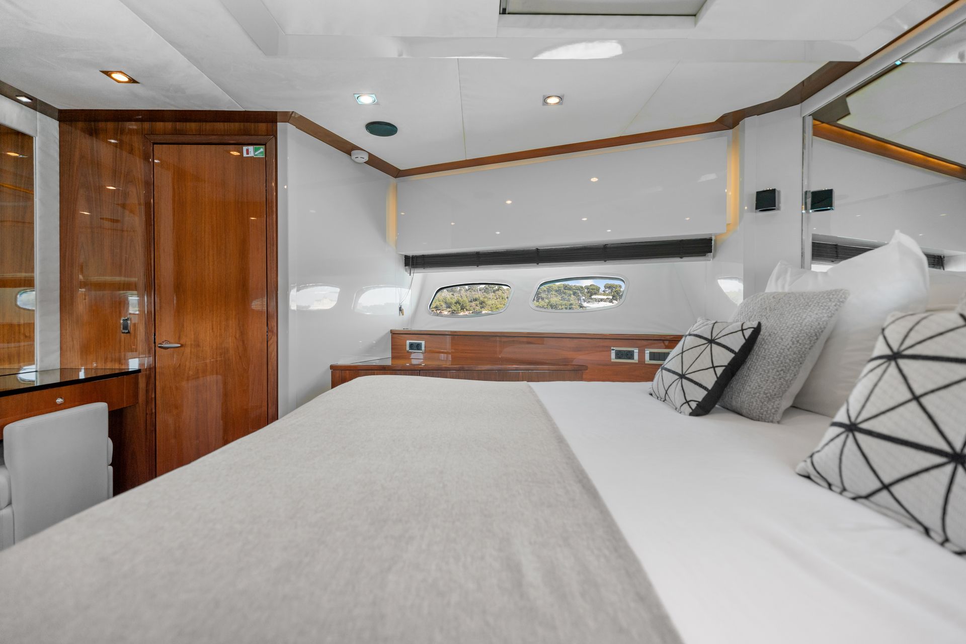 Built by Sunseeker, a name synonymous with performance and style, PALUMBA cuts an elegant figure on the water. With a full refit completed in 2025, her interiors and exterior spaces have been refreshed to meet modern charter expectations. From her spacious flybridge to her aft deck lounging area, every space invites effortless enjoyment — whether you’re island-hopping at speed or soaking up the Mediterranean sun.