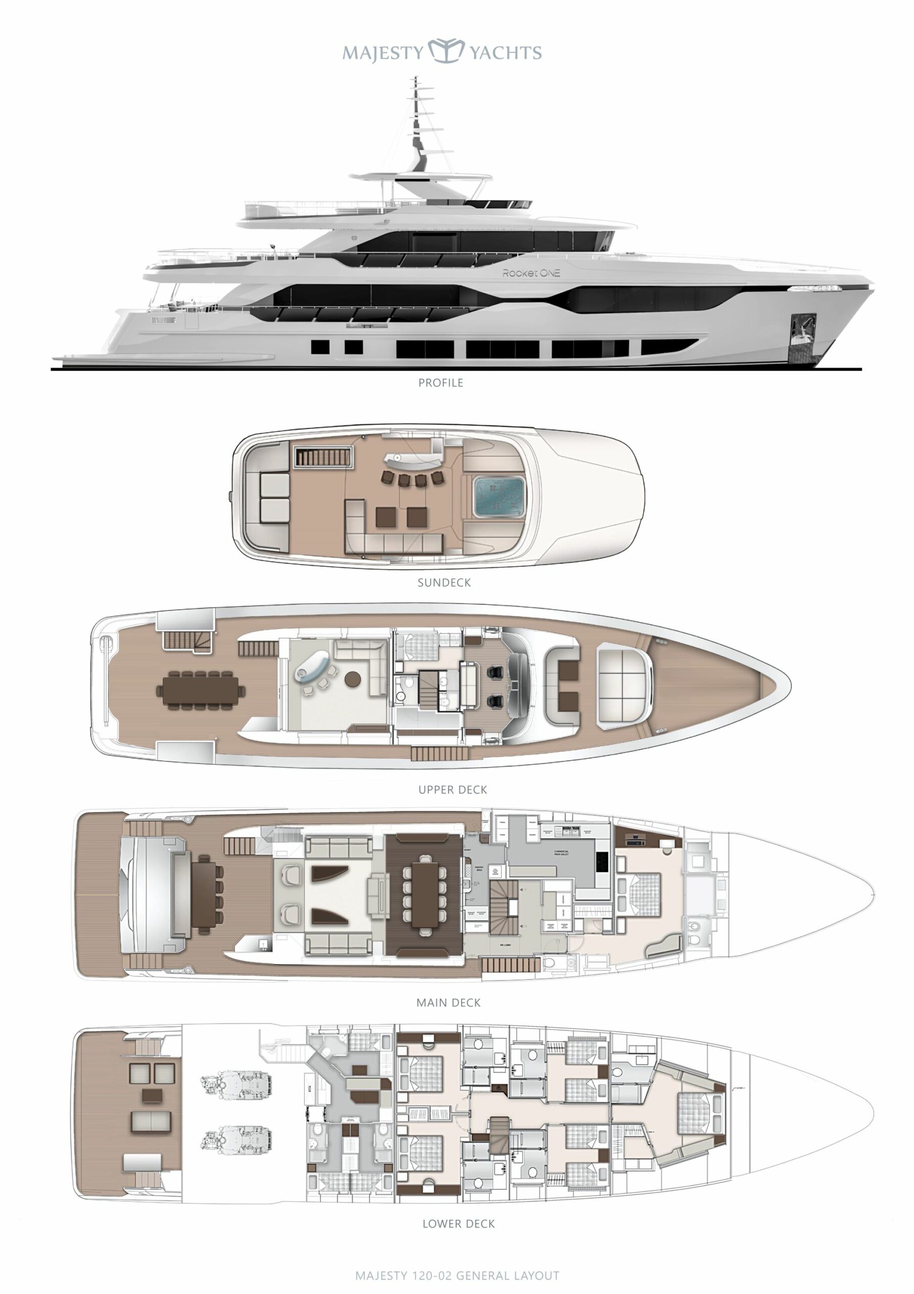 Designed to cater to the Owner’s preferences, the Majesty 120 is a stunning superyacht ideal for private retreats and seamless entertainment. Boasting a length of 37m, this formidable vessel prioritizes luxury, performance, and comfort.