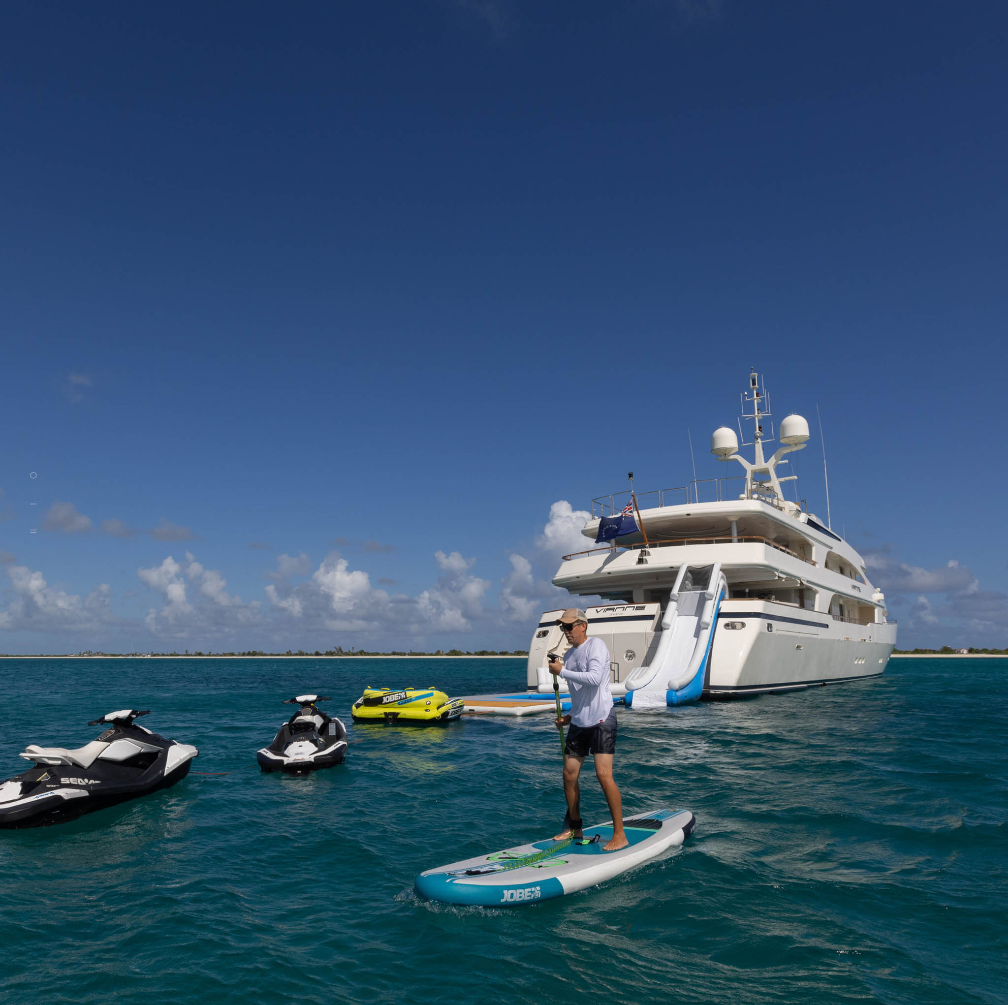 Ready for fun? Hop aboard SOLAFIDE, a play-ready 52m Benetti yacht, boasting an array of water toys and a dedicated games room. Post her remarkable 2023 refit, SOLAFIDE emerges as a rejuvenated, top-tier charter yacht with all-new furnishings, engines, and stabilisers. This yacht comfortably hosts 12 guests across 5 exquisite cabins, maintained by a 12-person crew.