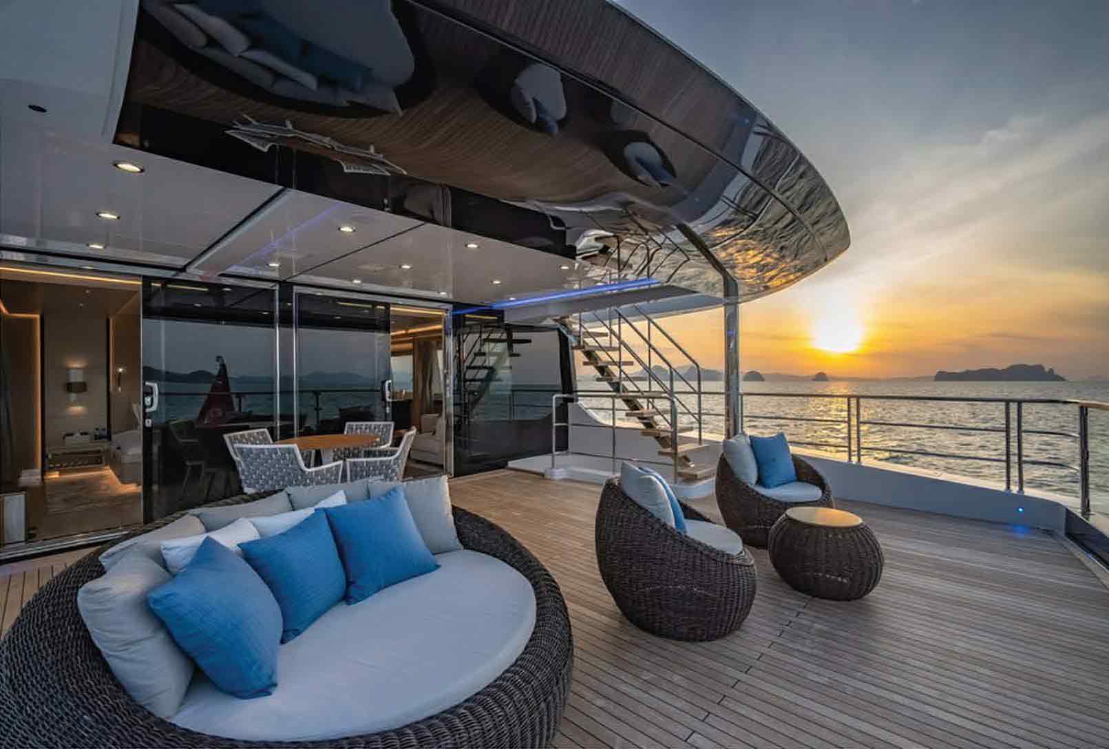Whether you’re unwinding in the sunken Jacuzzi with a bespoke cocktail or sharing stories beneath the stars at the sundeck bar, SONG OF SONGS offers the perfect setting for every mood and moment. Her experienced crew, deeply familiar with the region’s culture and cruising grounds, ensures a seamless and enriching journey from the very first day. Based in Asia and available year-round, SONG OF SONGS primarily cruises between Phuket and Singapore.