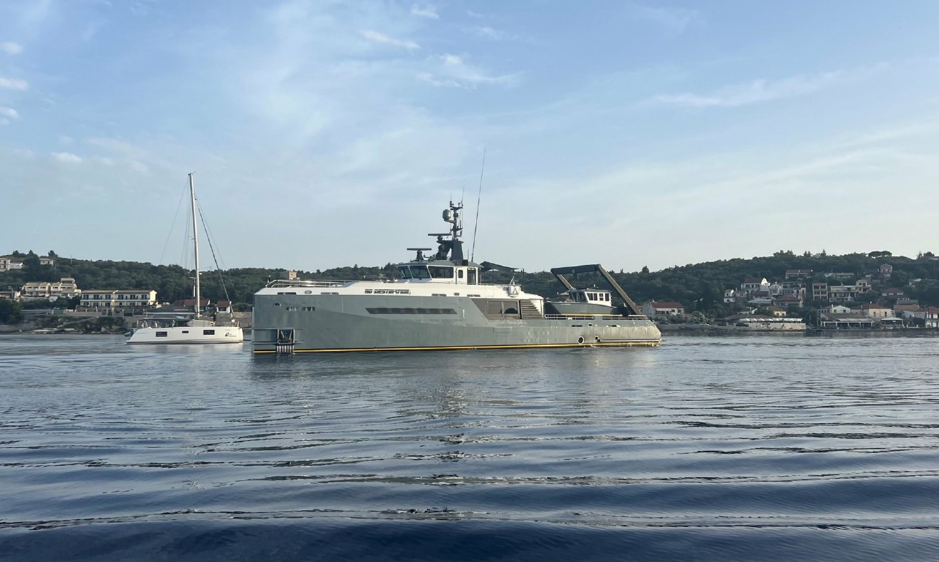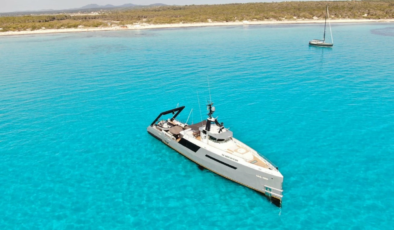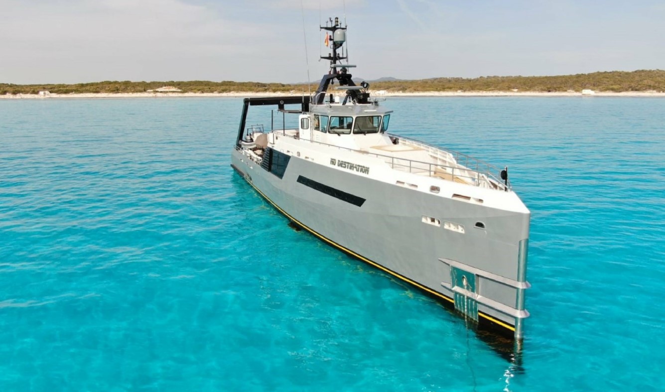 NO DESTINATION is a rugged yet refined 37.5m Damen adventure yacht for sale that exemplifies engineering excellence and expedition pedigree. Originally constructed in 2009 and completely rebuilt to “as-new” condition in 2022, she merges military-grade build quality with superyacht luxury.