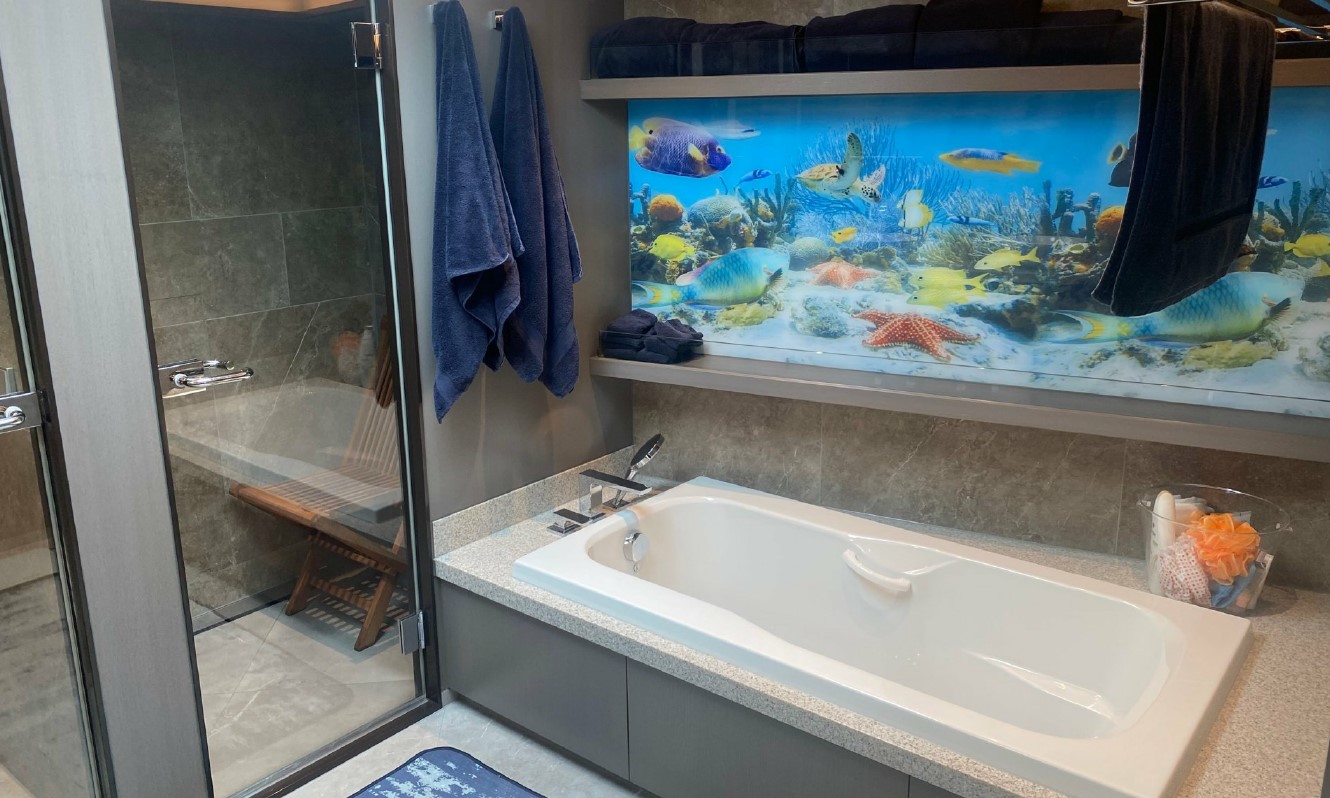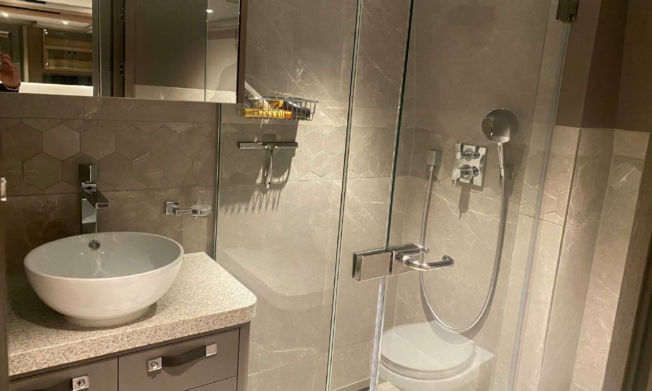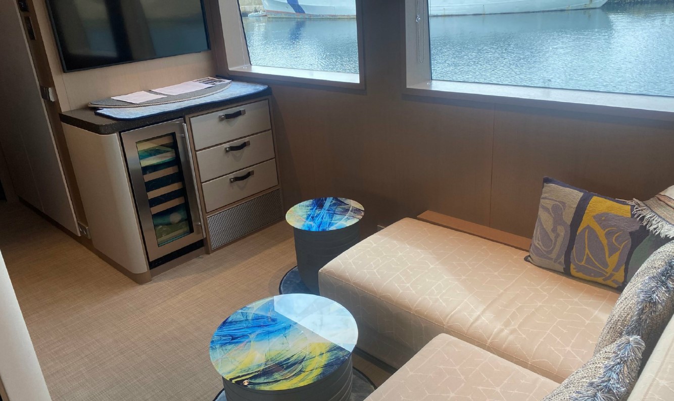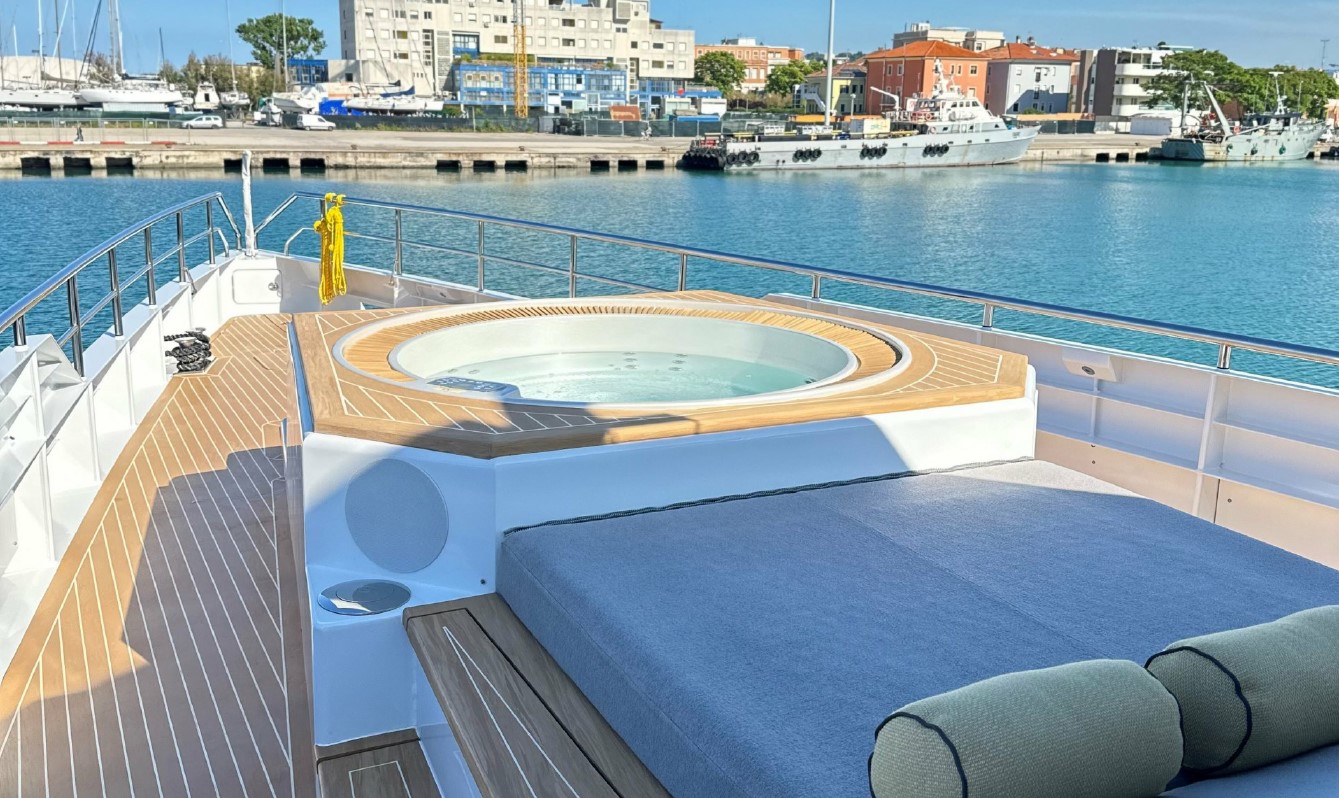 Her interior, redesigned by Just Design and Super Nova Luxury Interior, reflects understated sophistication, with rich textures, ambient lighting, and refined furnishings. Accommodation includes a spacious full-beam master suite, a queen guest cabin, and a twin — all equipped with modern entertainment systems and private en suites. Every inch of her 196GT has been thoughtfully optimised to support long-range cruising without compromising comfort.