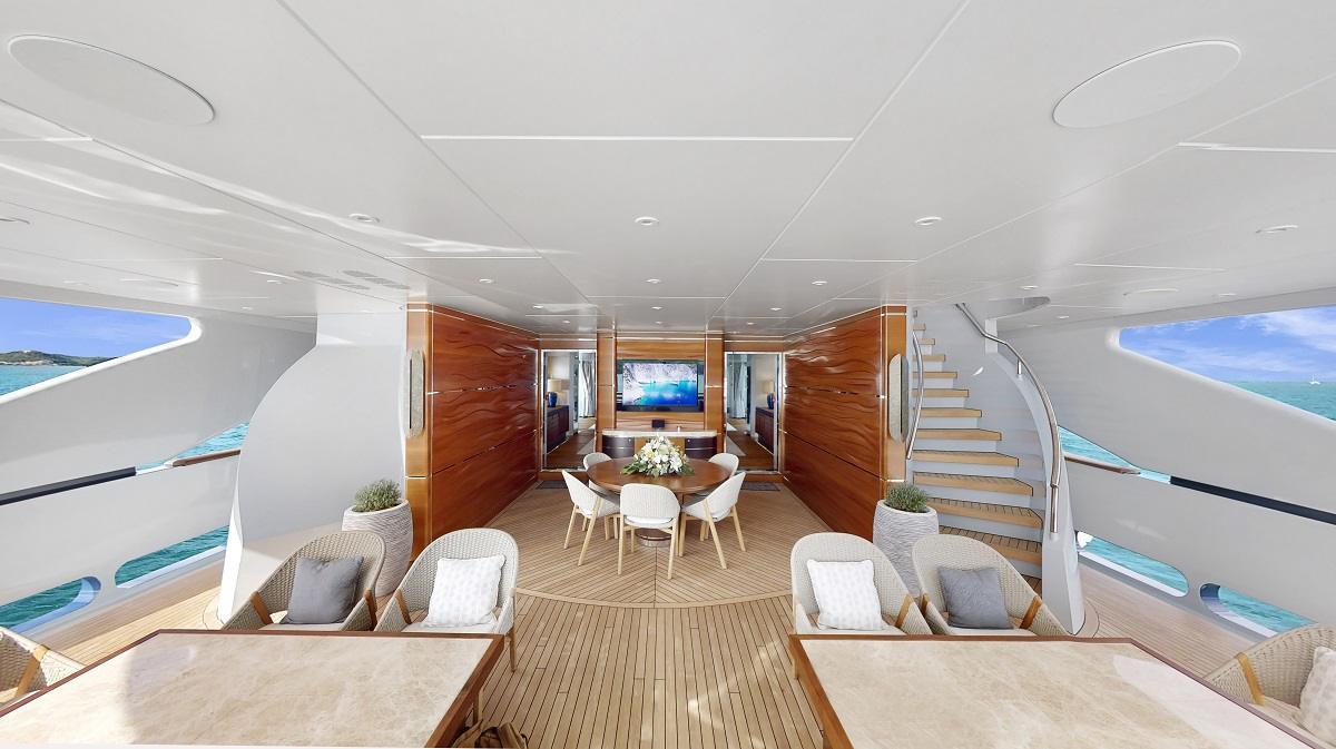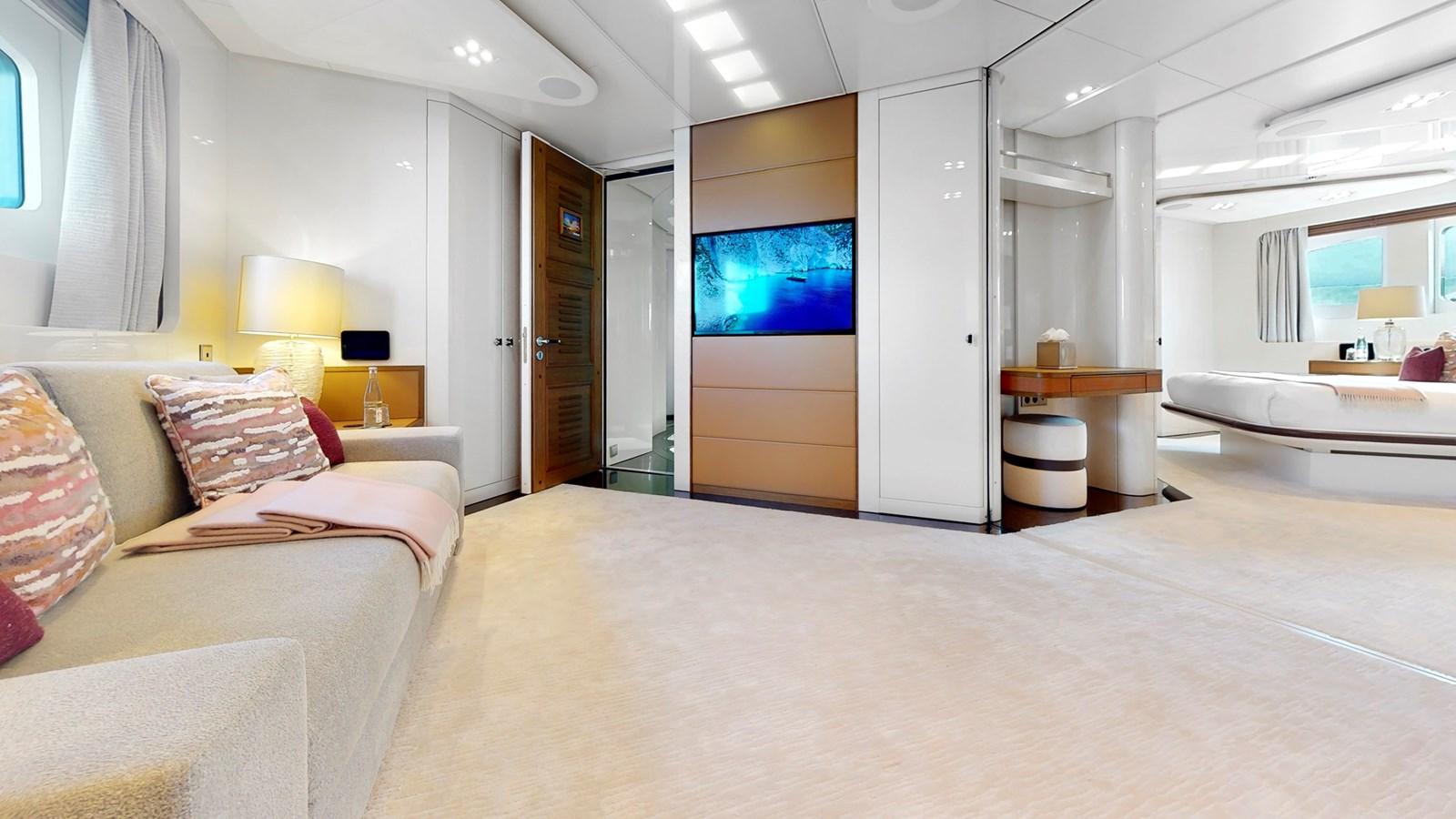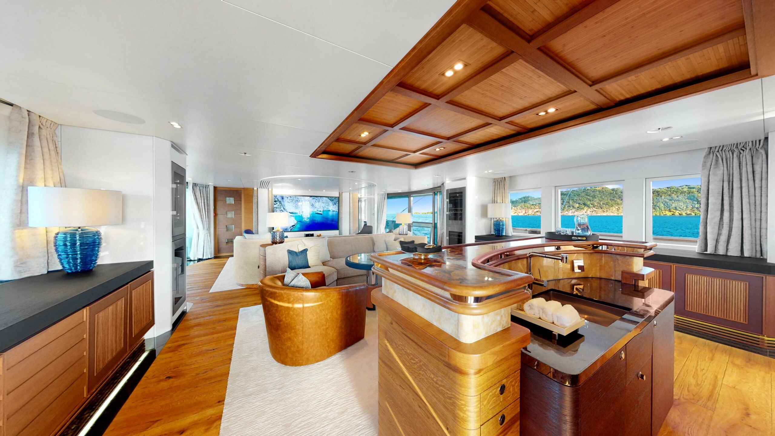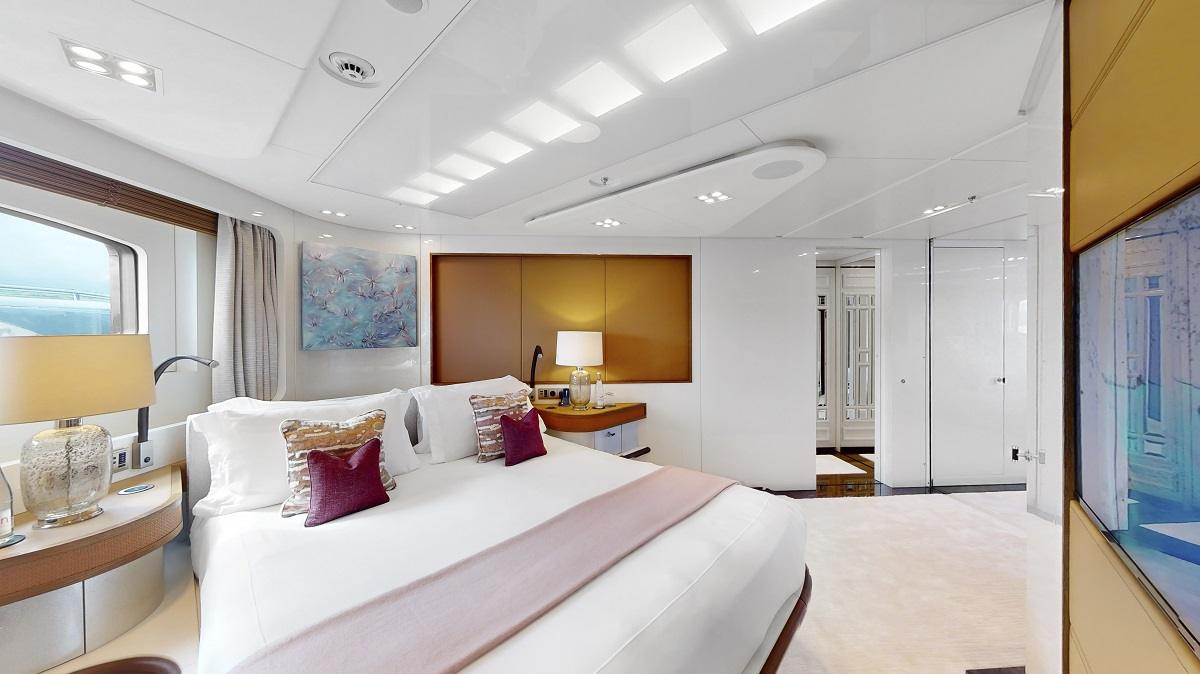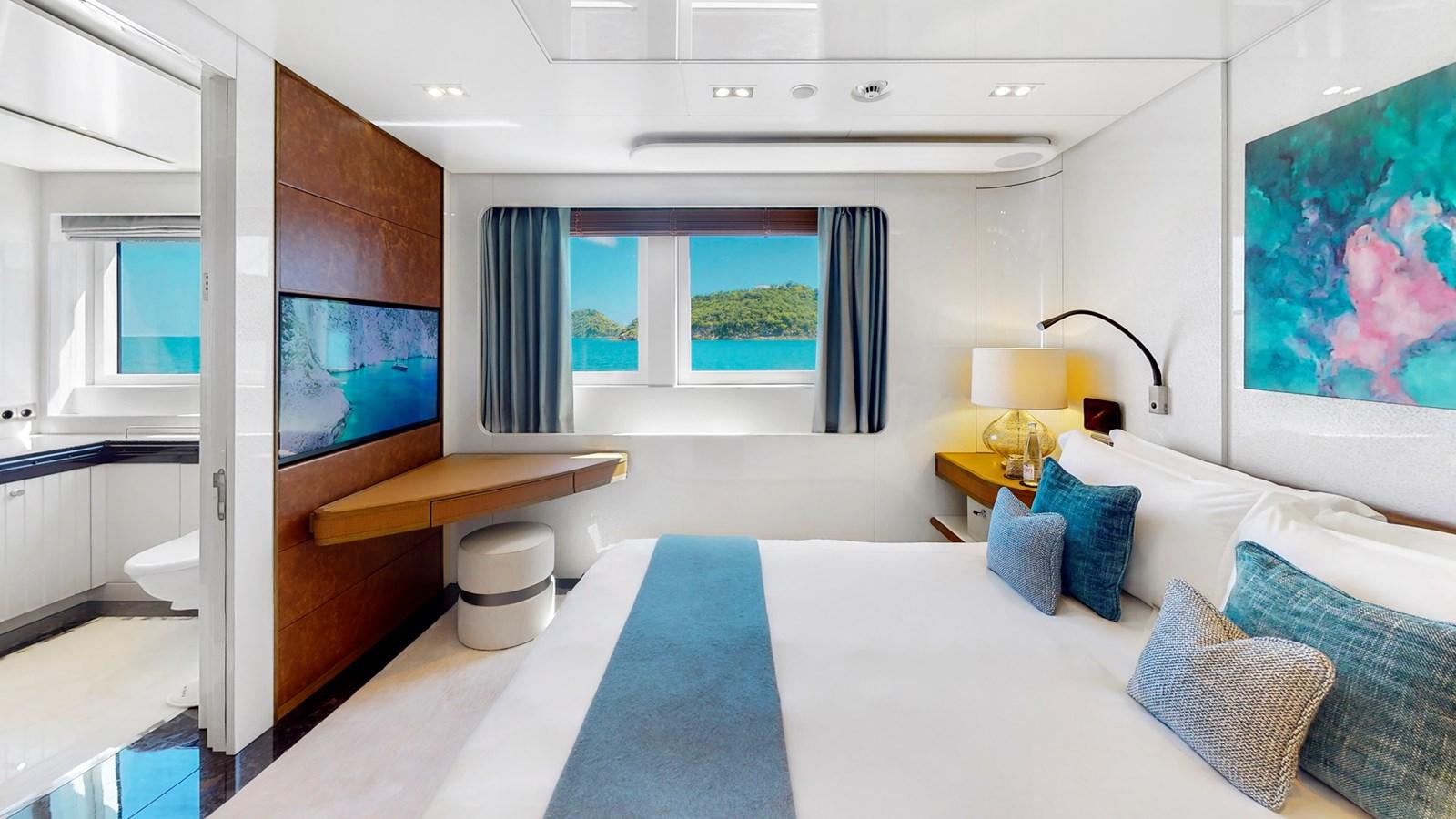 Accommodation is optimised for family living or private use, with six en-suite guest cabins including a full-beam master suite, VIP, two doubles, a twin, and a convertible. With generous internal volume and crew quarters for 13, this 55m Heesen motor yacht ensures exceptional comfort, privacy, and service for all on board.
