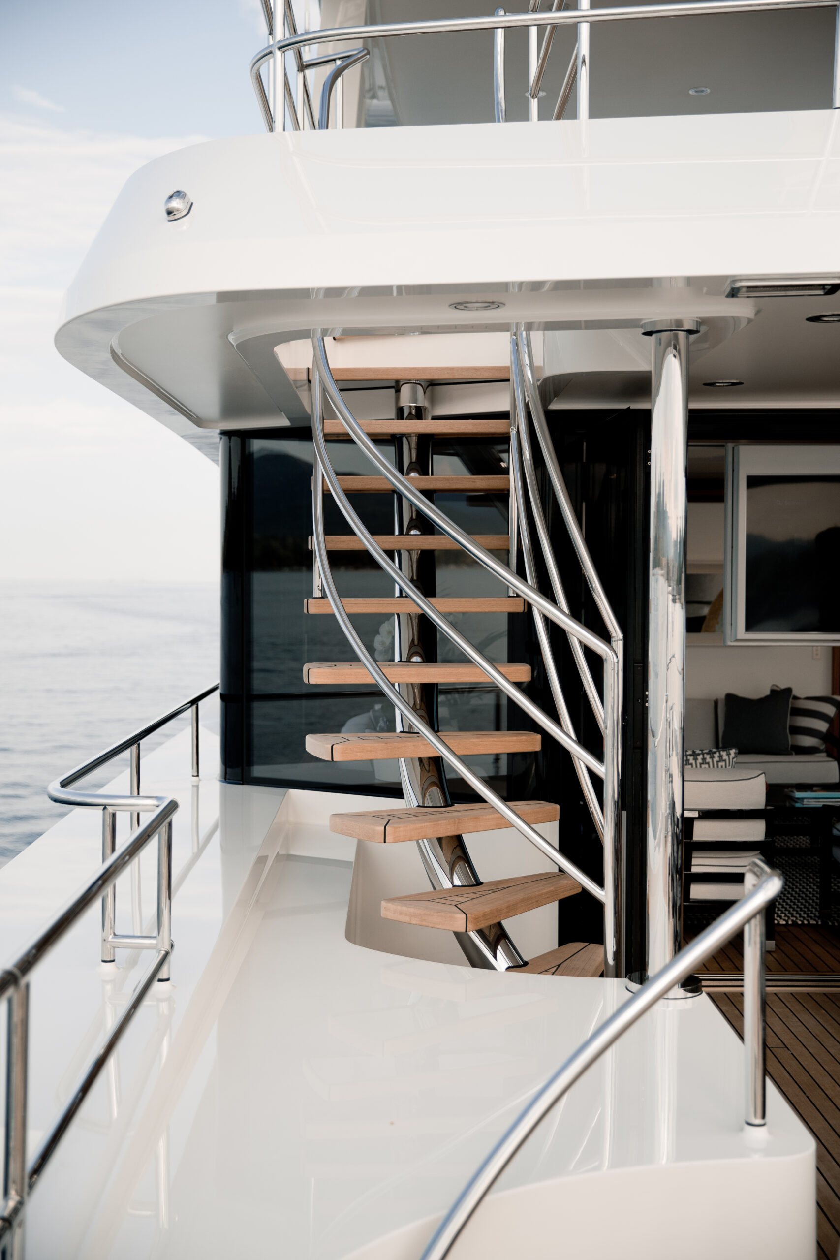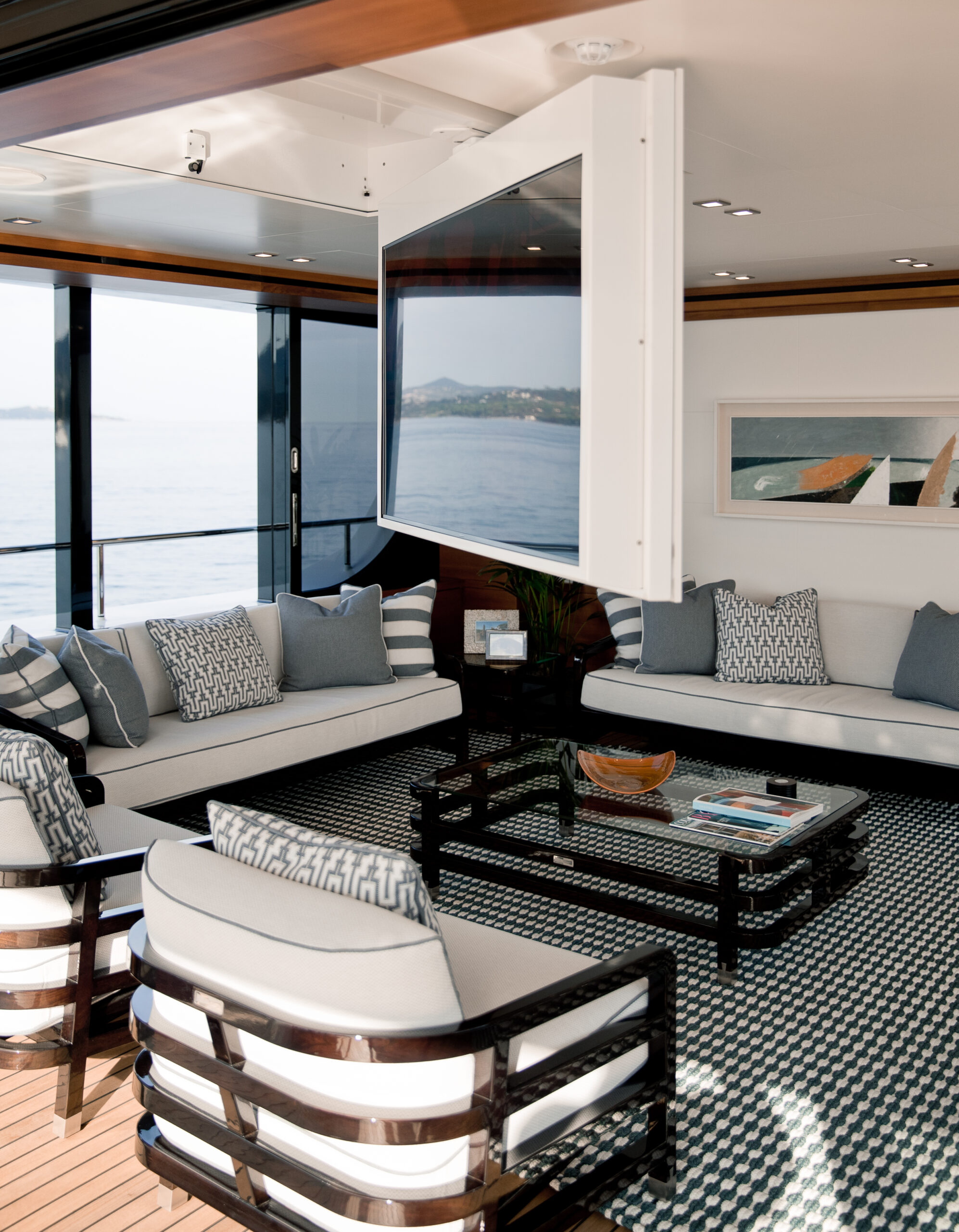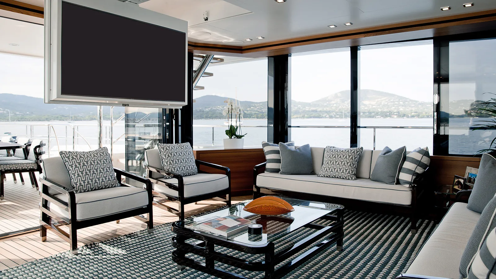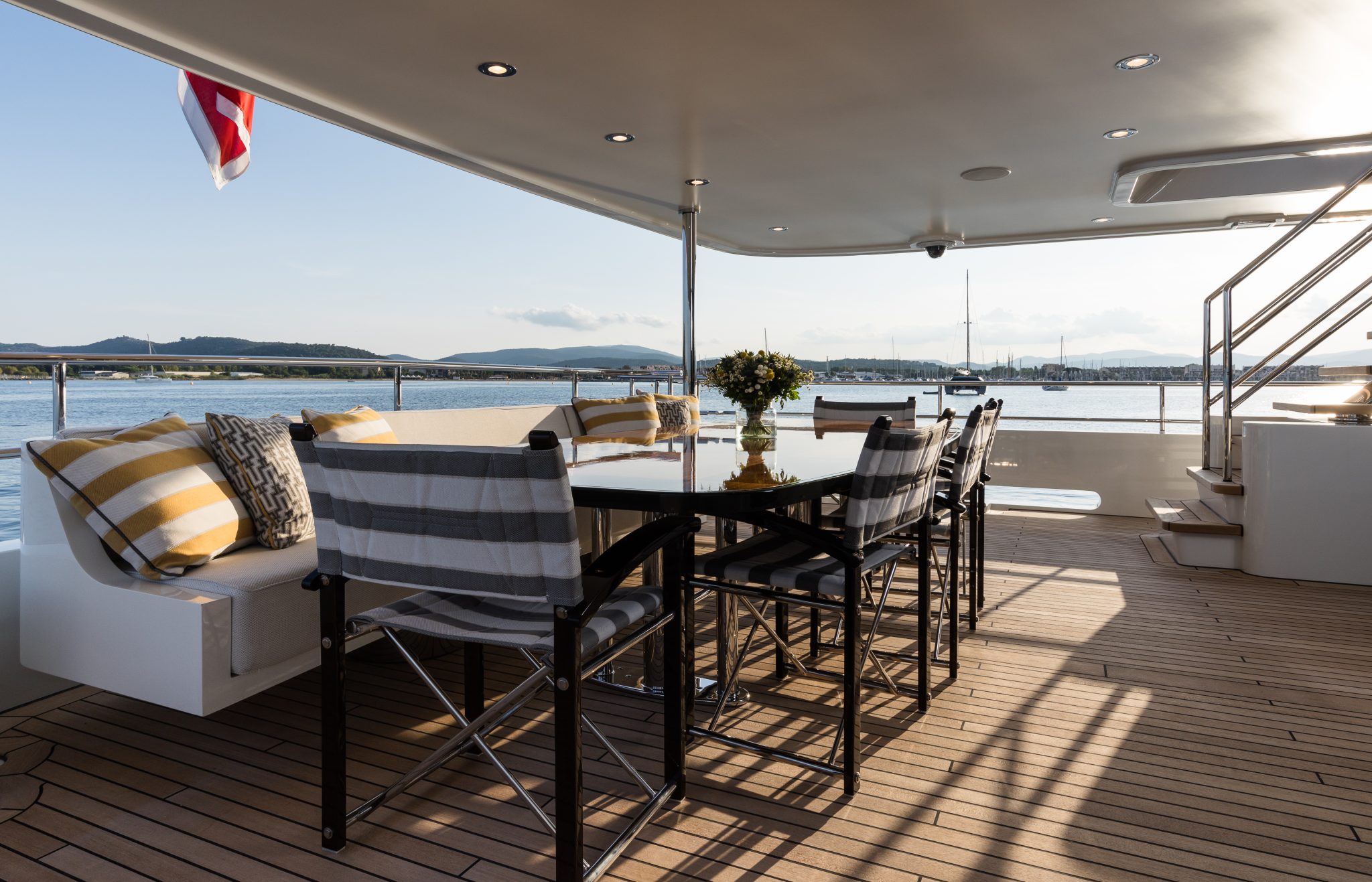 BRIGADOON’s sophisticated outdoor areas are designed for seamless entertainment. Her sun deck features a bar and loungers, while the innovative enclosed Winter Garden on the bridge deck offers a climate-controlled space with panoramic views. The main deck aft provides ample space for alfresco dining, creating a perfect flow for socialising at anchor or underway.