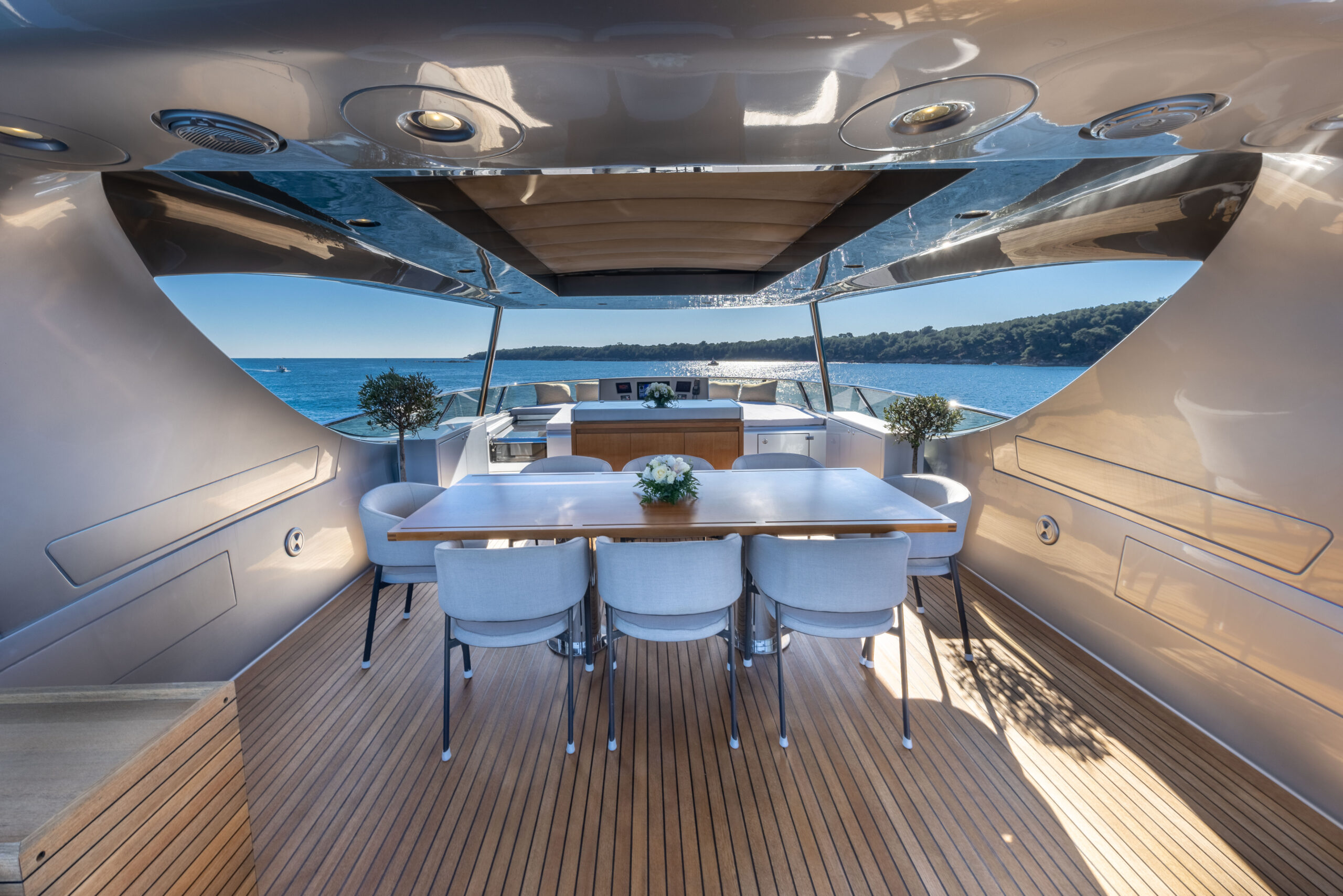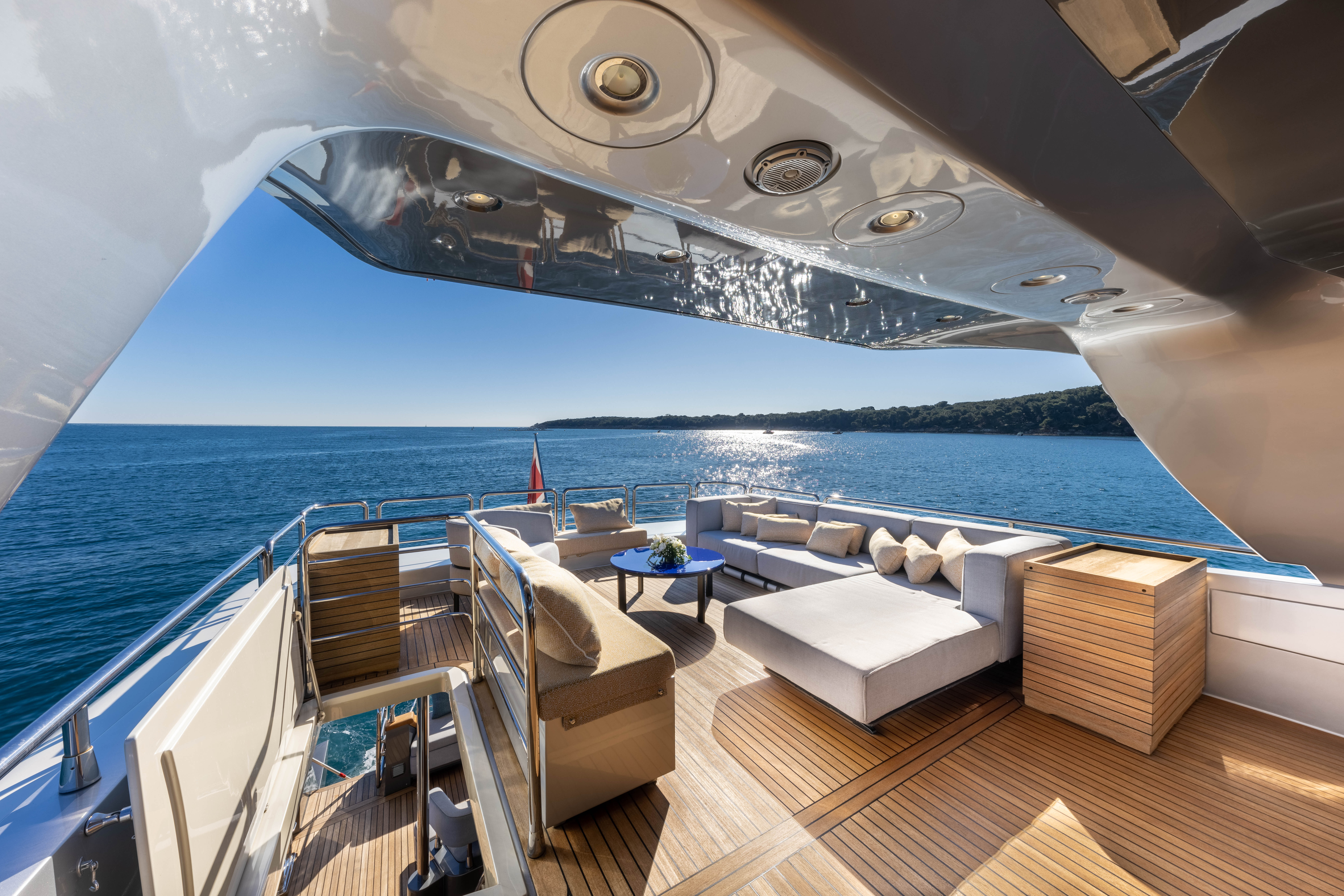 Registered under 24 metres for easier anchoring and operational flexibility, MAD DAY  is a standout option for owners seeking Mediterranean adventures. From her zero-speed stabilisers, retractable bimini, and fully opening main salon doors to her tender and jet ski garage, this Canados 888 Evolution yacht is engineered for stylish, fast cruising with every luxury accounted for.