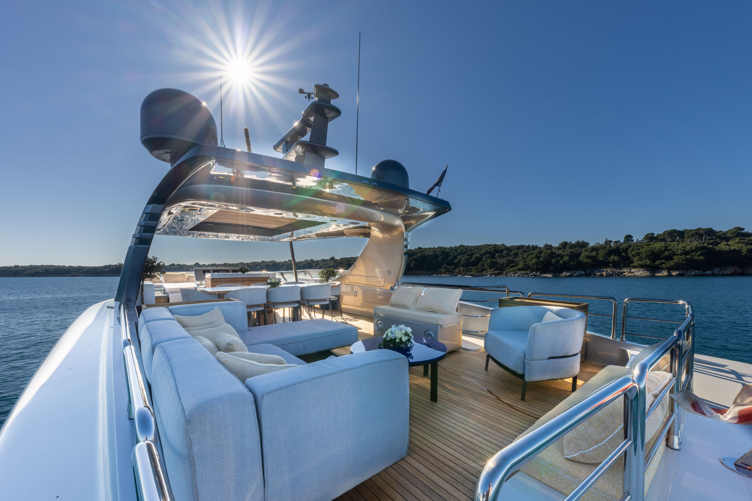 Equipped with zero-speed stabilisers, bow and stern thrusters, and modern helm electronics, she ensures optimal comfort and control in all conditions.