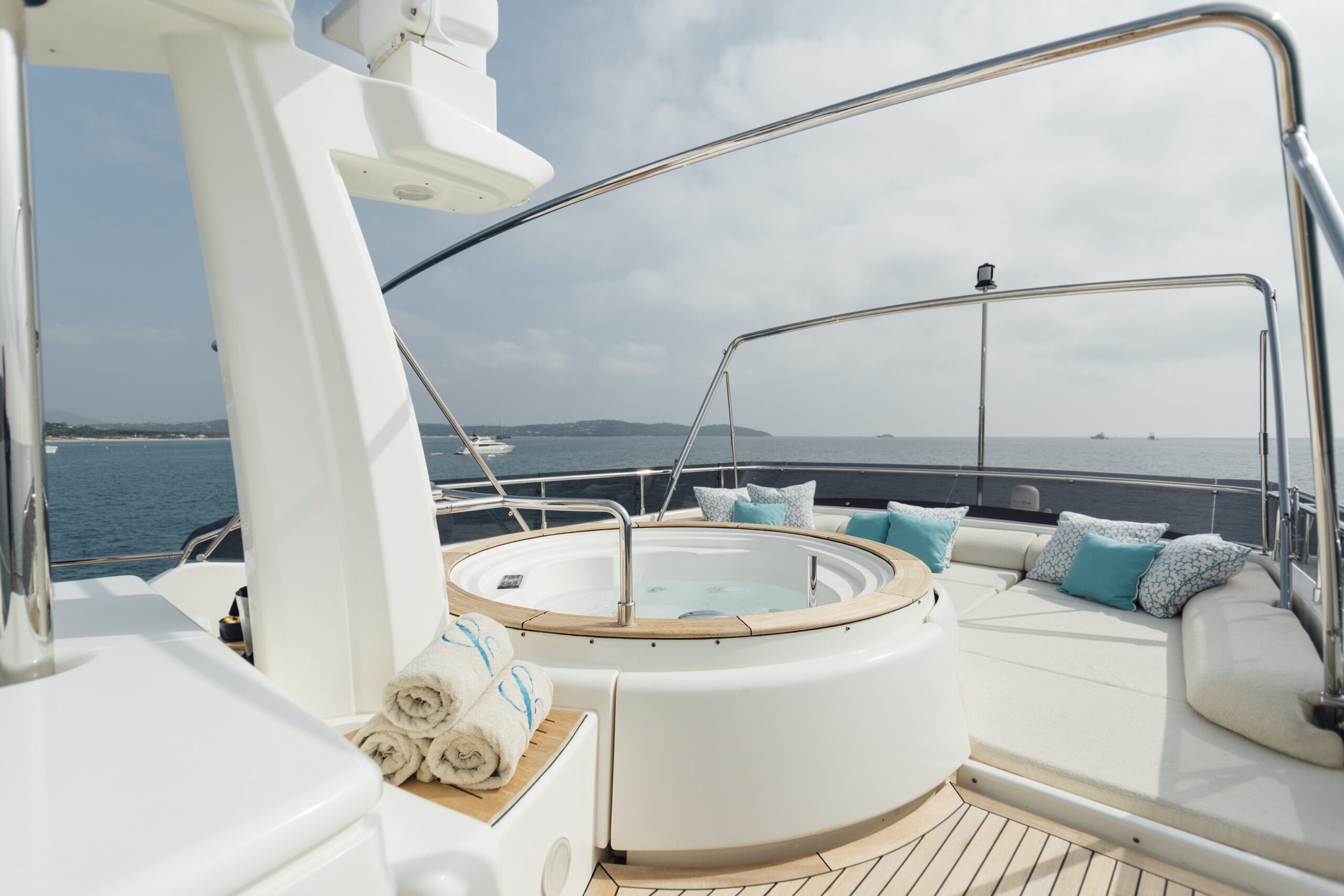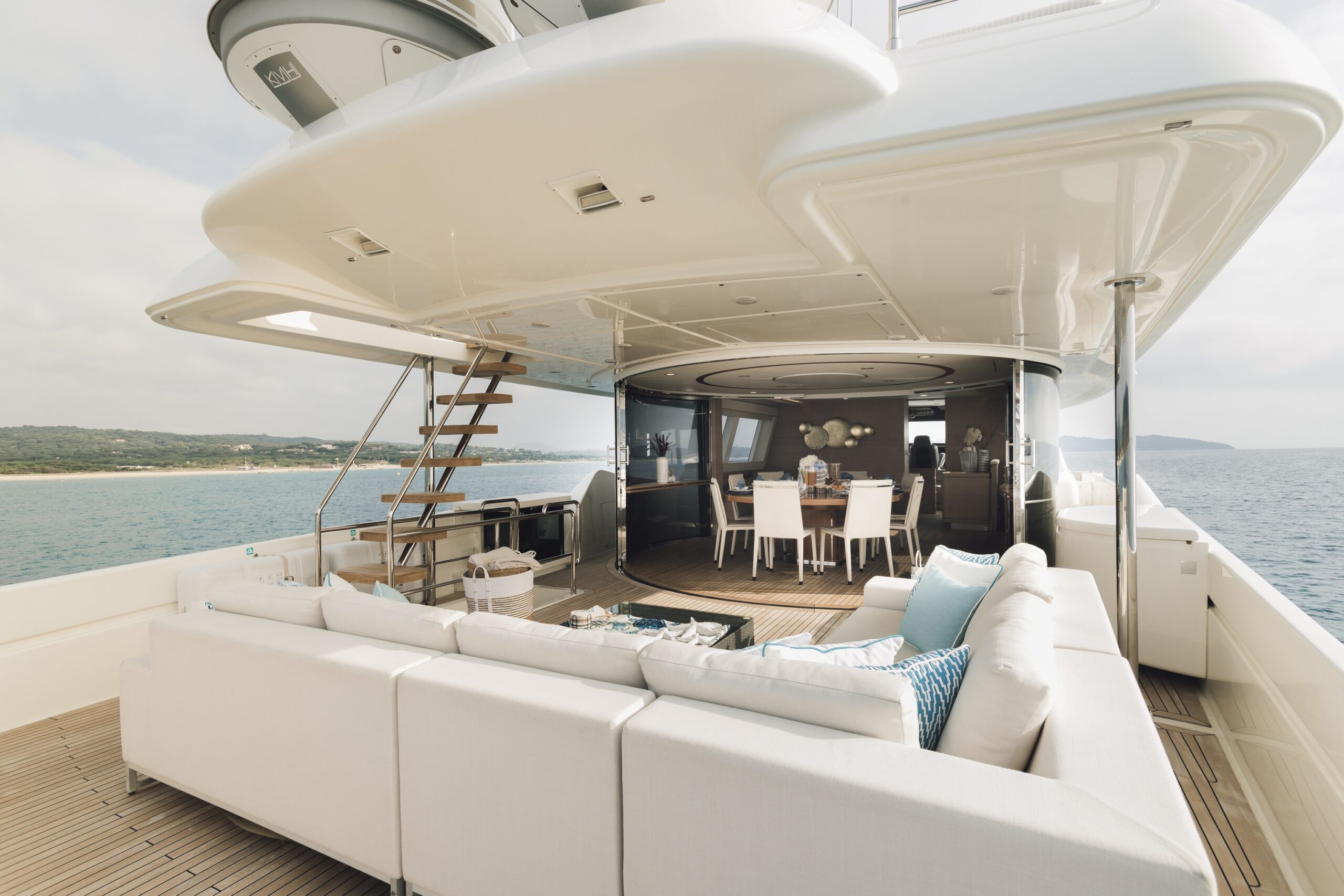Featuring a choice of al fresco lounge and dining areas across her three decks, this Navetta 33 for sale promises to maximise the outdoor lifestyle. Her highlights include two versatile aft deck lounge spaces plus a spacious sundeck for on-deck socialising.