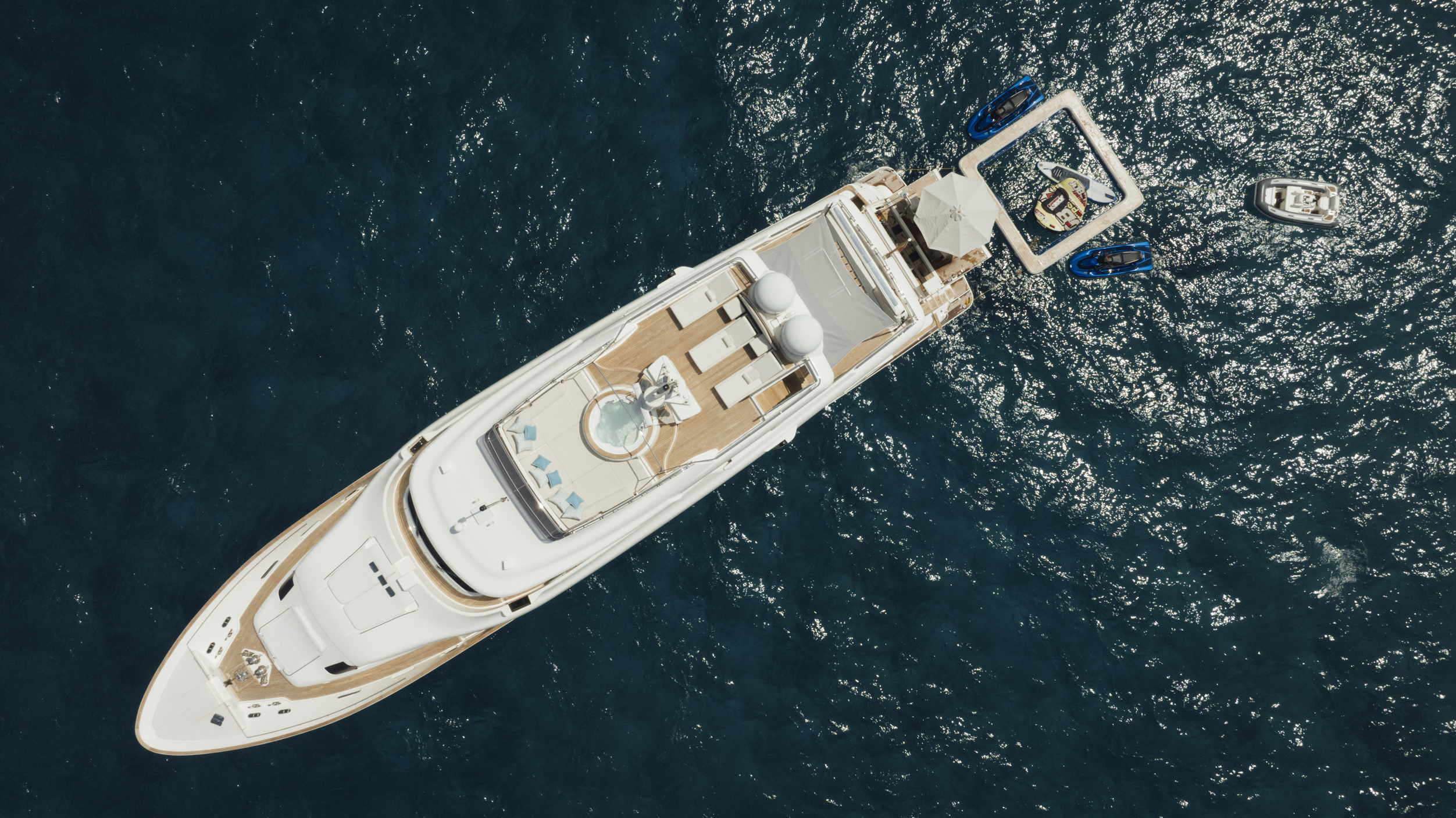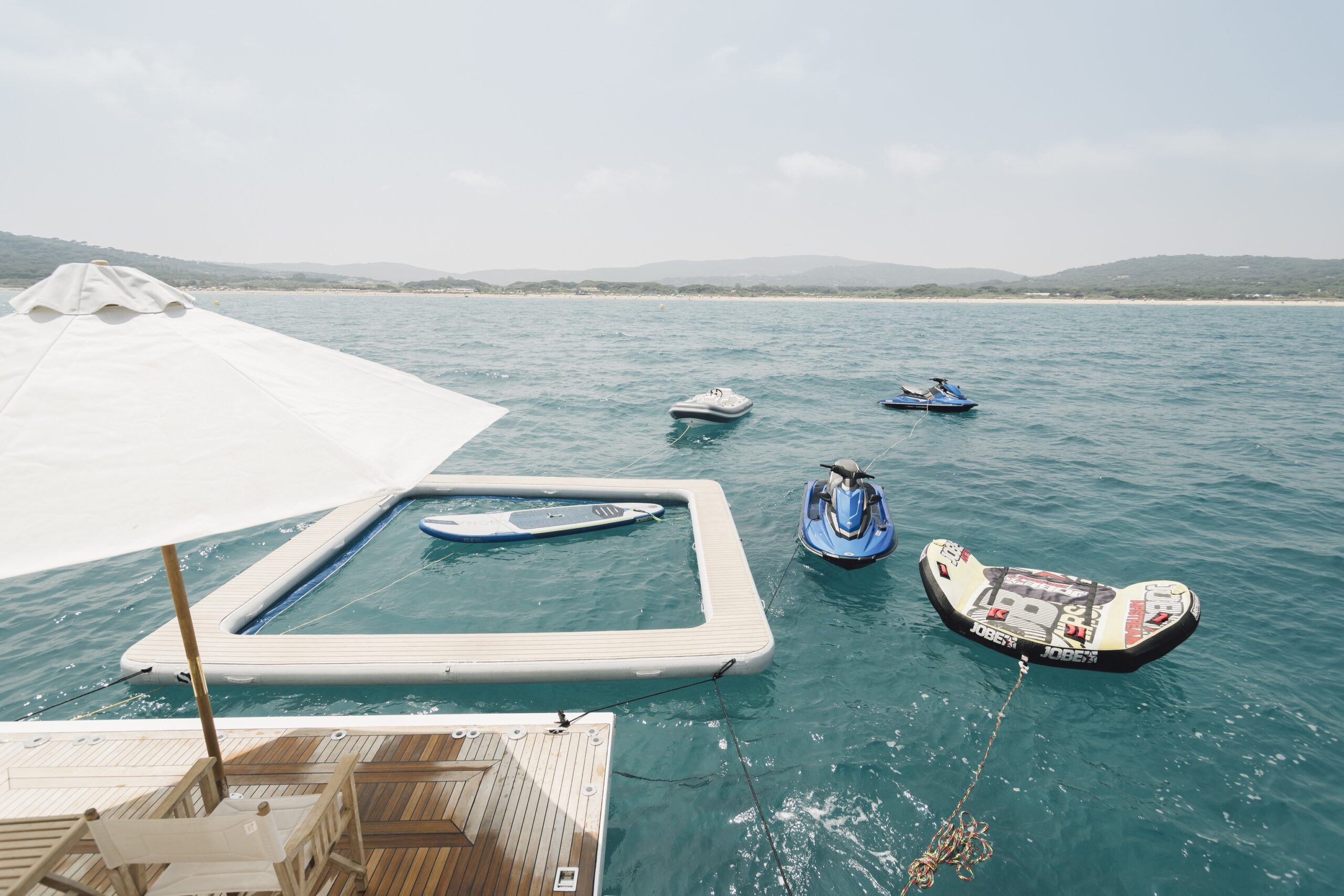 This yacht includes a jacuzzi, a stylish beach club, and various dining and relaxation areas, both indoor and alfresco. The yacht’s layout is perfect for hosting social gatherings or enjoying a peaceful retreat at sea.