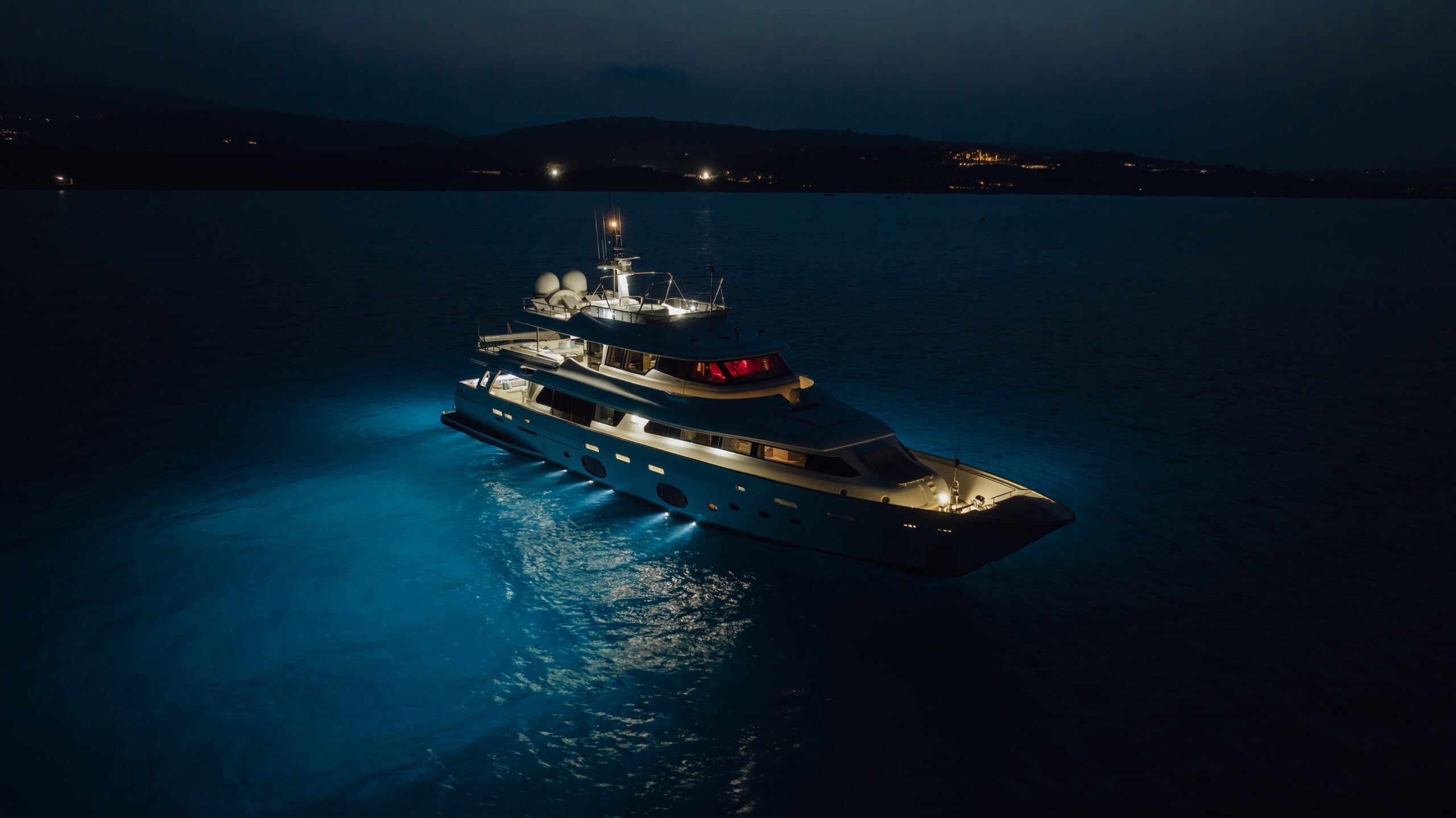 Built in GRP at Custom Line’s state-of-the-art Ancona shipyard, this elegant motor yacht effortlessly combines beauty and functionality with accommodation for up to eleven guests across her five luxurious staterooms.