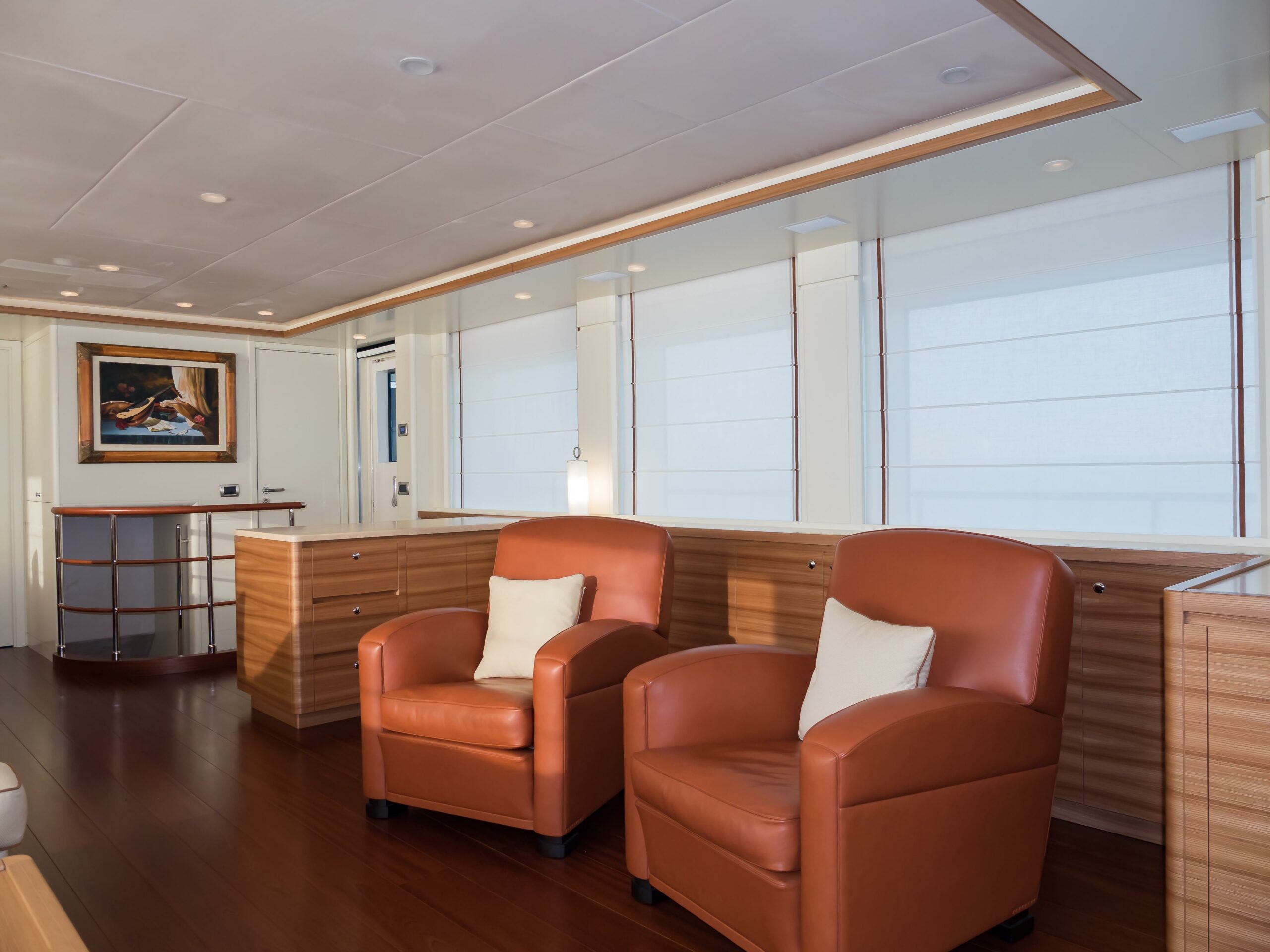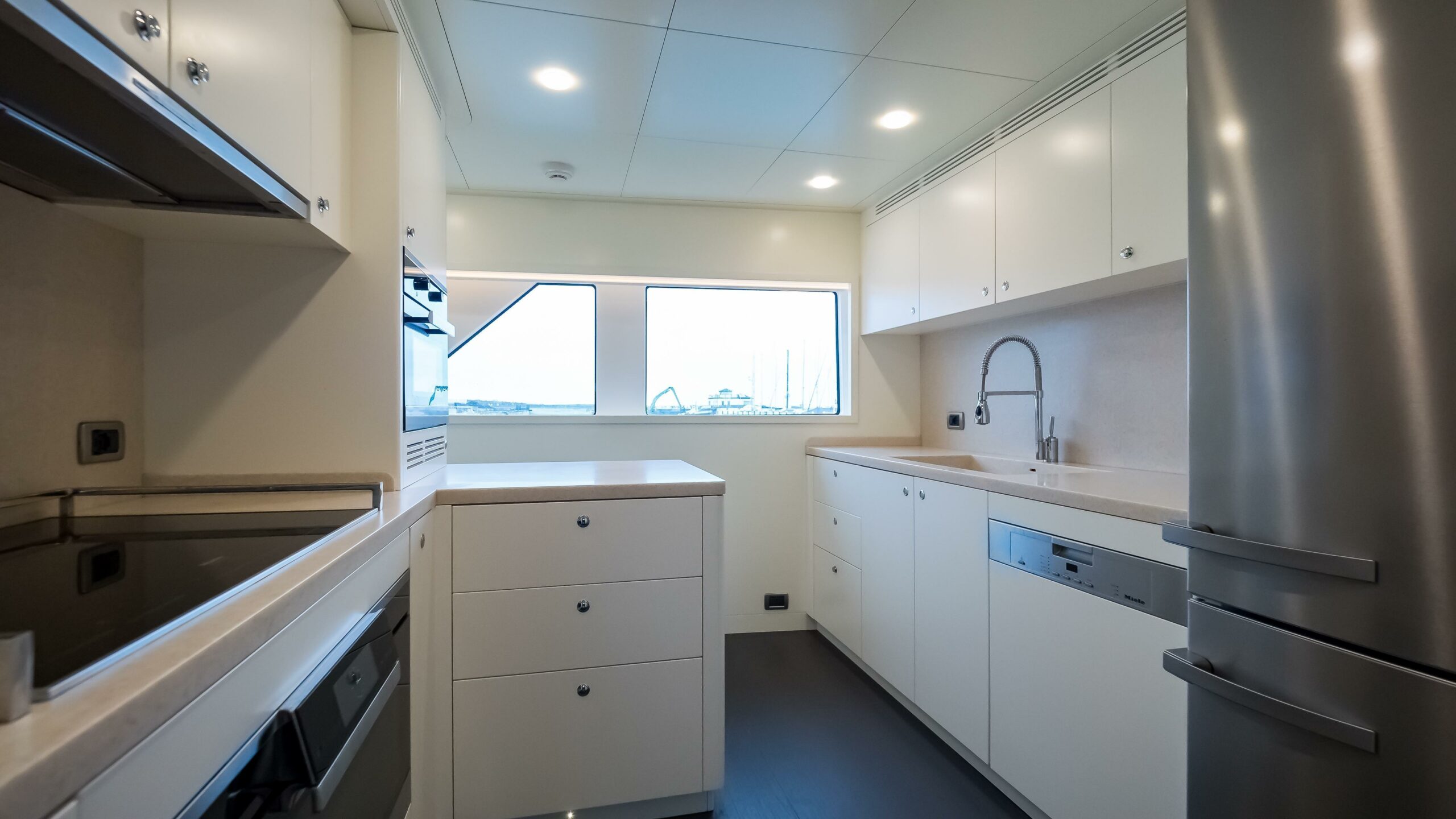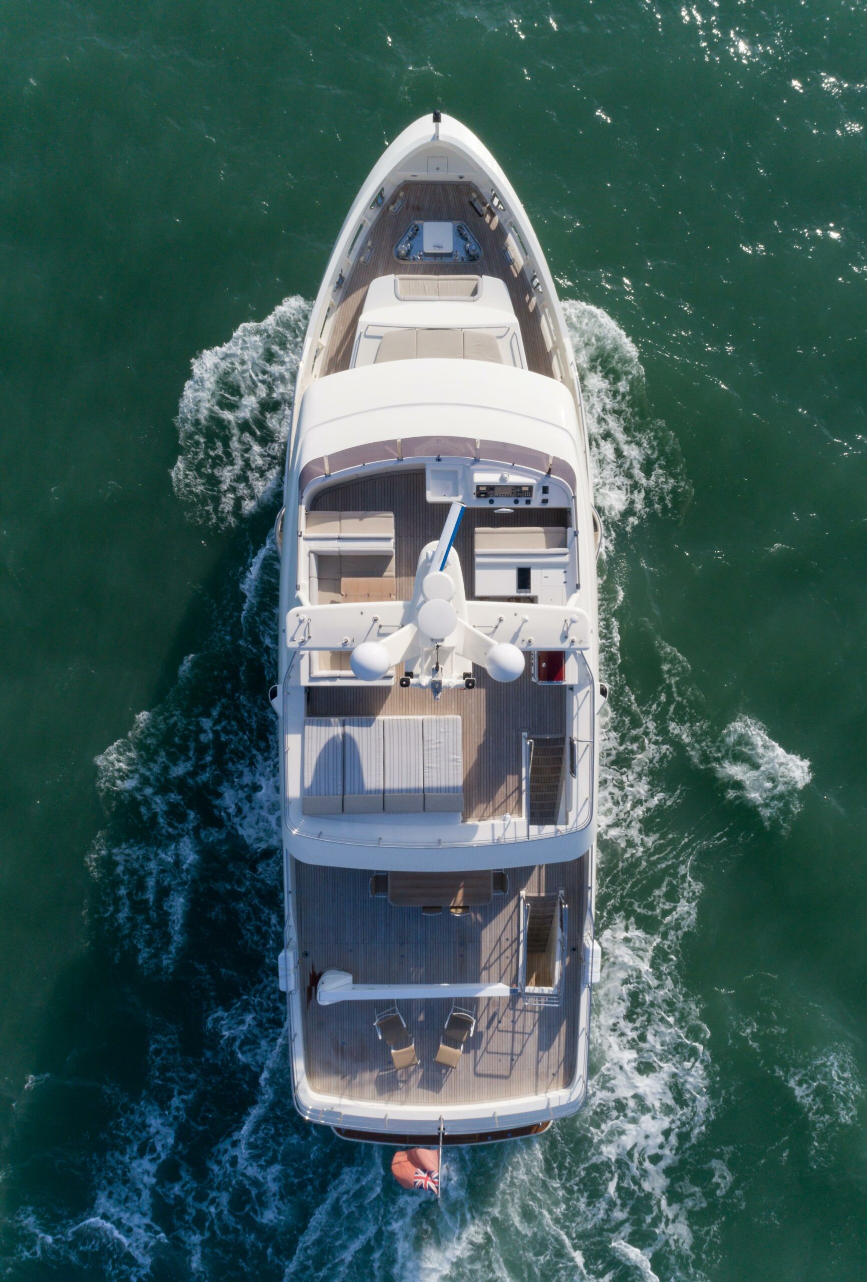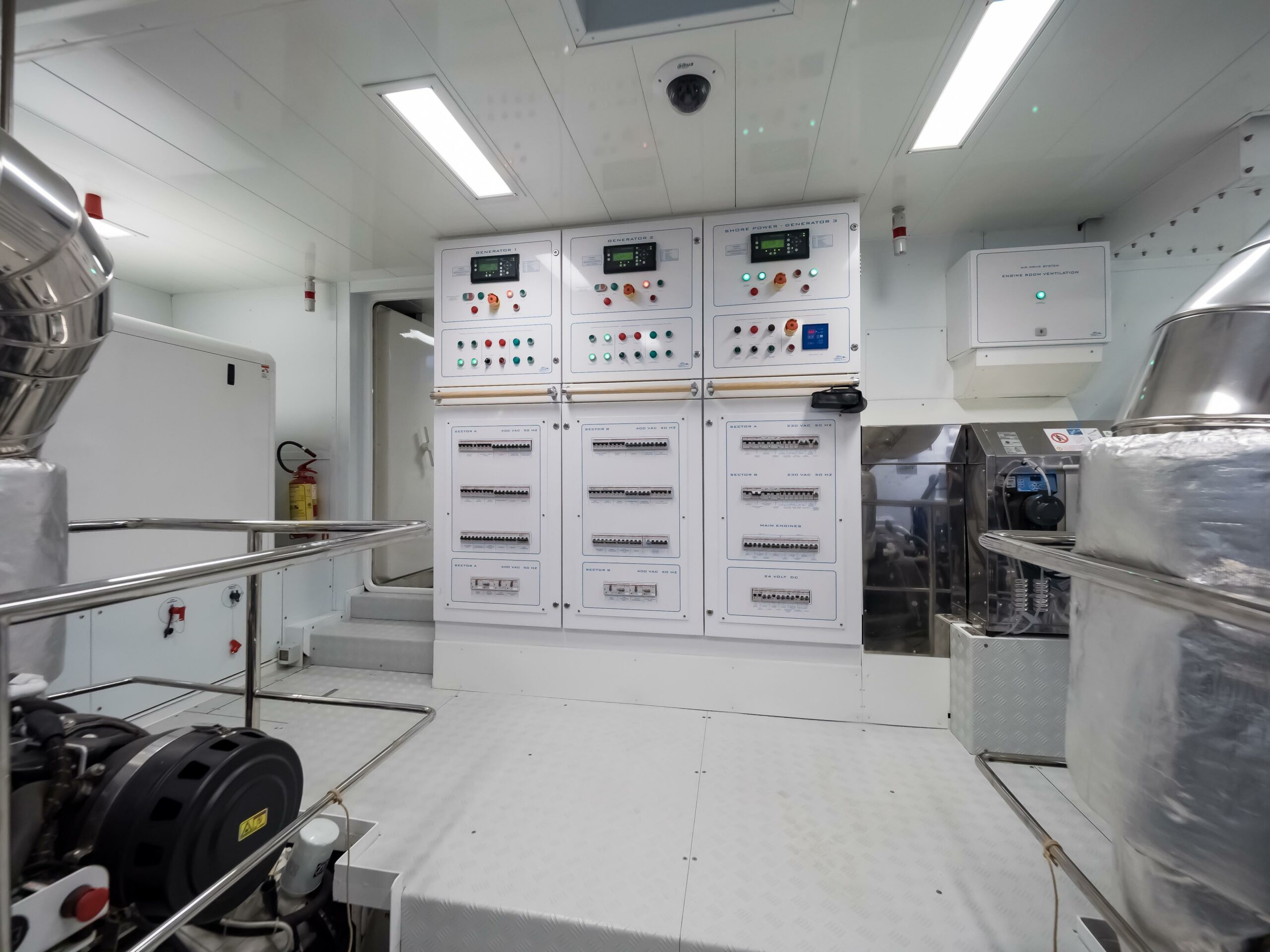 Certified under RINA Pleasure Yacht C HULL MACH Y for unrestricted navigation and flagged under the Red Ensign, STELLA DEL NORD is both MCA-compliant and VAT paid. Her technical inventory includes CMC electric zero-speed stabilisers, bow and stern thrusters, Kohler 2 x 53kW + 1 x 17.5kW generators, and an Alfa Laval MIB 303 fuel separator—all housed in an engine room designed to CDM’s overbuilt standards.