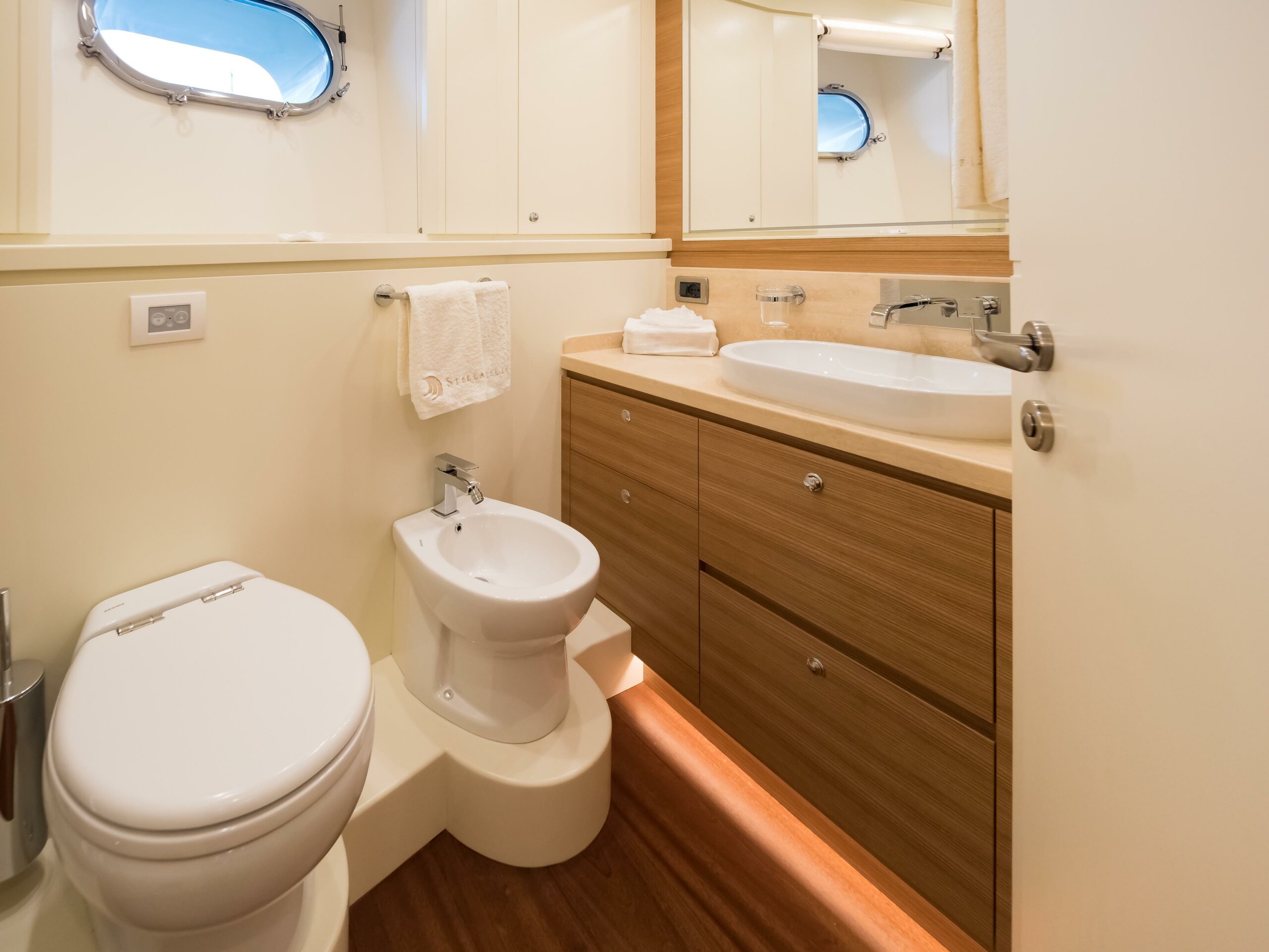 With her full-displacement steel hull, lightweight aluminium superstructure, and a carefully optimised hull form by Hydro Tec, STELLA DEL NORD offers outstanding stability, comfort, and seakeeping. Powered by twin Caterpillar C12 287 kW (385 hp) engines, she achieves a top speed of 11.5 knots and cruises efficiently at 10 knots, delivering an exceptional range of 6,700 nautical miles at 8.5 knots—making her ideal for Atlantic crossings or extended Mediterranean cruising.