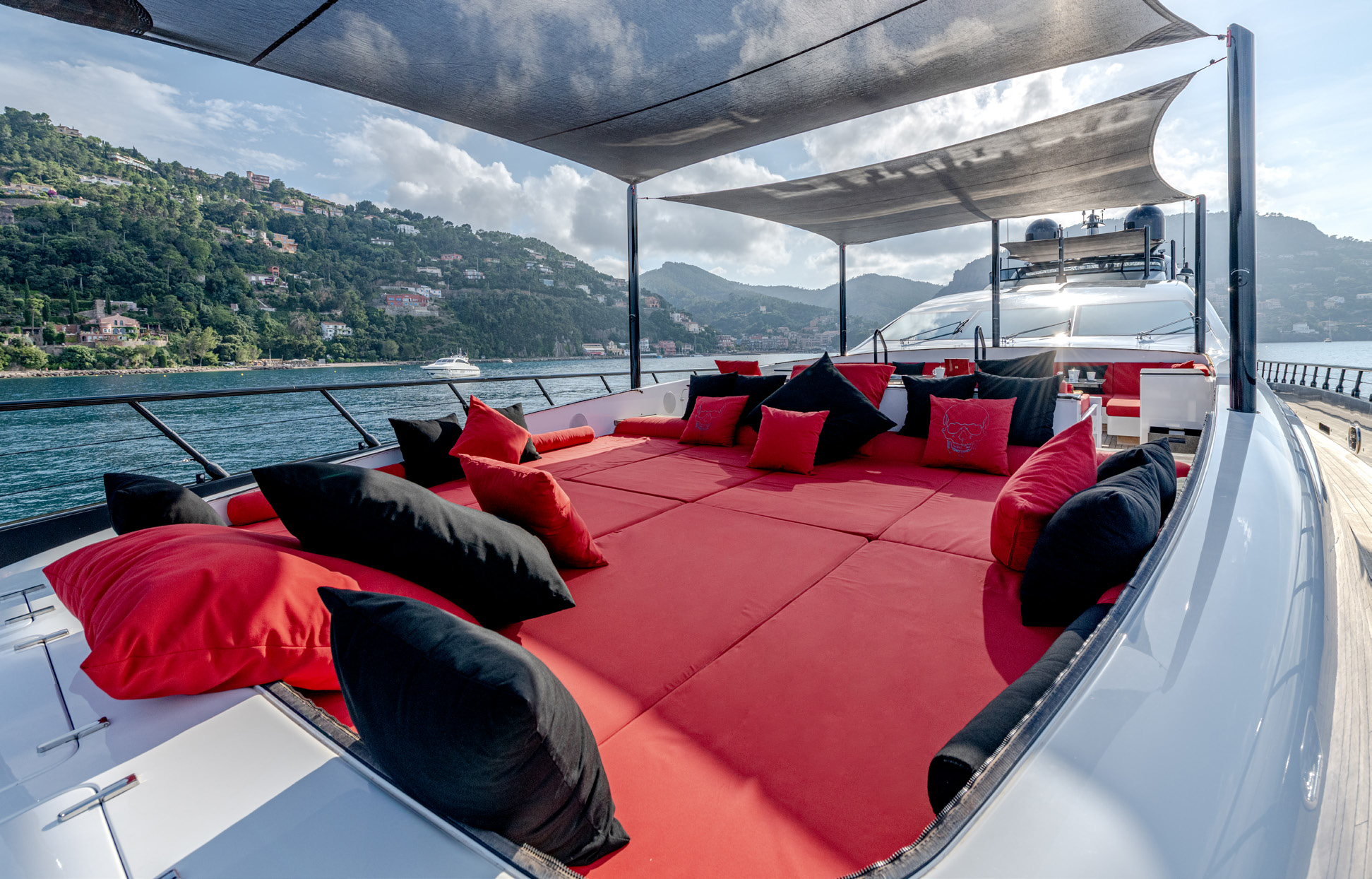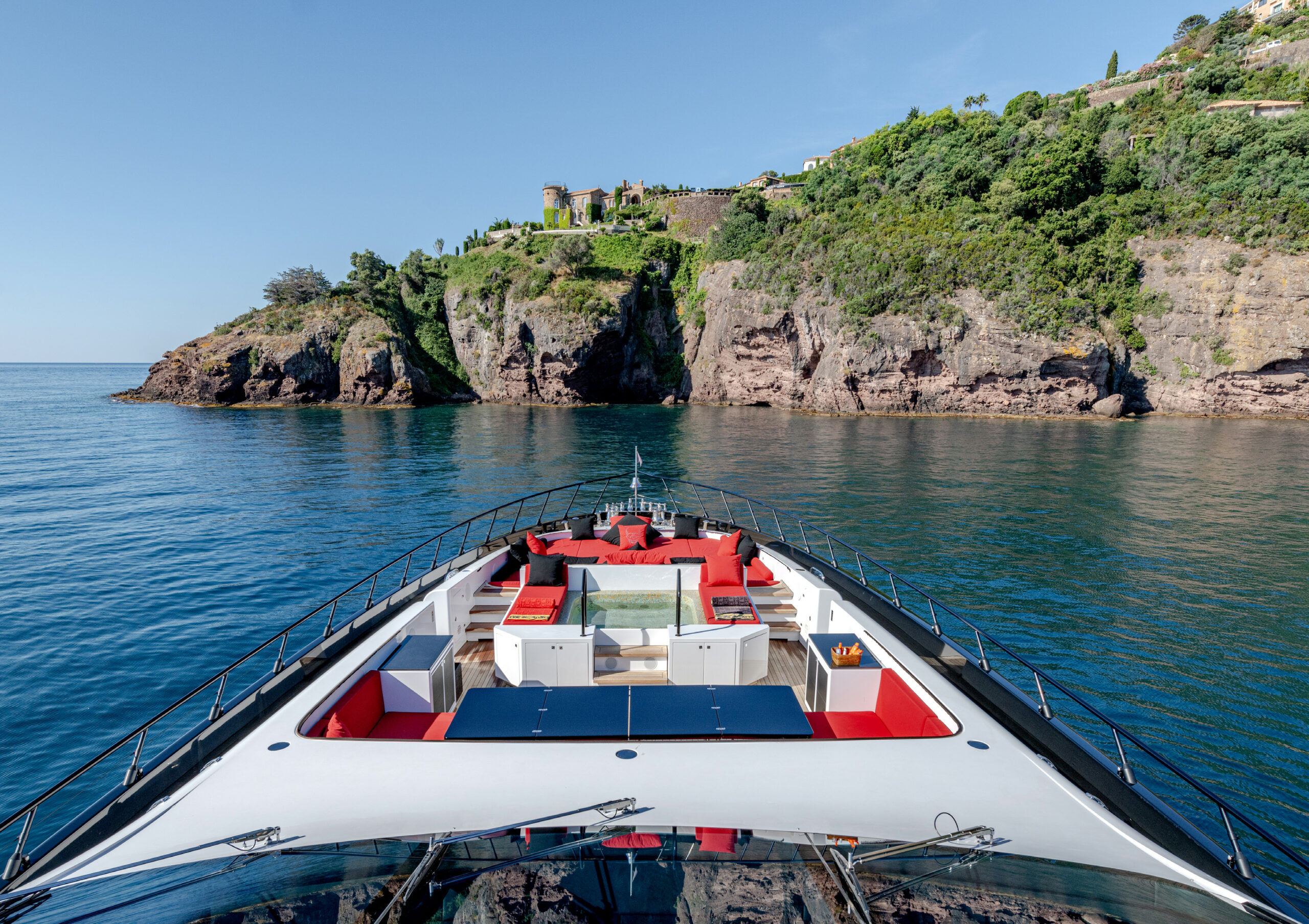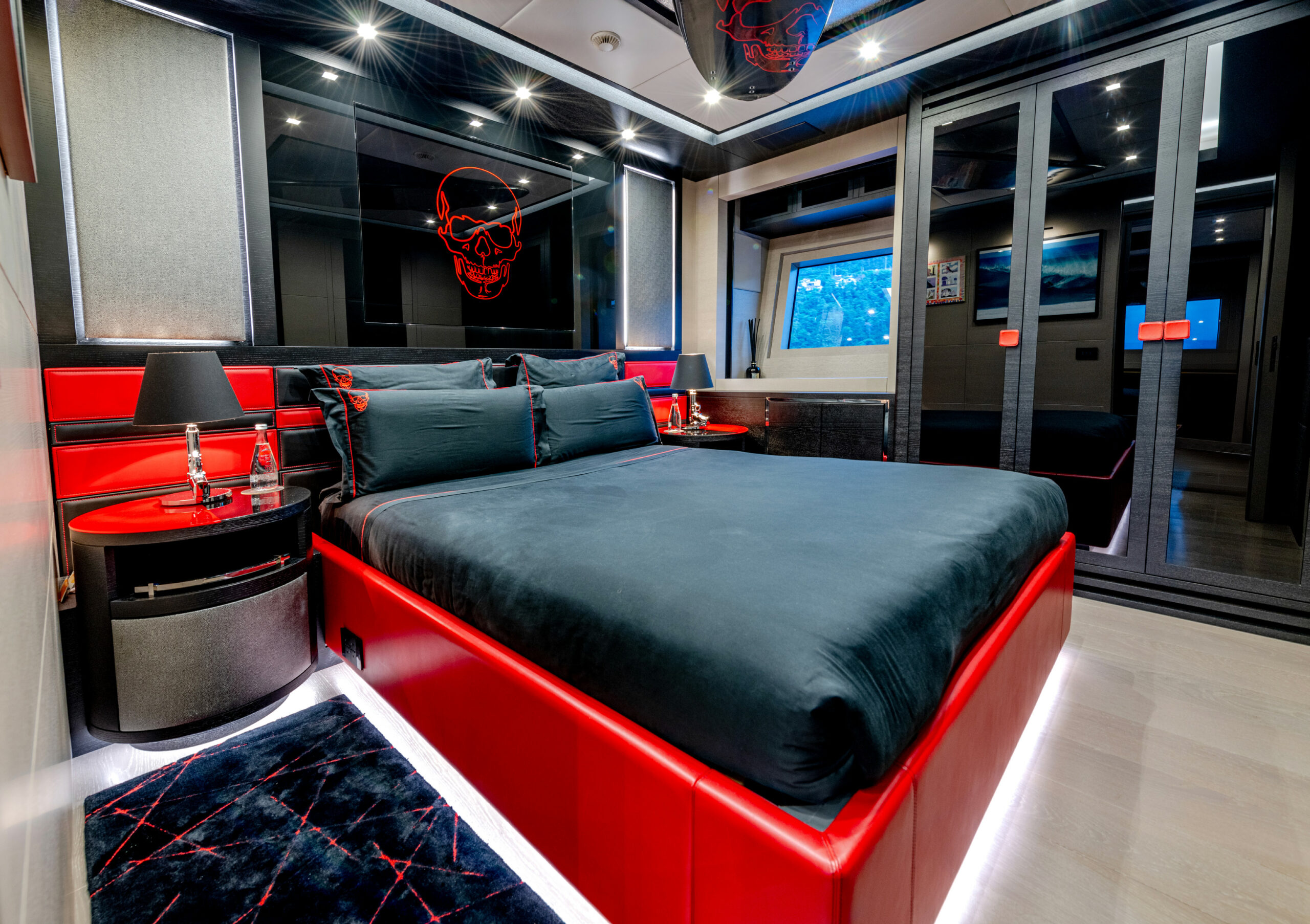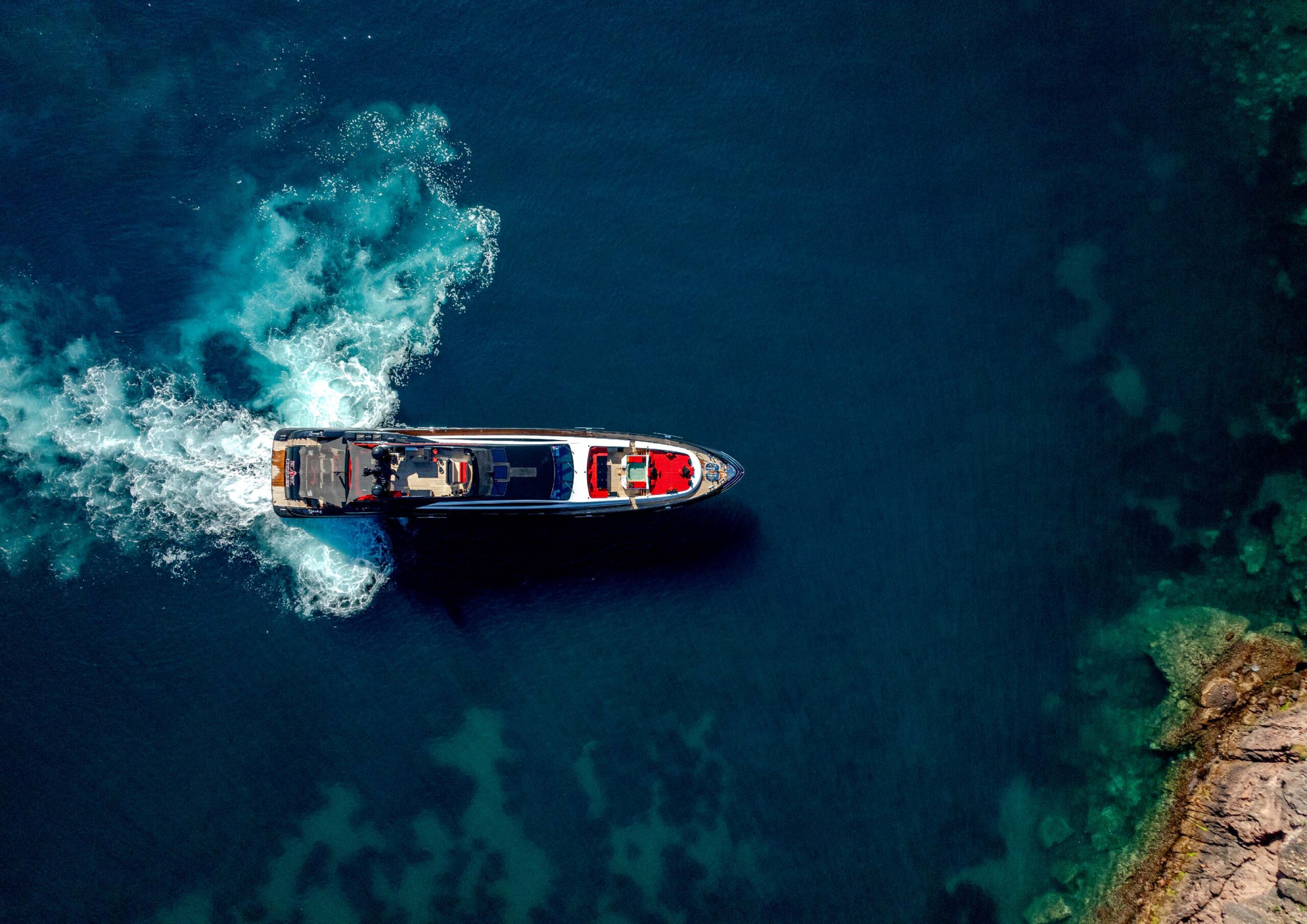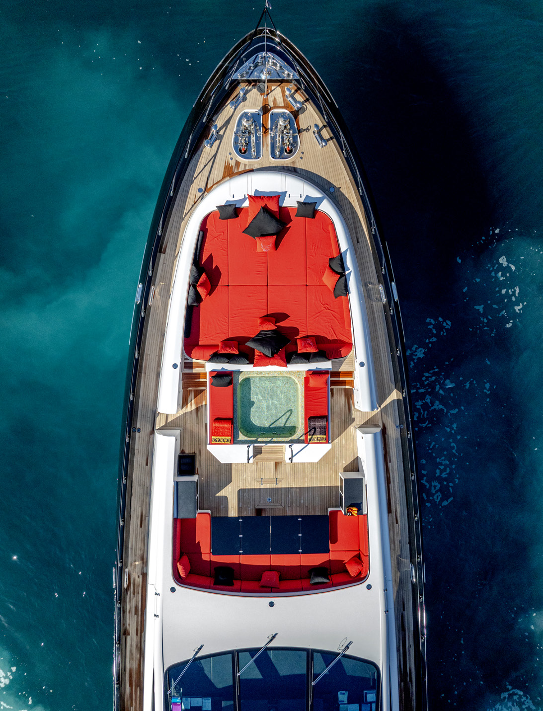 BLACK LEGEND comfortably accommodates up to 8 guests in 4 luxurious cabins, including a full-beam Owner’s suite, a VIP cabin, and two double guest cabins. The cinema room, gym, and expansive sun deck, featuring a jacuzzi, bar, and custom DJ booth, make her ideal for both relaxation and entertainment. A professional crew of 9 ensures smooth and impeccable service at all times.