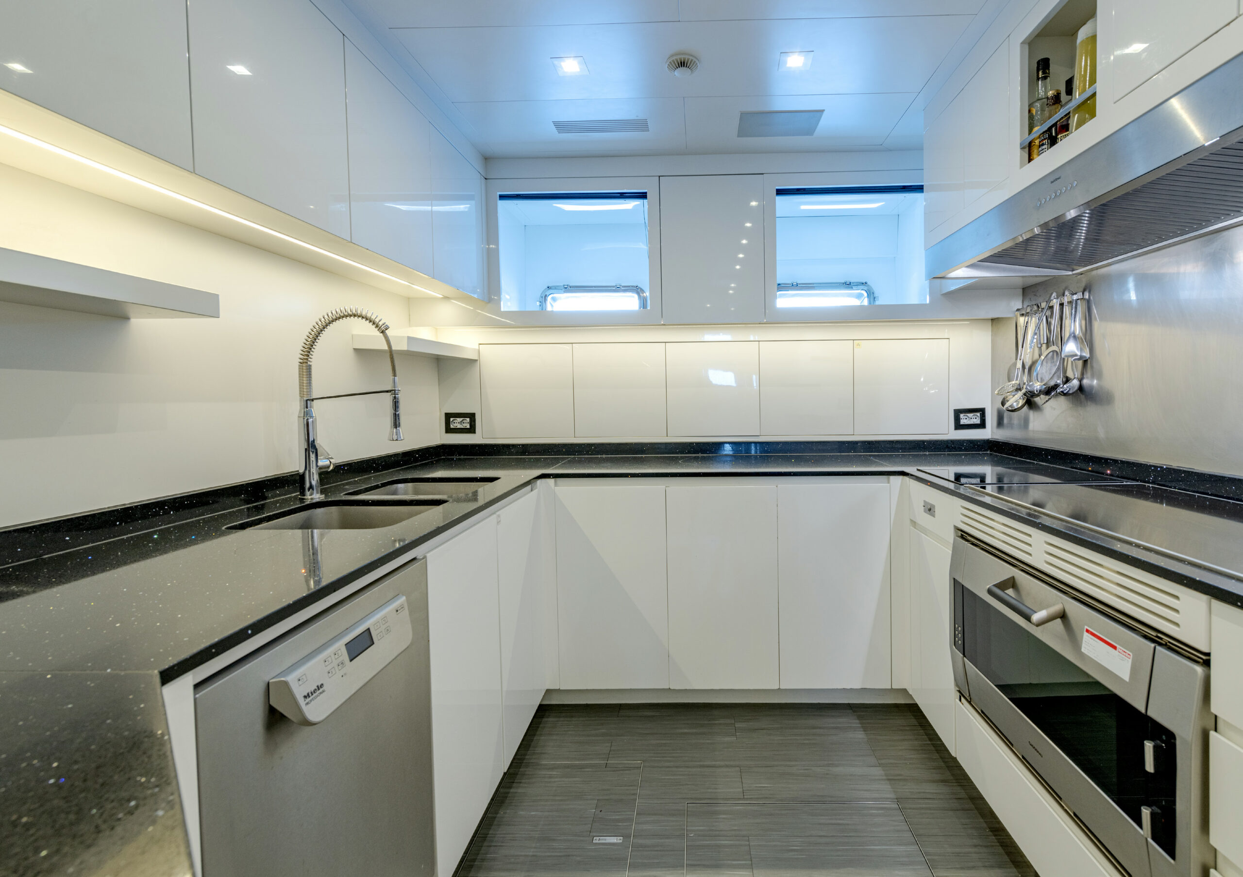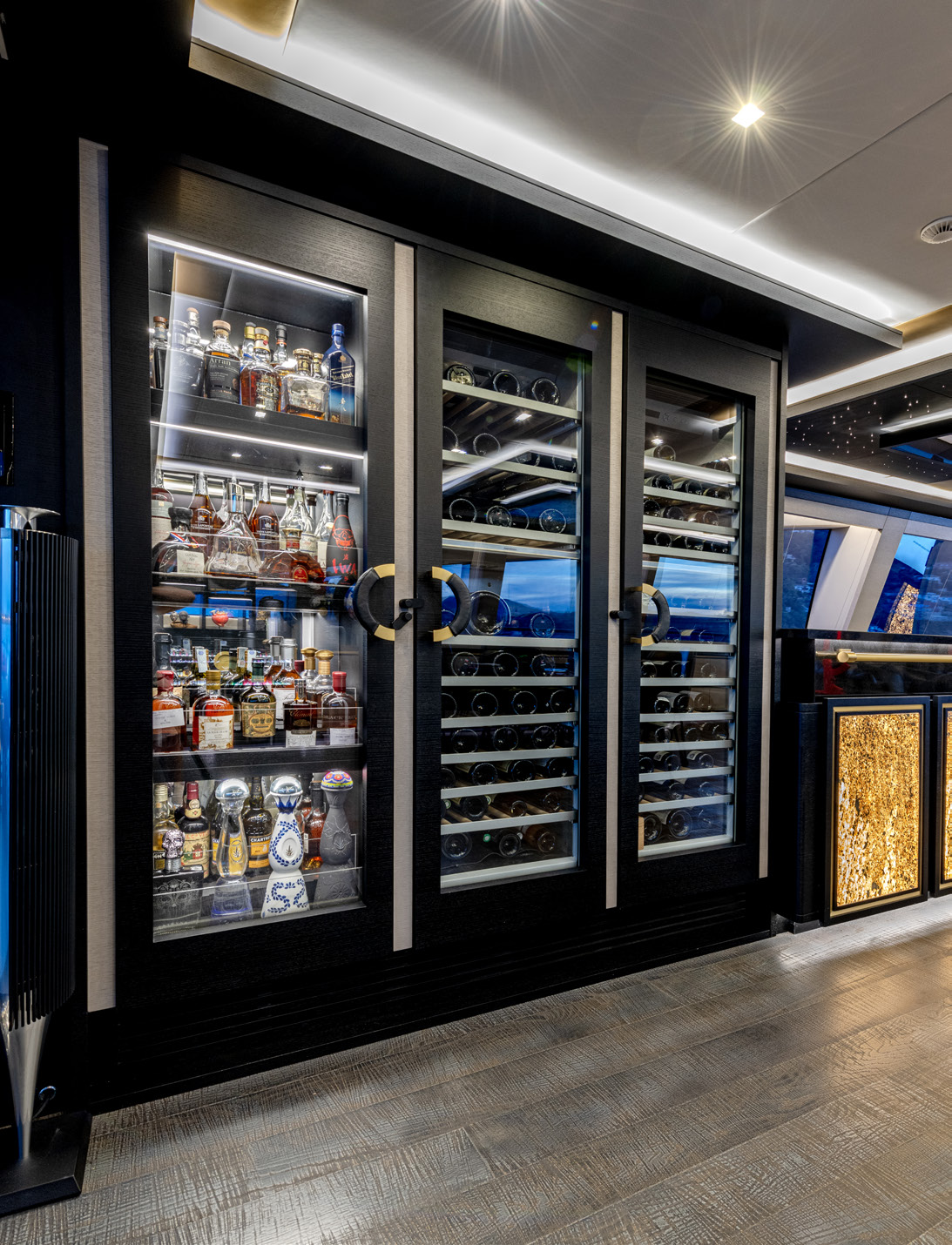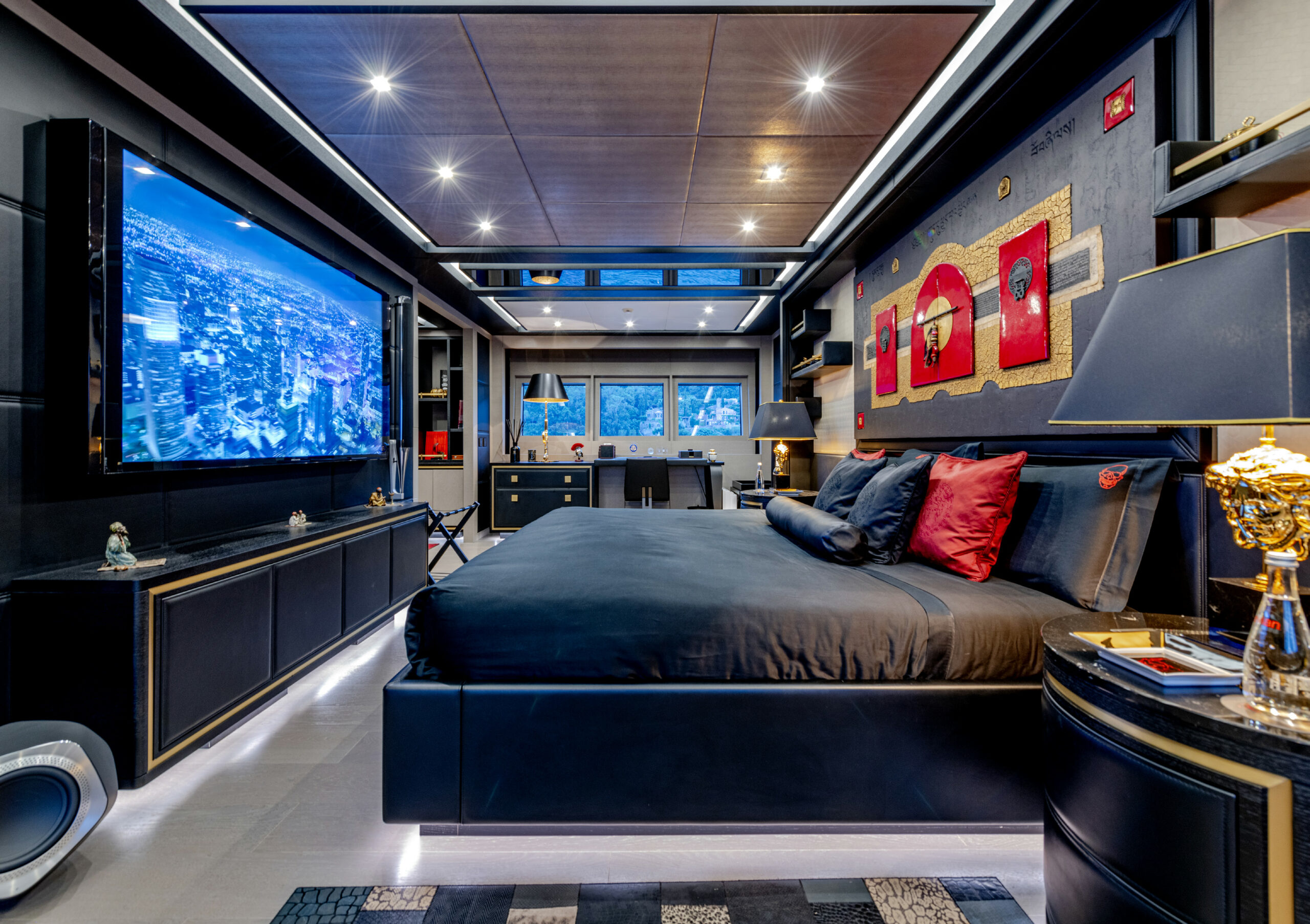 A true powerhouse on the water, BLACK LEGEND is equipped with four MTU 2600 HP engines, delivering a blistering top speed of 35 knots and an economical cruising speed of 12 knots with two engines online. With a range of 800 nautical miles at cruising speed, she is equally suited for exhilarating speed and long-distance cruising. The yacht’s advanced engineering includes zero-speed and underway gyro stabilizers for unparalleled comfort.