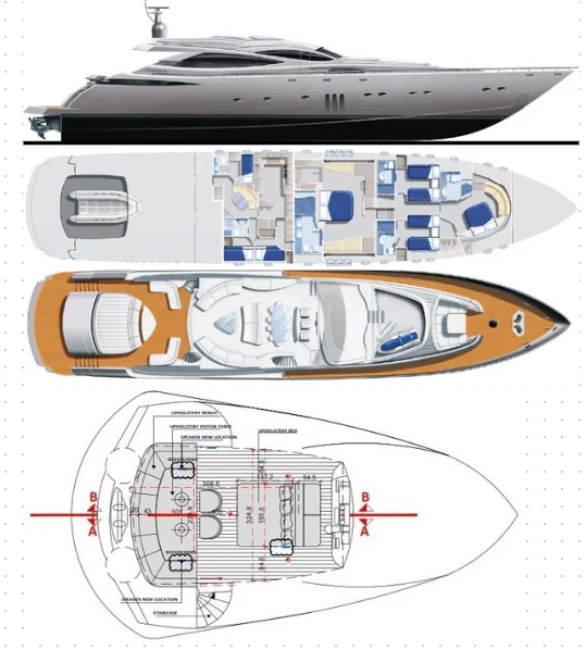 The 115’s sleek, aerodynamic profile is not just for show; it delivers an exhilarating ride powered by state-of-the-art propulsion systems. Inside, the yacht’s meticulously crafted interiors, adorned with sophisticated Italian decor, provide an atmosphere of refined luxury.