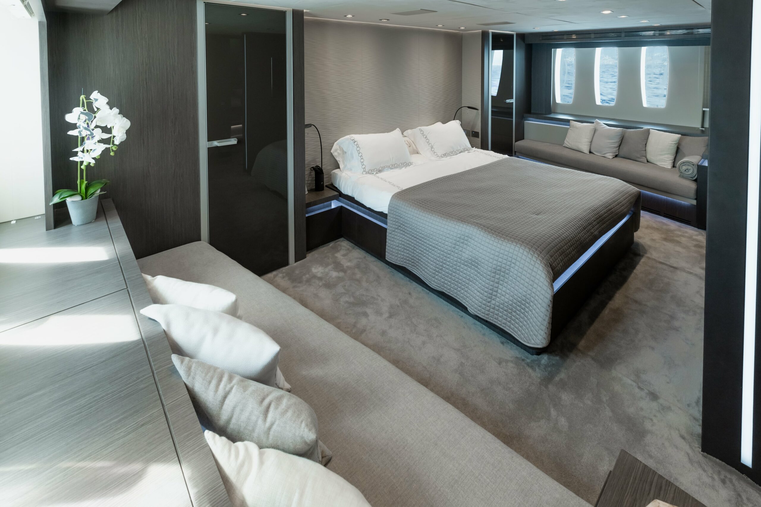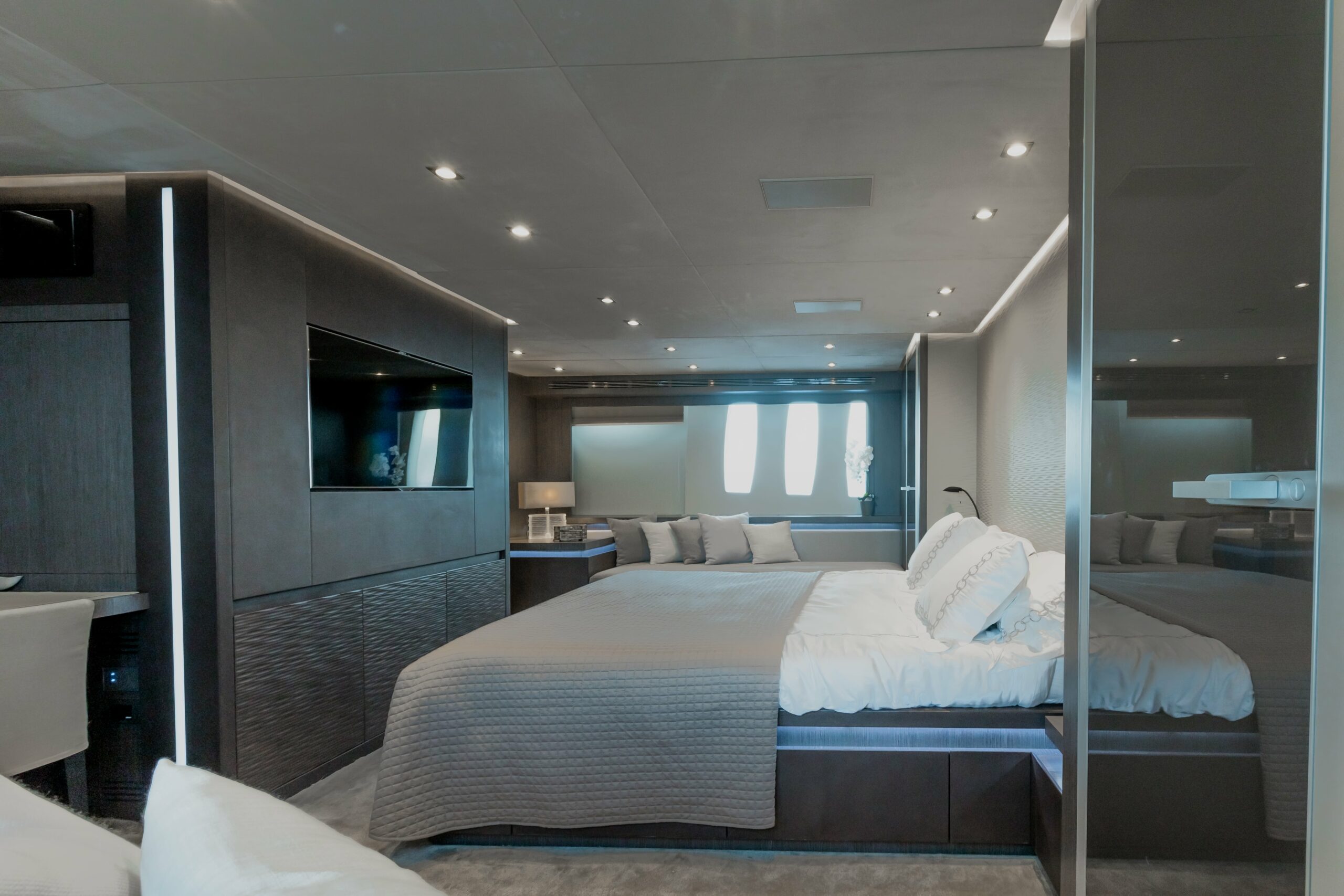 The Pershing 115 is designed to accommodate up to 8 guests across multiple luxurious cabins. Each cabin is crafted to offer the utmost comfort, with high-end finishes and ample space, ensuring that every guest enjoys a private and restful experience while aboard.