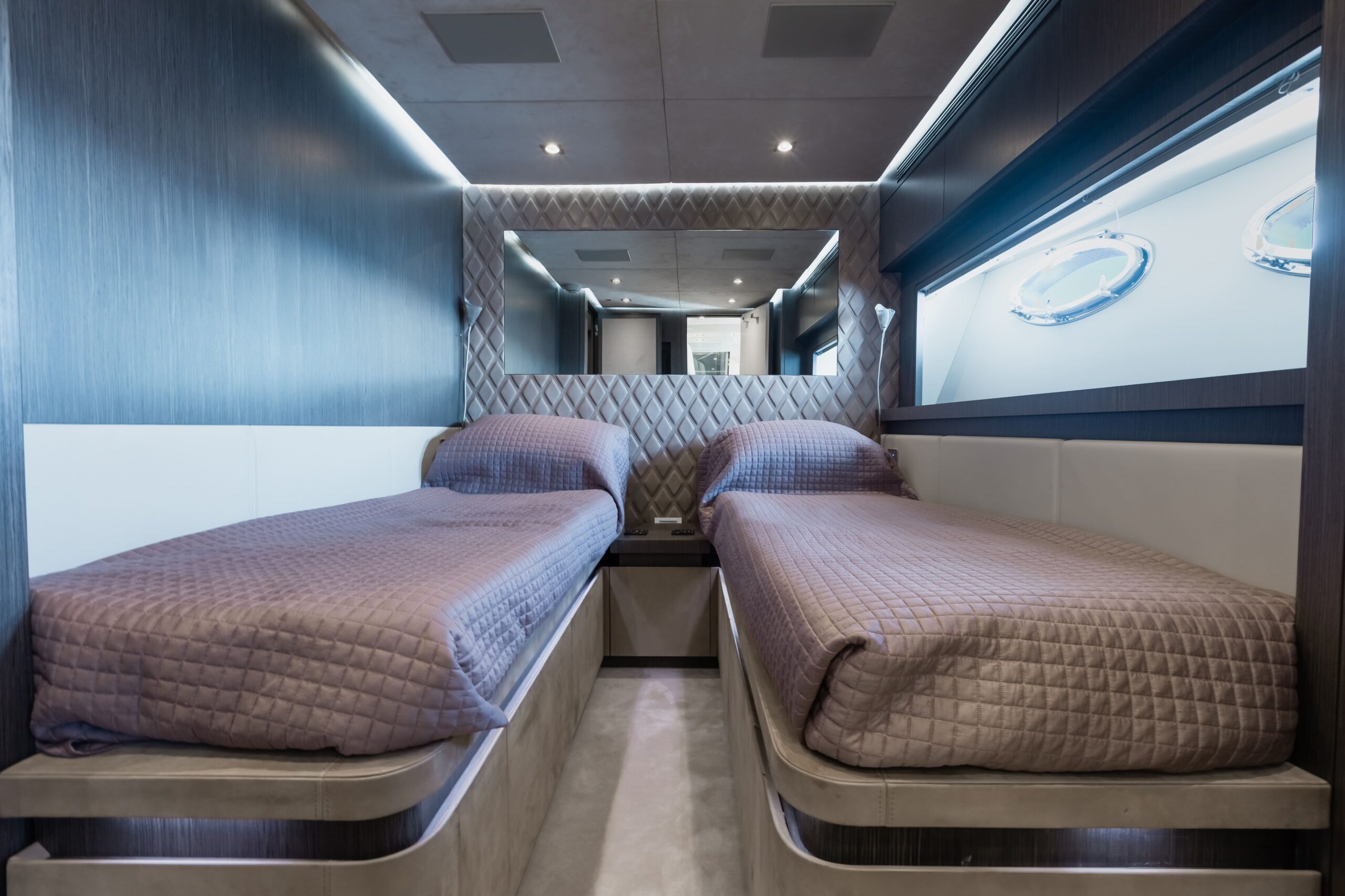 - VIP Cabin forward with walk in wardrobe and two twin cabins for total guest accommodation of 8