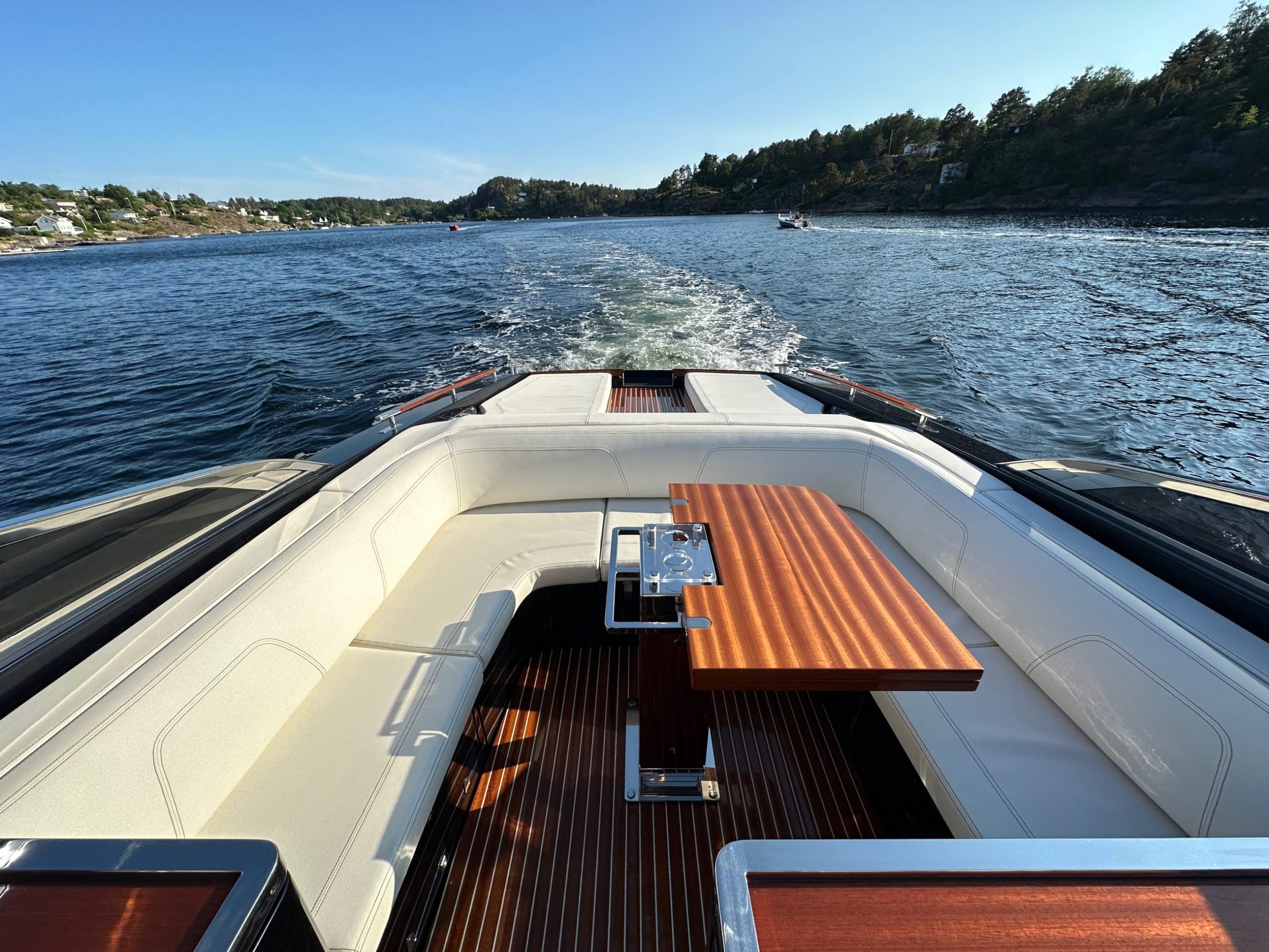 Powered by twin Volvo Penta D6 engines, she reaches speeds of around 40 knots and cruises comfortably at approximately 31 knots. With a range of nearly 300 nautical miles, she is perfectly suited to fast and stylish coastal passages.