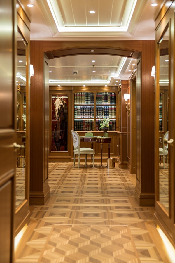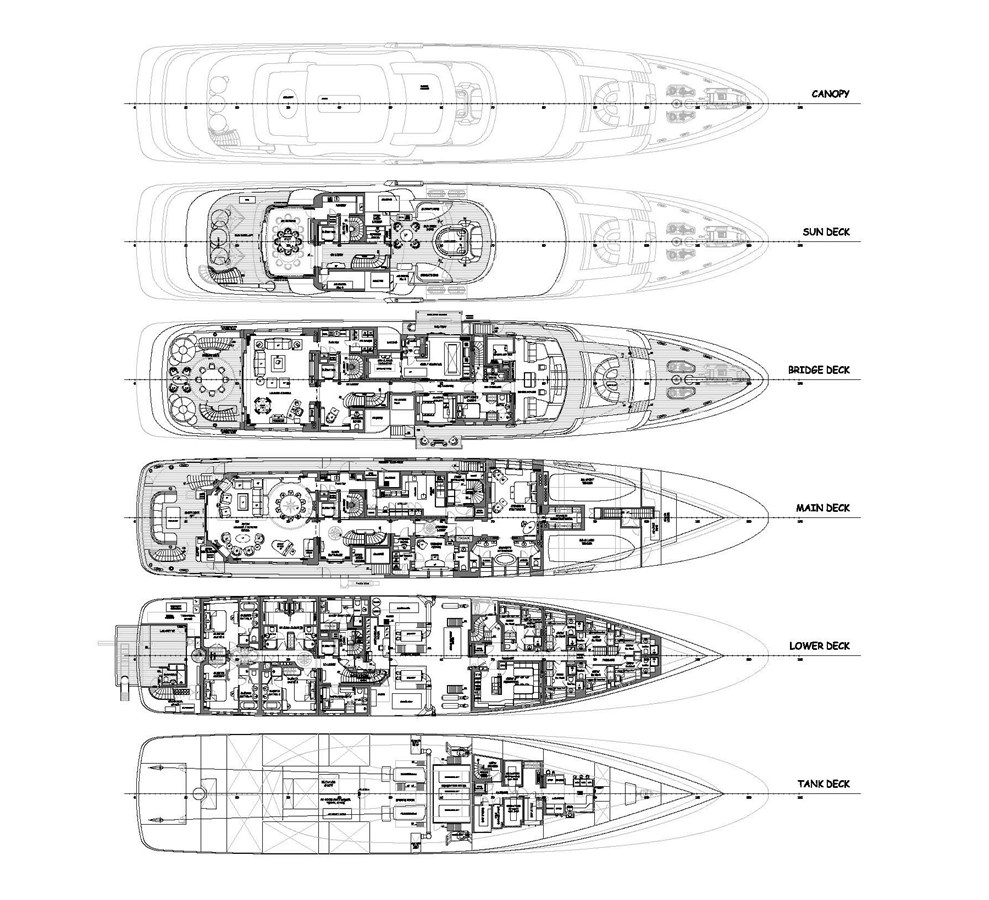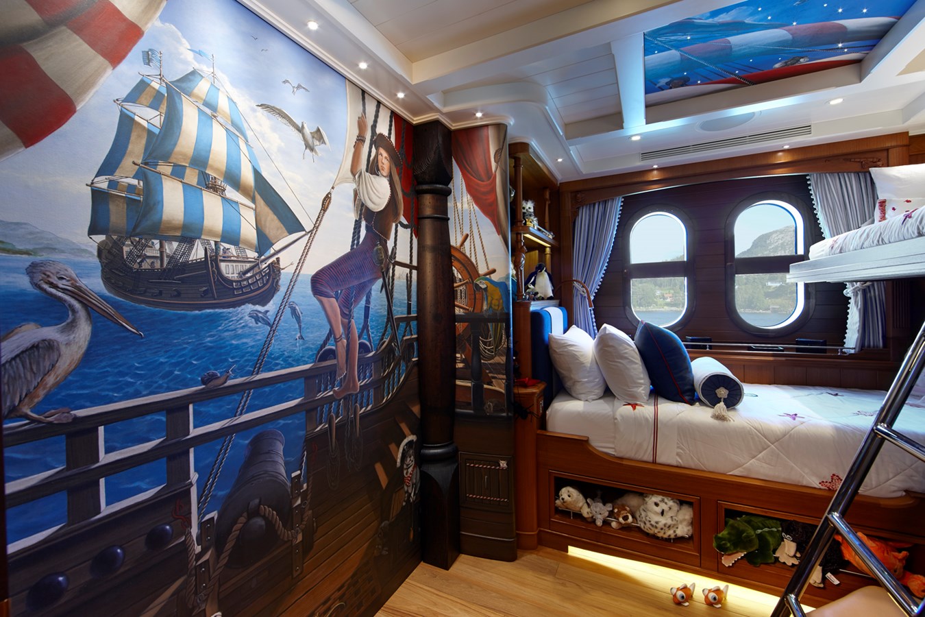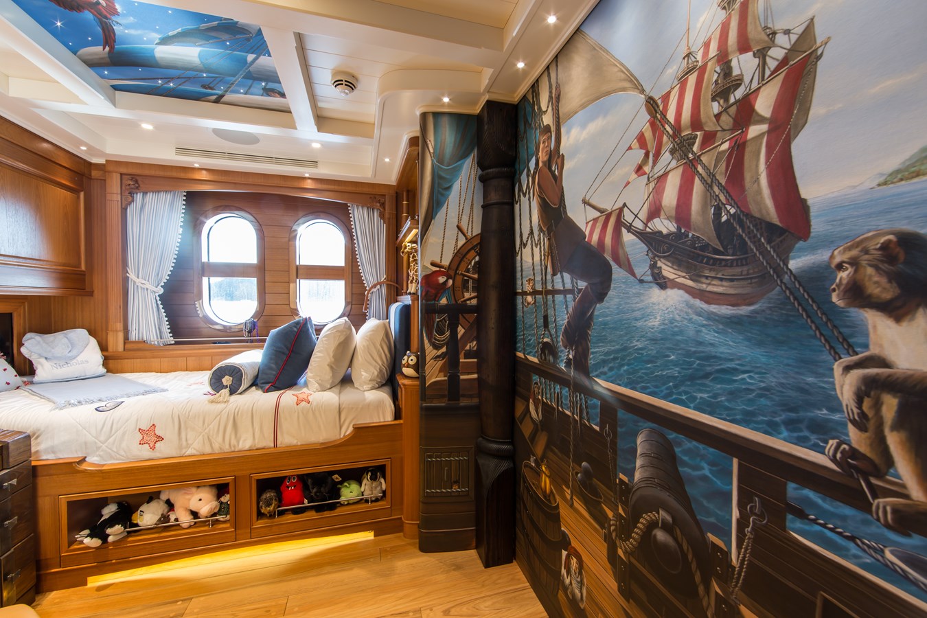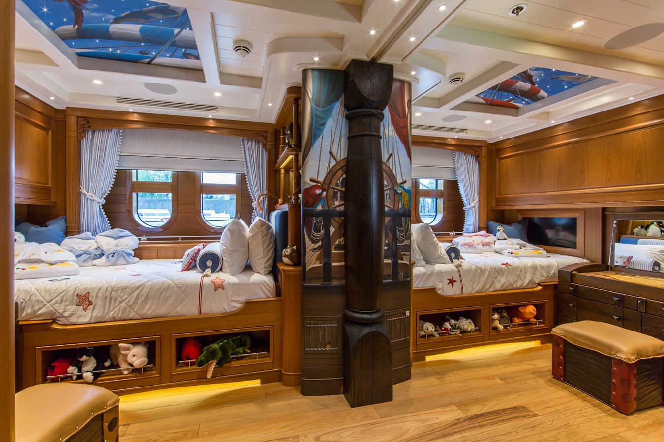The superyacht offers several staterooms, each designed with meticulous attention to detail, providing a comfortable and luxurious retreat for guests. The master suite is particularly noteworthy, offering unrivaled opulence and privacy, complete with a private study, walk-in wardrobes, and an en-suite bathroom.