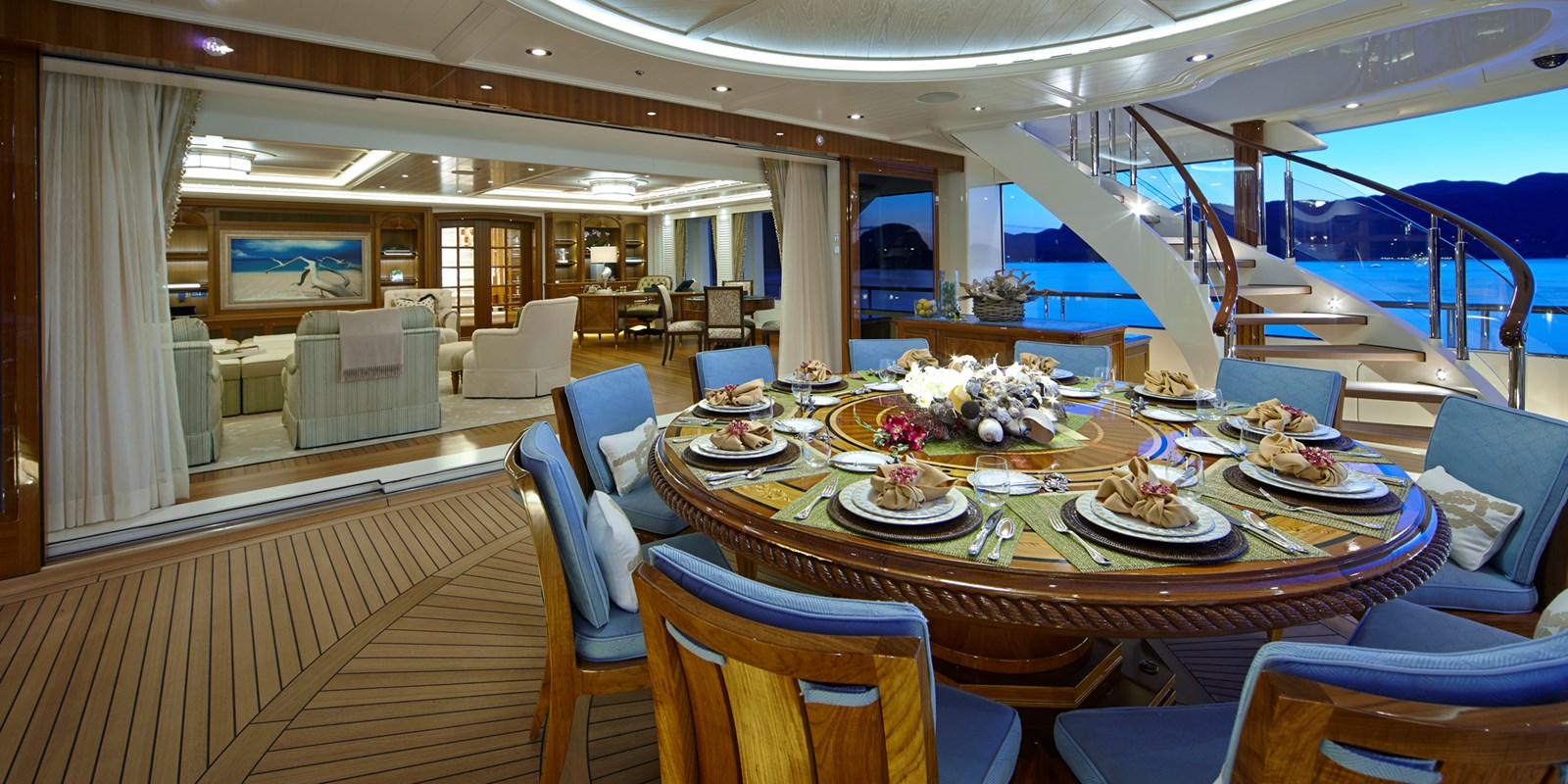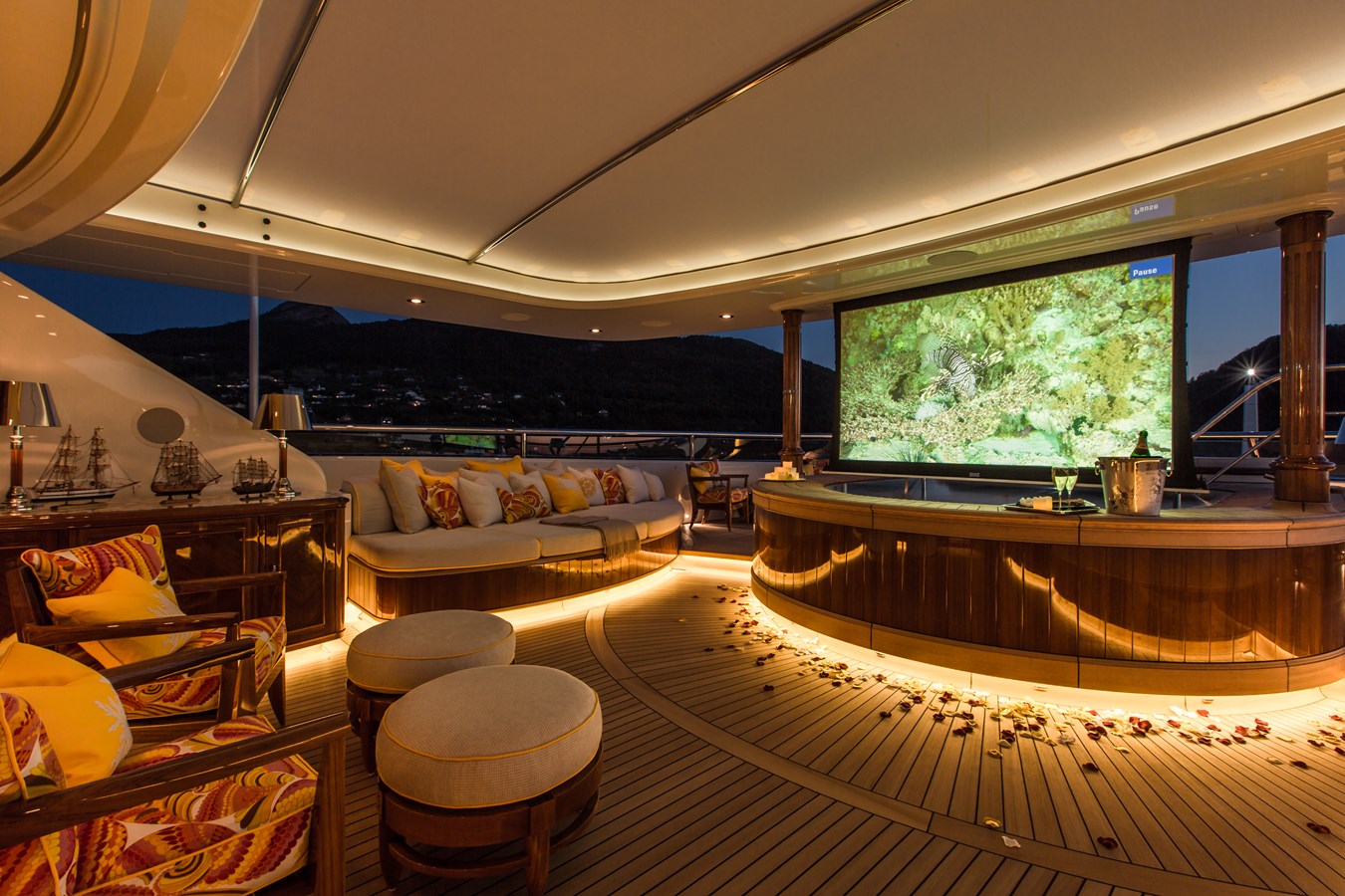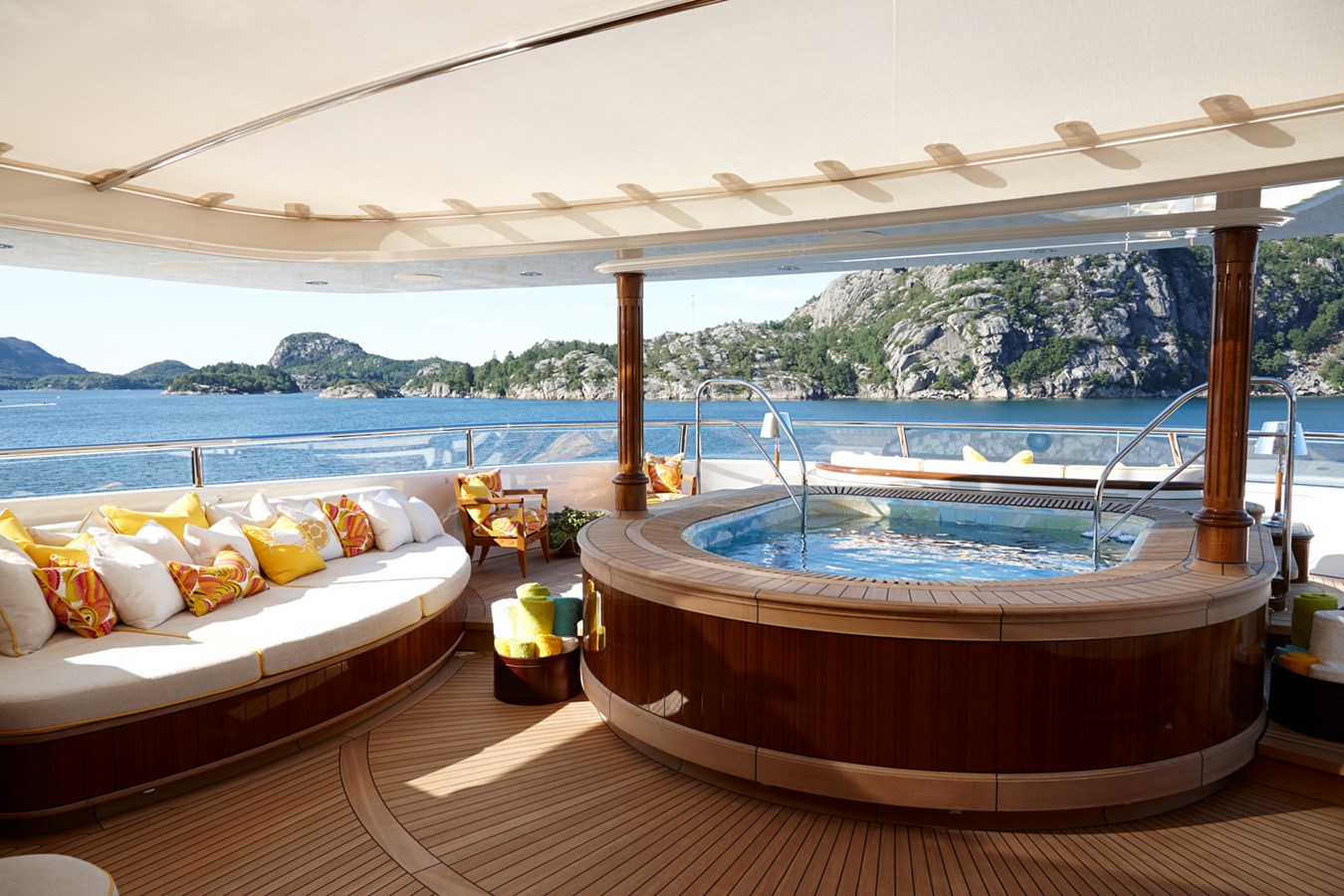 The exterior of SEA OWL is a testament to Feadship's iconic design language. Its streamlined silhouette, coupled with a sleek hull, creates an aura of elegance and power. The expansive deck spaces offer an ideal setting for relaxation and entertainment, with amenities such as a lavish outdoor dining area, a Jacuzzi, and an array of sunbathing spots. The yacht's striking dark green hull is a standout feature, lending it a unique and captivating aesthetic that distinguishes it in any harbor.