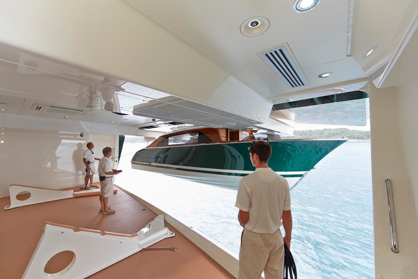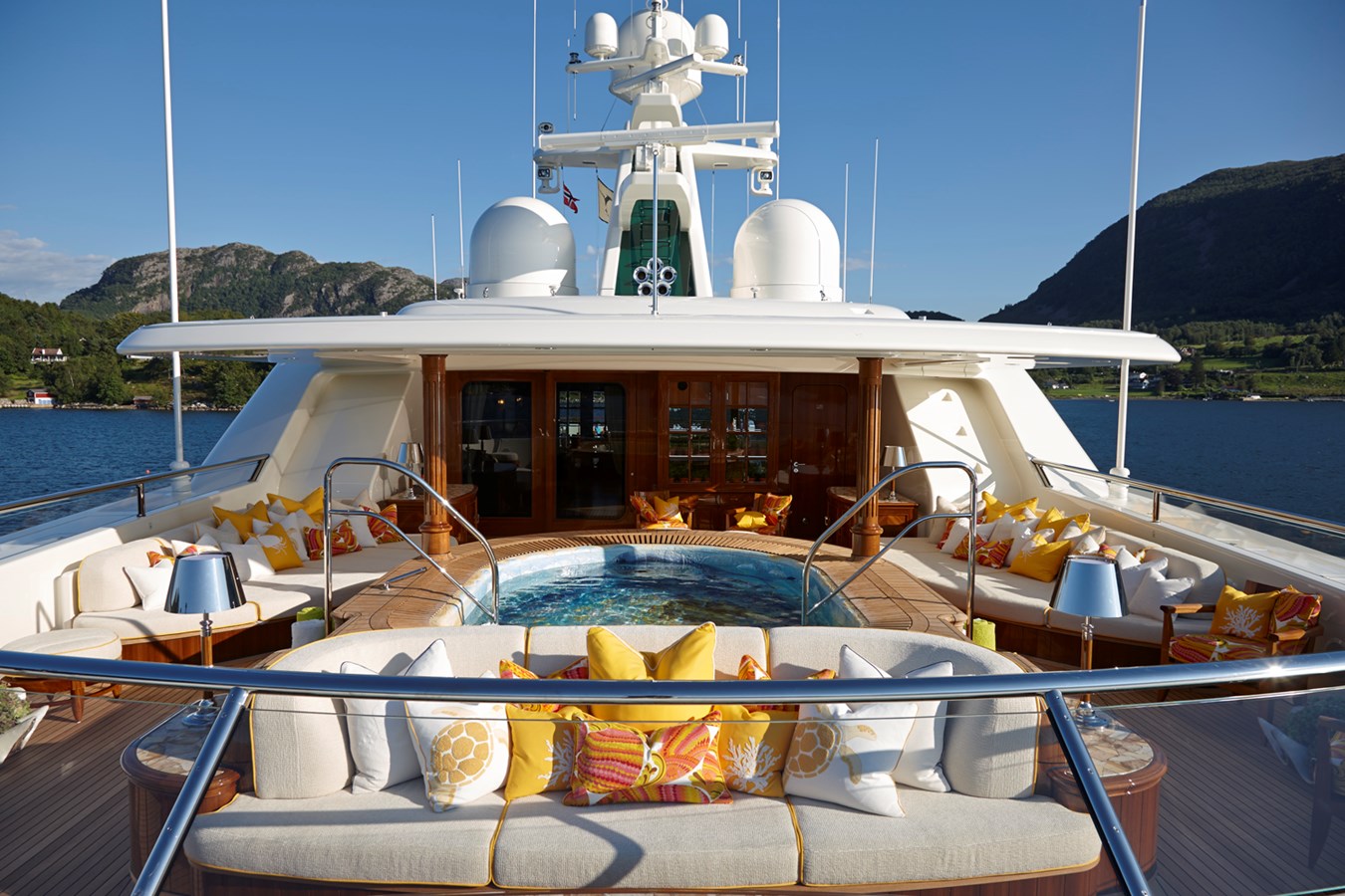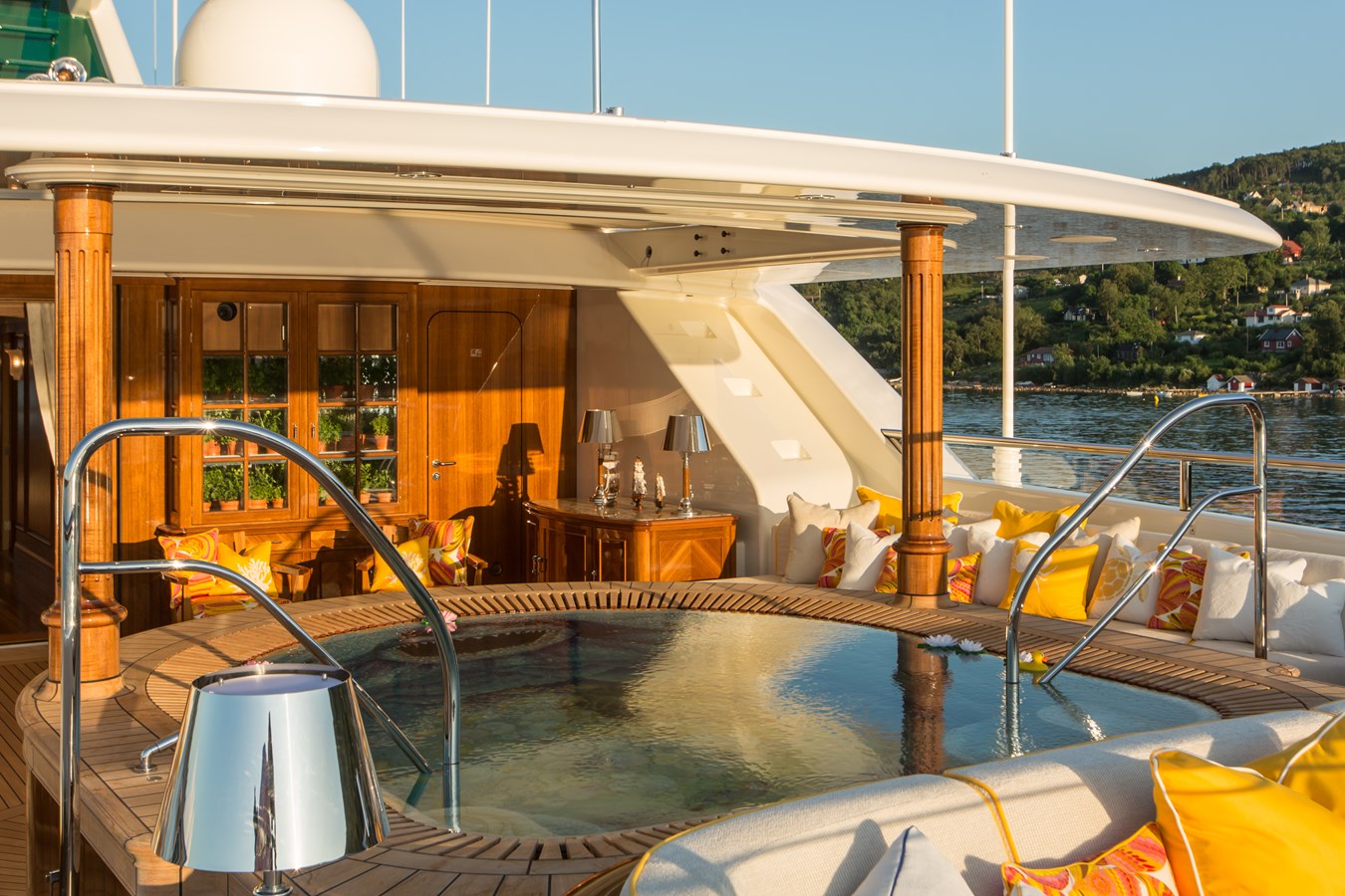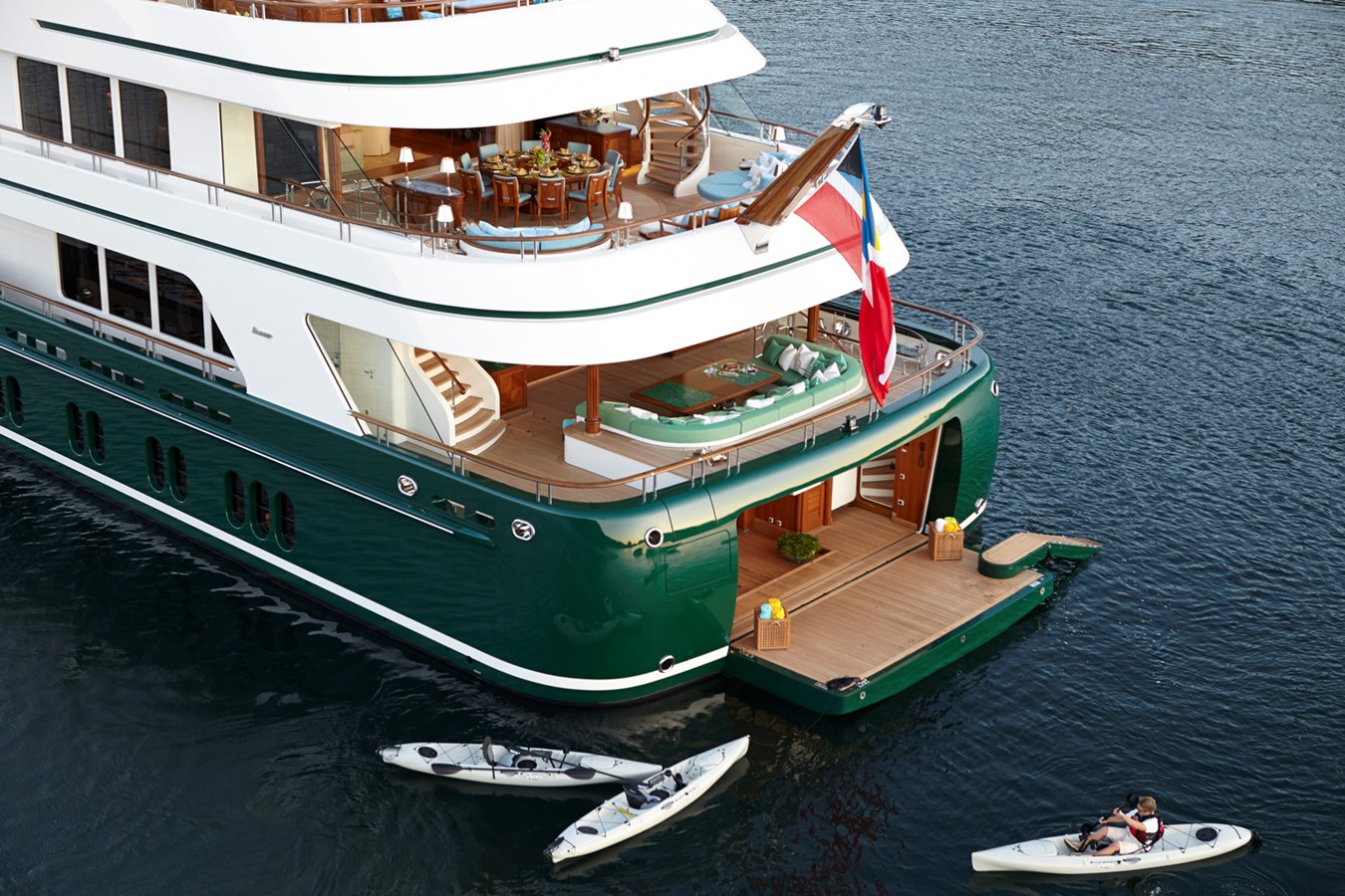 The exterior of SEA OWL is a testament to Feadship's iconic design language. Its streamlined silhouette, coupled with a sleek hull, creates an aura of elegance and power. The expansive deck spaces offer an ideal setting for relaxation and entertainment, with amenities such as a lavish outdoor dining area, a Jacuzzi, and an array of sunbathing spots. The yacht's striking dark green hull is a standout feature, lending it a unique and captivating aesthetic that distinguishes it in any harbor.