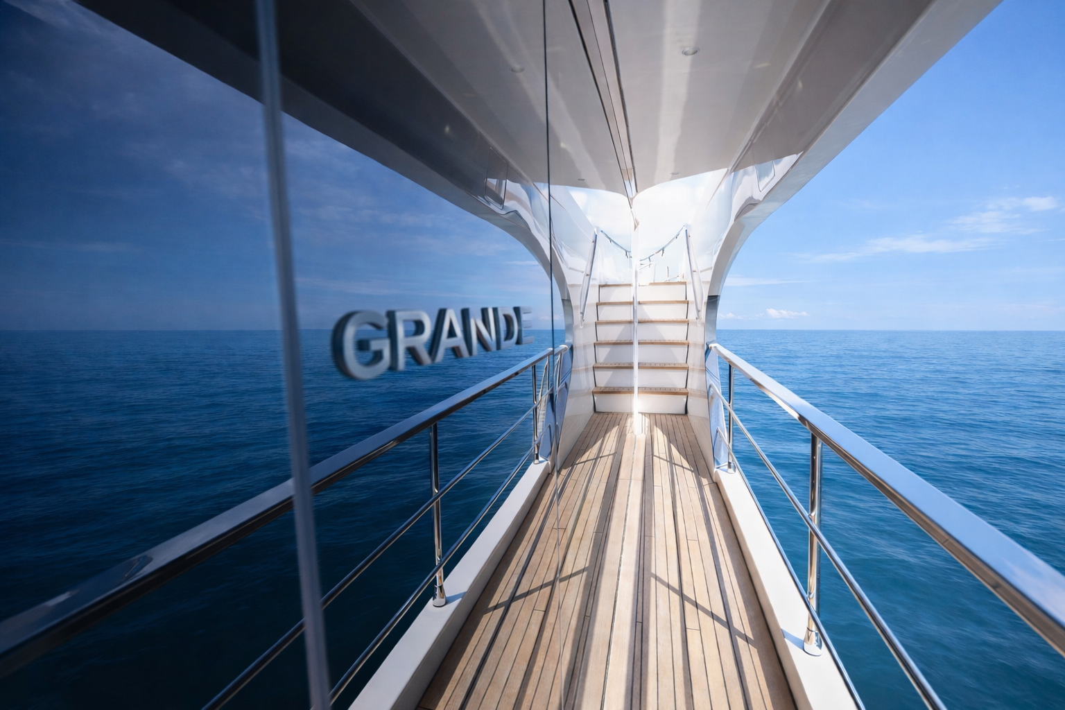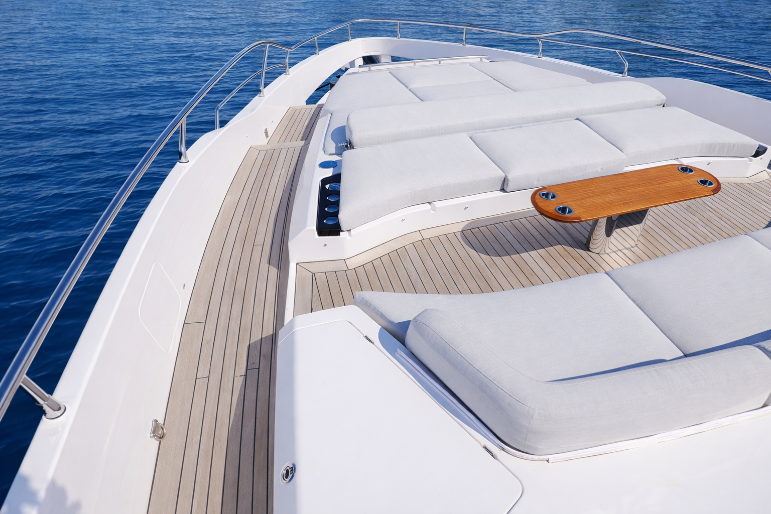 Full teak decking and the upgraded exterior lighting package further elevate her evening ambience and visual presence.