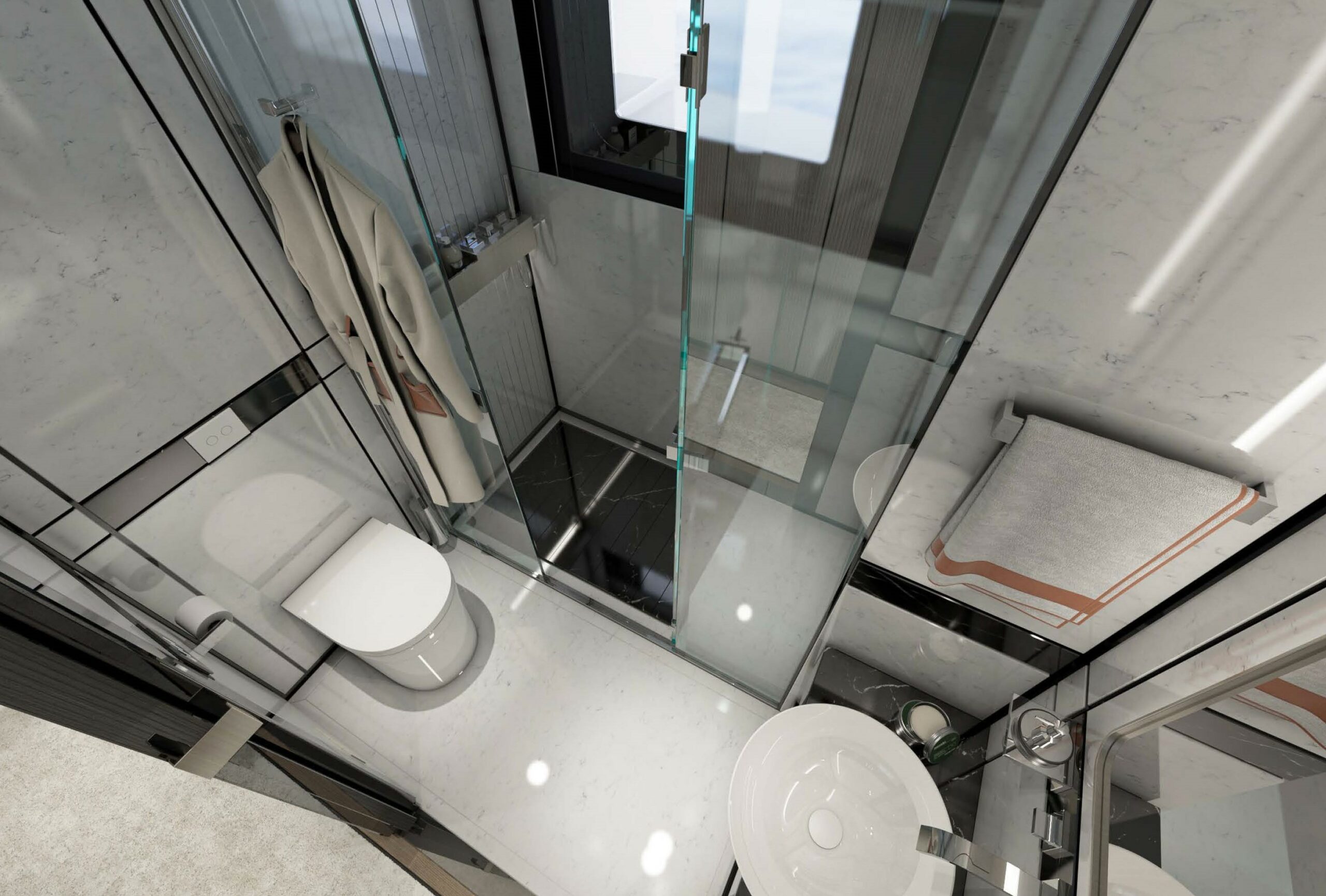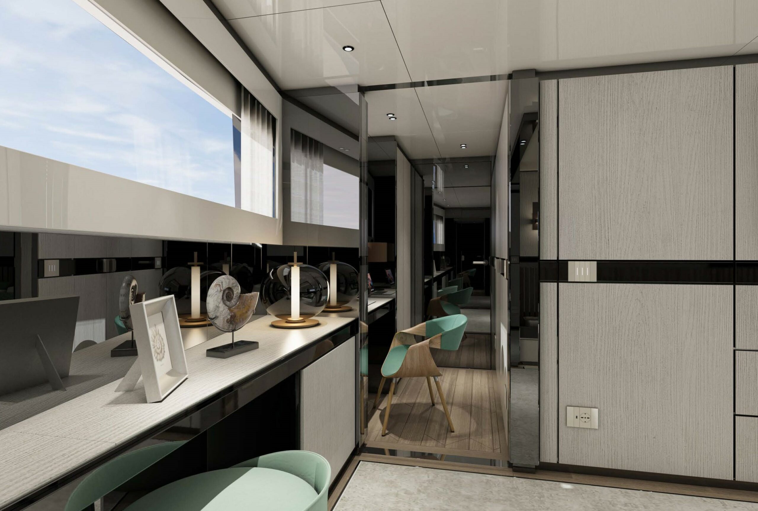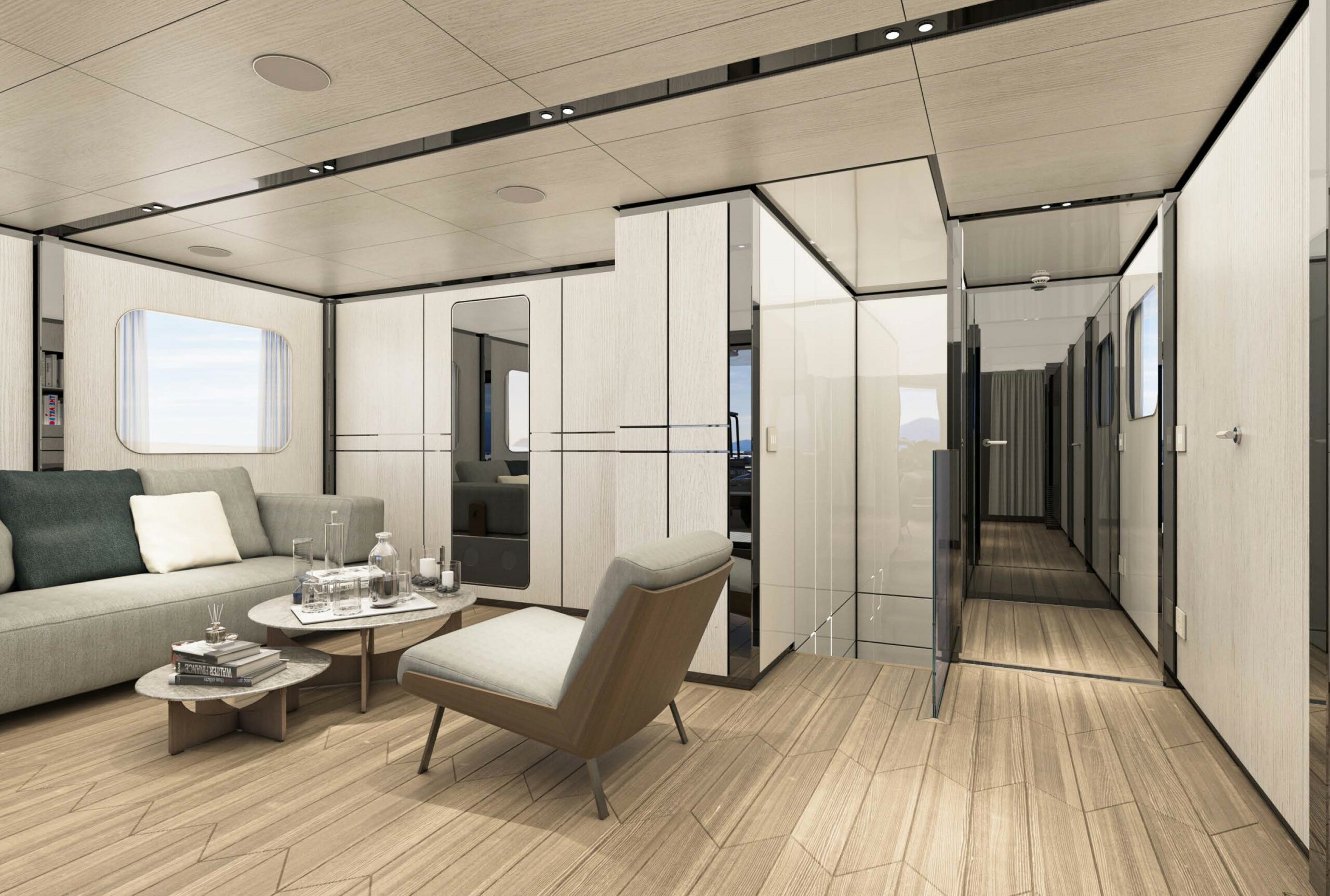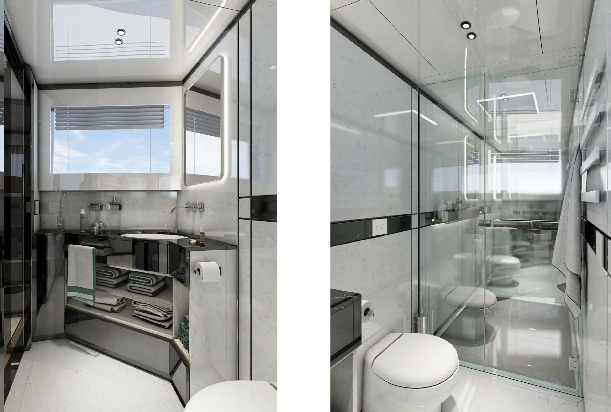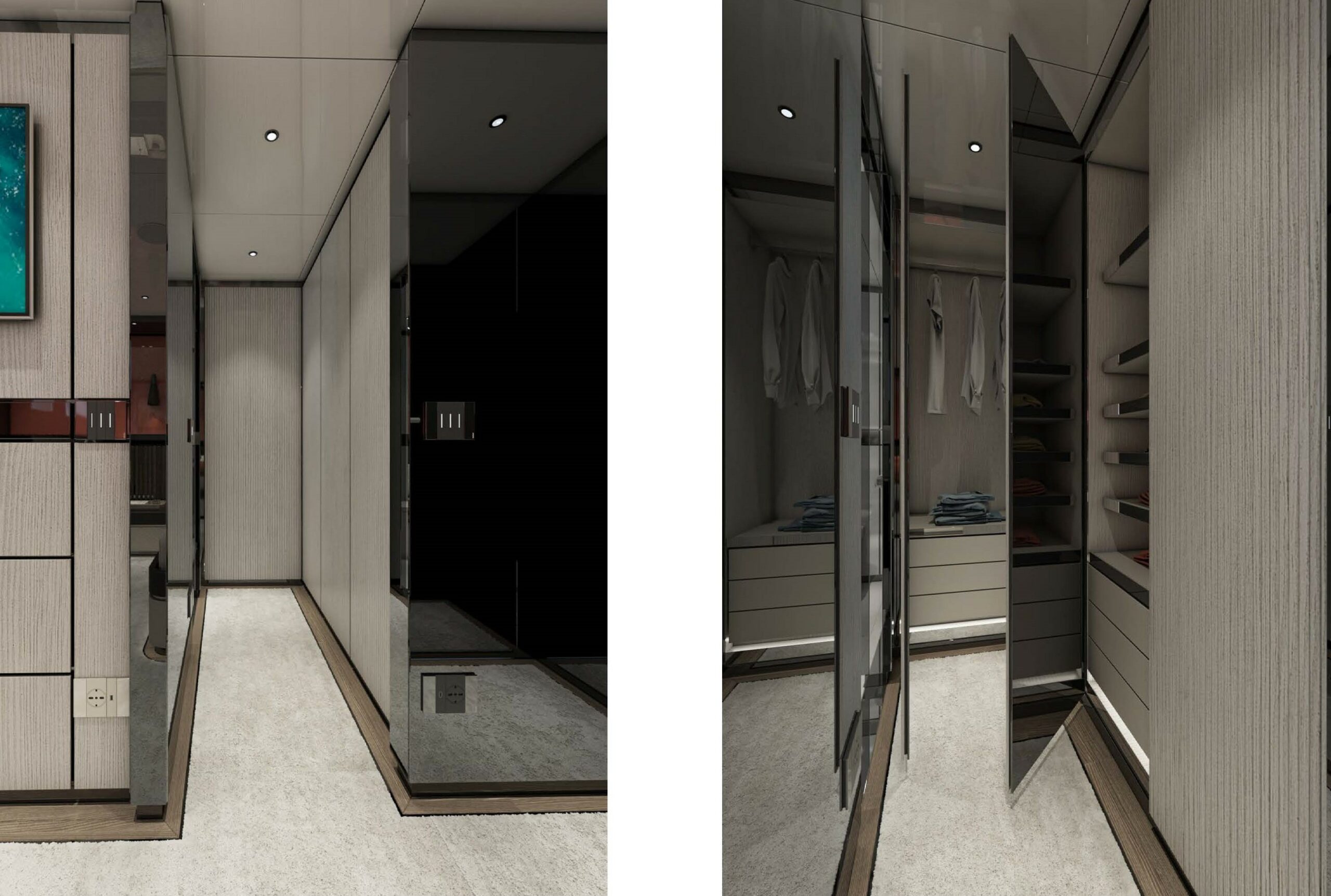 Situated on the Main deck, the Master cabin offers an elegant sanctuary, complete with a private study, a spacious walk-in wardrobe, and the indulgence of separate his and her bathrooms. Thoughtfully designed to blend luxury and functionality, this sophisticated suite provides a tranquil escape, perfectly suited for relaxation and privacy.