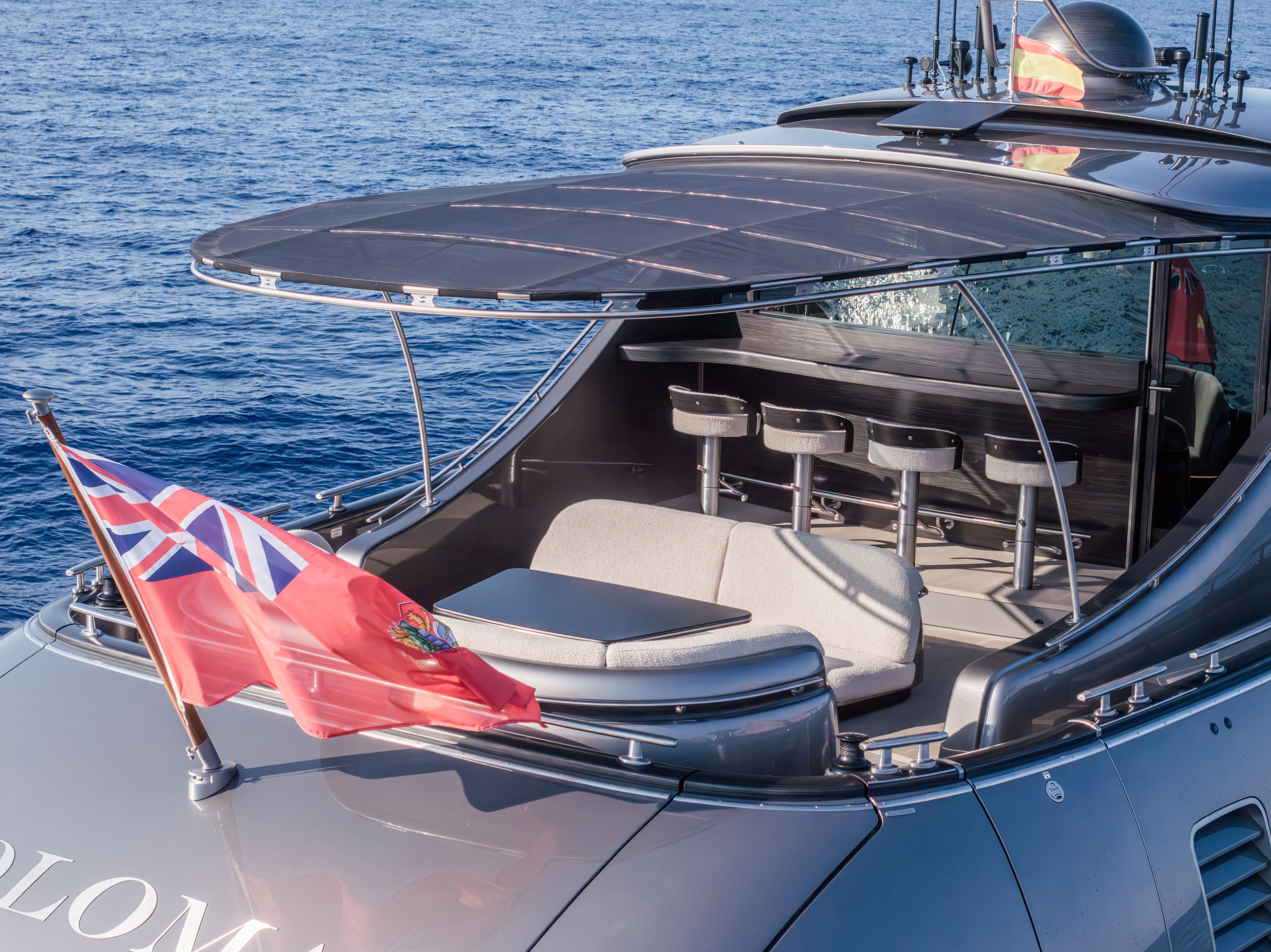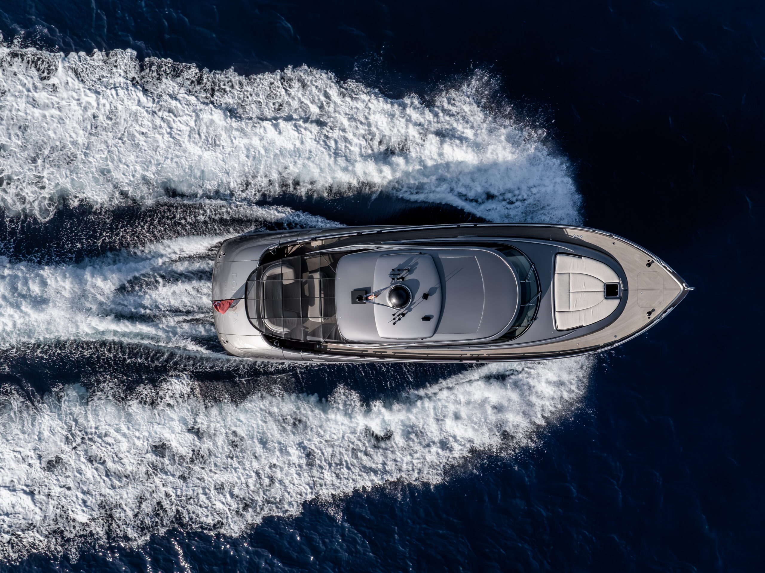 Built in GRP and boasting a vacuum-infused vinyl ester hull, LOLOMA is powered by triple Volvo Penta D13-IPS engines enabling her to fly over the waves at speed. With three cabins, she can accommodate up to 6 guests comfortably while her contemporary open-plan interior and spacious exterior decks offer you the best possible guest experience whilst on board.