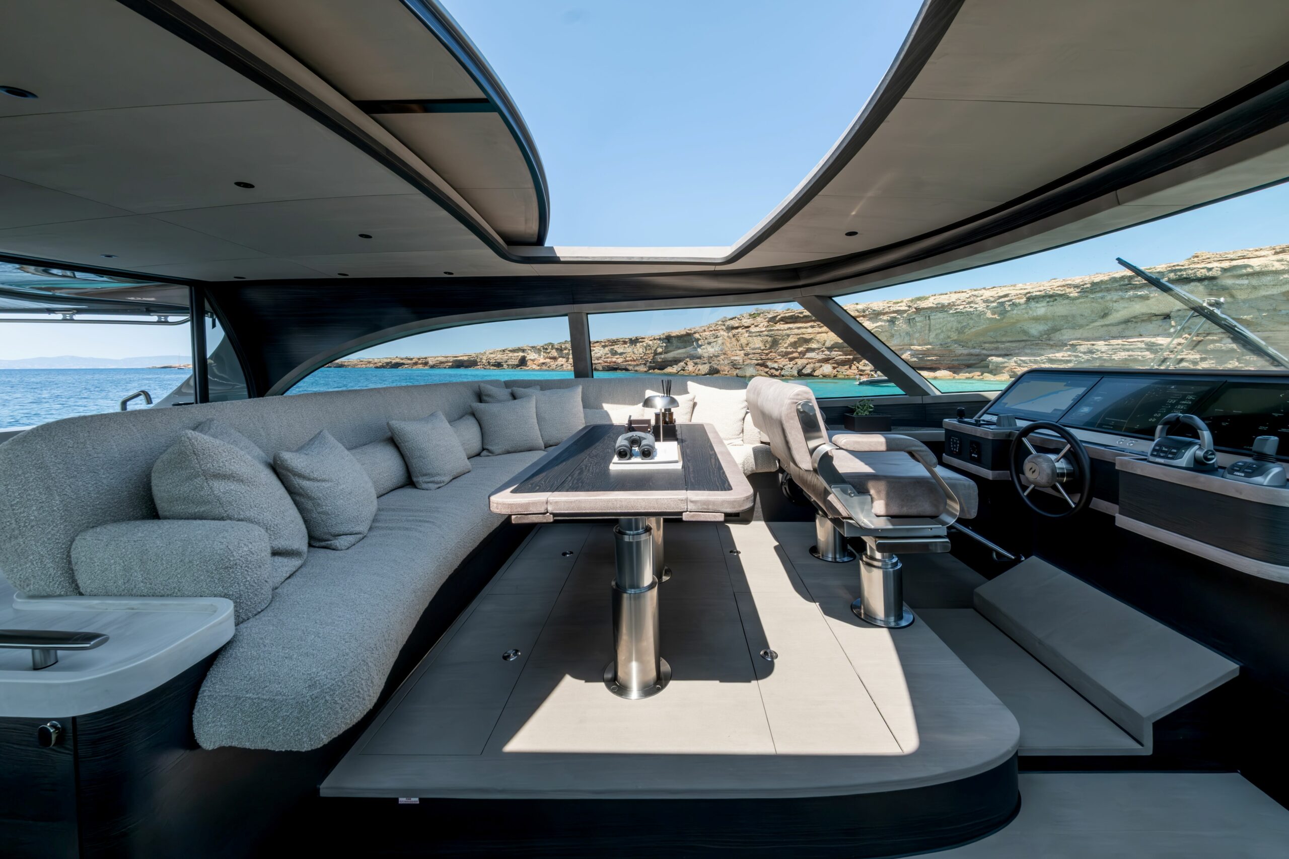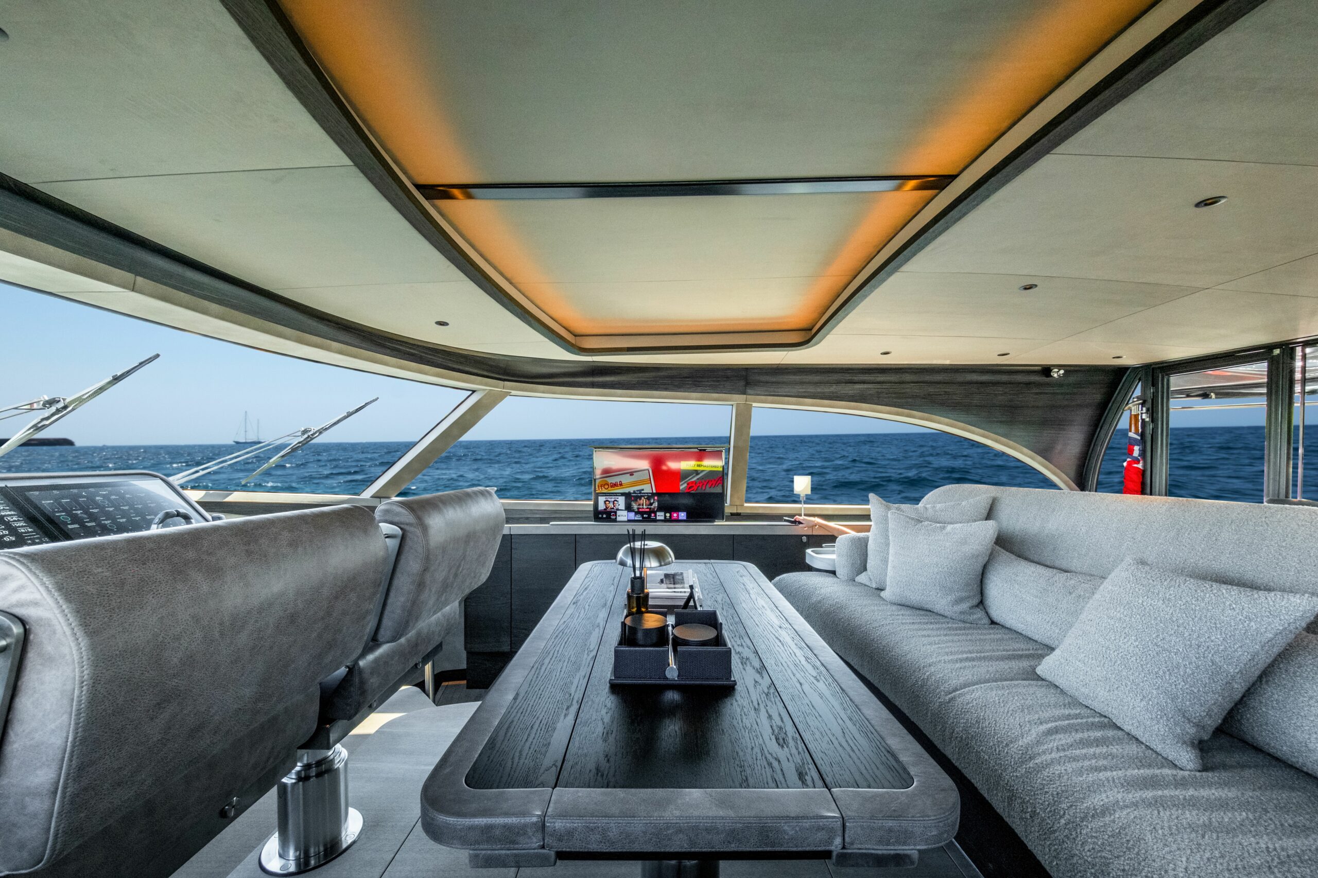 Powered by triple Volvo Penta IPS 1350 engines, Zeelander 7 series yacht for sale LOLOMA has an exciting top speed of 40 knots, combining powerful performance with state-of-the-art design. Offering smooth cruising as standard thanks to her dynamic positioning, she has a range of 610 nautical miles at 26 knots.