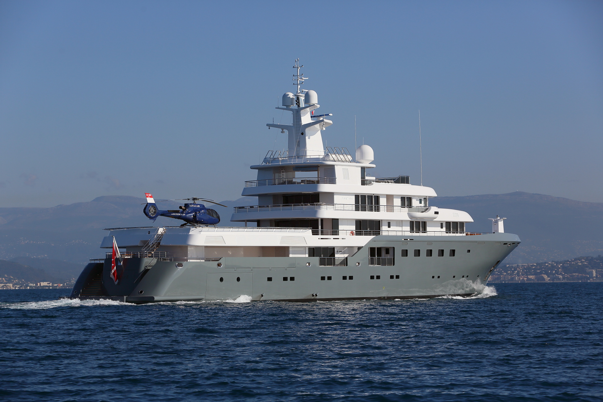 PLANET NINE: stunning 73m explorer yacht with Tim Heywood design and a commercial helicopter pad & hangar.