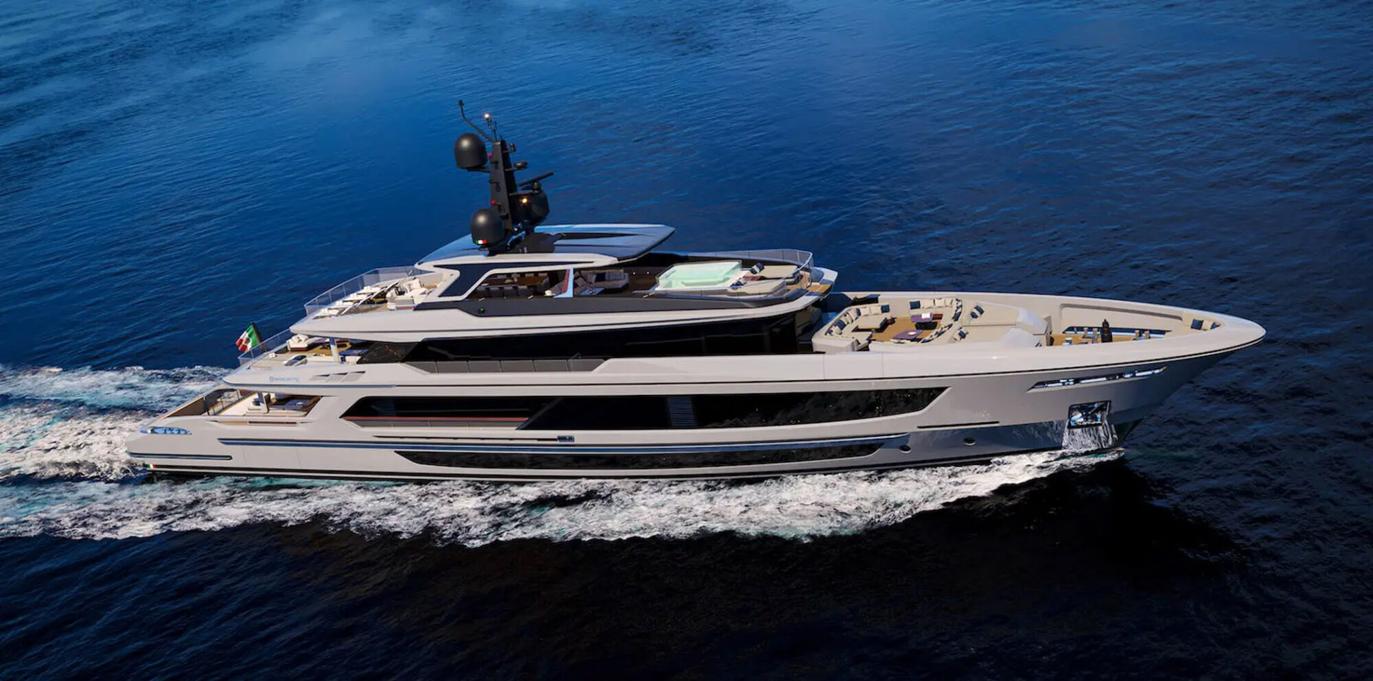 Admiral’s approach focuses on blending traditional craftsmanship with modern innovation, offering fully custom yachts with advanced features like underwater lighting and infinity pools. The 65-meter “Admiral Geco” is one of their most luxurious creations, showcasing the brand’s signature Italian flair and attention to detail.